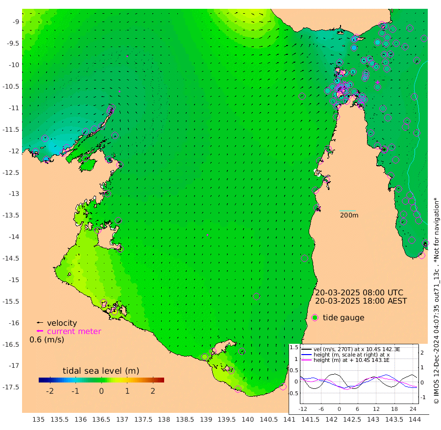 16cm/s -35T +3cm/s rms + 7cm/s -42T. ARA-GOC87 57m 17cm/s 6T +3cm/s rms + 2cm/s -2T. ARA-GOC87 60m 11cm/s -37T +2cm/s rms + 3cm/s 61T. ARA-GOC87 47m -75cm Daru -68cm Bobo Island -41cm Meer Island Barge -49cm Bramble Cay -63cm Unnamed Cay -70cm Pearce Cay -58cm Stephens Island -54cm Merrie England Shoals -64cm Mutacomal Reef -53cm Darnley Island Barge -41cm East Cay -62cm Yorke Island Barge -66cm Rennel Island -63cm Aureed Island -81cm Dungeness Reef -81cm Zagai Island -80cm Yam Island -105cm Dauan Island -84cm Saibai Island -119cm Phipi Reef -92cm Warrior Reef - West -82cm Mabuiag Island Barge -61cm Half Way Island -73cm Coconut Island -67cm Dugong Islet -76cm Poll Island -75cm Kirkcaldie Reef -89cm Suarji Island -71cm Sue Islet -97cm Hawkesbury Island -88cm Alert Patches -81cm Twin Island -105cm Badu Island -89cm St Pauls (Moa Island) -93cm Kubin (Moa Island) -83cm Ince Point -82cm Thursday Island -84cm Nardana Patches -91cm Turtle Head -93cm Round Island -91cm Goods Island -76cm Booby Island -73cm White Rocks Area -22cm Carpentaria -75cm Papou Point -89cm Bampfield Head -56cm Crab Island -63cm Red Wallis Island -82cm Packe Island -70cm Harrington Reef -87cm Herald Camp -17cm Sharp Point -75cm Red Island Point -86cm Possession Island -62cm Alpha Rock -77cm Frederick Point -72cm Wyborn Reef Light -73cm Tetley Island -42cm Triangle Reef -85cm Turtle Head Island -40cm Maclennan Cay -33cm Raine Island -58cm Mcsweeny Reef -52cm Collette Reef -41cm Shadwell Reef -54cm Hannibal Island -51cm Round Point -35cm Vrilya Point -40cm Cape Grenville -46cm Hicks Island -45cm Sir Charles Hardy Island -14cm Harvey Island -32cm Kay Reef -36cm Rocky Island -30cm Chapman Island -27cm Ham Reef -33cm Jubilee Reef -30cm Night Island -25cm Unnamed Reef No. 3 -36cm Morris Island -40cm 1st 3 Mile Opening -33cm Creech Reef -30cm Fife Island -35cm Eden Reef -30cm Stanley Island -31cm Normanby River -92cm Yabooma Island -119cm Hutchison River -87cm Elcho Island -82cm North West Crocodile Island -41cm Cape Wessel -72cm Stevens Island -58cm Guluwuru Island -64cm Hopeful Bay -60cm Auster Point -58cm Two Island Bay -97cm Cadell Strait 6cm Mallison Island -58cm Melville Bay (Gove Harbour) -59cm Truant Island -36cm Cape Arnhem -23cm Cape Grey -11cm Hawk Island 25cm Milner Bay (Groote Eylandt) 29cm Cape Beatrice 60cm West Island 64cm Centre Island 27cm Mornington Island 36cm West Wellesley Islands 1cm Bountiful Island 25cm Albert River Mouth 23cm Sweers Island 13cm Karumba -2cm Nassau River Offshore -21cm Christmas Creek -32cm Archer River -35cm Boyd Point -46cm Weipa (Humbug Point) -27cm Pennefather River -35cm Cullen Point