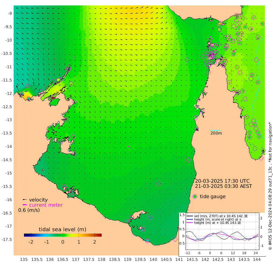 23cm/s 107T +3cm/s rms + 7cm/s -42T. ARA-GOC87 57m 18cm/s 148T +3cm/s rms + 2cm/s -2T. ARA-GOC87 60m 15cm/s 99T +2cm/s rms + 3cm/s 61T. ARA-GOC87 47m 27cm Daru 25cm Bobo Island 26cm Meer Island Barge 25cm Bramble Cay 28cm Unnamed Cay 18cm Pearce Cay 21cm Stephens Island 27cm Merrie England Shoals 26cm Mutacomal Reef 32cm Darnley Island Barge 20cm East Cay 31cm Yorke Island Barge 16cm Rennel Island 24cm Aureed Island 18cm Dungeness Reef 32cm Zagai Island 19cm Yam Island 35cm Dauan Island 46cm Saibai Island 30cm Phipi Reef 30cm Warrior Reef - West 22cm Mabuiag Island Barge 15cm Half Way Island 24cm Coconut Island 14cm Dugong Islet 17cm Poll Island 14cm Kirkcaldie Reef 12cm Suarji Island 31cm Sue Islet 3cm Hawkesbury Island 17cm Alert Patches 15cm Twin Island 10cm Badu Island 16cm St Pauls (Moa Island) 4cm Kubin (Moa Island) 11cm Ince Point 9cm Thursday Island 10cm Nardana Patches 5cm Turtle Head 10cm Round Island -1cm Goods Island 0cm Booby Island -14cm White Rocks Area 19cm Carpentaria 10cm Papou Point 20cm Bampfield Head 0cm Crab Island -5cm Red Wallis Island 3cm Packe Island 12cm Harrington Reef 9cm Herald Camp 7cm Sharp Point -3cm Red Island Point 13cm Possession Island 22cm Alpha Rock 17cm Frederick Point 30cm Wyborn Reef Light 30cm Tetley Island 27cm Triangle Reef 22cm Turtle Head Island 18cm Maclennan Cay 20cm Raine Island 25cm Mcsweeny Reef 30cm Collette Reef 30cm Shadwell Reef 32cm Hannibal Island 23cm Round Point 8cm Vrilya Point 24cm Cape Grenville 20cm Hicks Island 29cm Sir Charles Hardy Island 6cm Harvey Island 26cm Kay Reef 23cm Rocky Island 26cm Chapman Island 25cm Ham Reef 24cm Jubilee Reef 20cm Night Island 23cm Unnamed Reef No. 3 21cm Morris Island 22cm 1st 3 Mile Opening 22cm Creech Reef 17cm Fife Island 26cm Eden Reef 23cm Stanley Island 15cm Normanby River -62cm Yabooma Island -60cm Hutchison River -59cm Elcho Island -68cm North West Crocodile Island 1cm Cape Wessel -26cm Stevens Island 43cm Guluwuru Island -22cm Hopeful Bay -12cm Auster Point -14cm Two Island Bay -13cm Cadell Strait 221cm Mallison Island 27cm Melville Bay (Gove Harbour) 33cm Truant Island 28cm Cape Arnhem 6cm Cape Grey 1cm Hawk Island -24cm Milner Bay (Groote Eylandt) -35cm Cape Beatrice -50cm West Island -45cm Centre Island -46cm Mornington Island -50cm West Wellesley Islands -64cm Bountiful Island -98cm Albert River Mouth -88cm Sweers Island -92cm Karumba -31cm Nassau River Offshore -5cm Christmas Creek 9cm Archer River 16cm Boyd Point 8cm Weipa (Humbug Point) 15cm Pennefather River 12cm Cullen Point