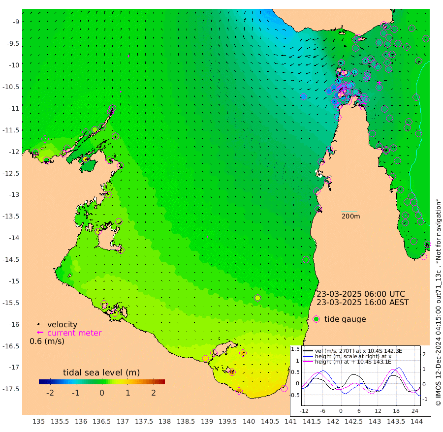 15cm/s 6T +3cm/s rms + 7cm/s -42T. ARA-GOC87 57m 14cm/s -51T +3cm/s rms + 2cm/s -2T. ARA-GOC87 60m 20cm/s 16T +2cm/s rms + 3cm/s 61T. ARA-GOC87 47m -53cm Daru -51cm Bobo Island -15cm Meer Island Barge -28cm Bramble Cay -43cm Unnamed Cay -54cm Pearce Cay -41cm Stephens Island -44cm Merrie England Shoals -59cm Mutacomal Reef -27cm Darnley Island Barge -22cm East Cay -38cm Yorke Island Barge -56cm Rennel Island -52cm Aureed Island -62cm Dungeness Reef -60cm Zagai Island -70cm Yam Island -56cm Dauan Island -46cm Saibai Island -50cm Phipi Reef -60cm Warrior Reef - West -80cm Mabuiag Island Barge -56cm Half Way Island -71cm Coconut Island -63cm Dugong Islet -76cm Poll Island -72cm Kirkcaldie Reef -93cm Suarji Island -60cm Sue Islet -127cm Hawkesbury Island -99cm Alert Patches -99cm Twin Island -117cm Badu Island -98cm St Pauls (Moa Island) -119cm Kubin (Moa Island) -104cm Ince Point -112cm Thursday Island -109cm Nardana Patches -115cm Turtle Head -117cm Round Island -127cm Goods Island -137cm Booby Island -142cm White Rocks Area -124cm Carpentaria -88cm Papou Point -148cm Bampfield Head -111cm Crab Island -140cm Red Wallis Island -134cm Packe Island -79cm Harrington Reef -126cm Herald Camp -20cm Sharp Point -97cm Red Island Point -99cm Possession Island -84cm Alpha Rock -89cm Frederick Point -69cm Wyborn Reef Light -75cm Tetley Island -30cm Triangle Reef -75cm Turtle Head Island -26cm Maclennan Cay -13cm Raine Island -46cm Mcsweeny Reef -34cm Collette Reef -17cm Shadwell Reef -34cm Hannibal Island -37cm Round Point -105cm Vrilya Point -30cm Cape Grenville -25cm Hicks Island -24cm Sir Charles Hardy Island -8cm Harvey Island -20cm Kay Reef -14cm Rocky Island -16cm Chapman Island -12cm Ham Reef -12cm Jubilee Reef -18cm Night Island -17cm Unnamed Reef No. 3 -16cm Morris Island -15cm 1st 3 Mile Opening -16cm Creech Reef -20cm Fife Island -7cm Eden Reef -13cm Stanley Island -15cm Normanby River -3cm Yabooma Island 6cm Hutchison River 8cm Elcho Island 9cm North West Crocodile Island 0cm Cape Wessel 6cm Stevens Island 35cm Guluwuru Island 12cm Hopeful Bay 3cm Auster Point 8cm Two Island Bay 27cm Cadell Strait 93cm Mallison Island 24cm Melville Bay (Gove Harbour) 17cm Truant Island 19cm Cape Arnhem 35cm Cape Grey 37cm Hawk Island 46cm Milner Bay (Groote Eylandt) 48cm Cape Beatrice 51cm West Island 51cm Centre Island 86cm Mornington Island 84cm West Wellesley Islands 111cm Bountiful Island 150cm Albert River Mouth 159cm Sweers Island 139cm Karumba 46cm Nassau River Offshore 8cm Christmas Creek -29cm Archer River -52cm Boyd Point -53cm Weipa (Humbug Point) -62cm Pennefather River -92cm Cullen Point