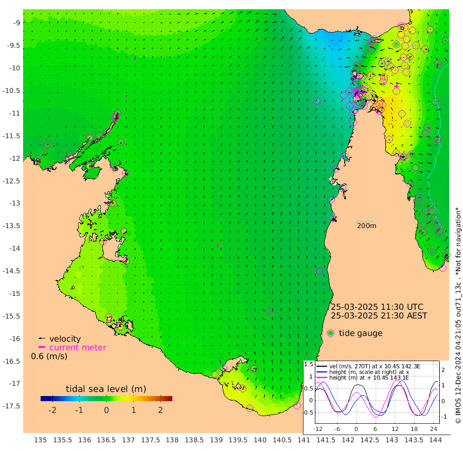 16cm/s 36T +3cm/s rms + 7cm/s -42T. ARA-GOC87 57m 31cm/s 5T +3cm/s rms + 2cm/s -2T. ARA-GOC87 60m 19cm/s 51T +2cm/s rms + 3cm/s 61T. ARA-GOC87 47m 60cm Daru 63cm Bobo Island 2cm Meer Island Barge 32cm Bramble Cay 54cm Unnamed Cay 48cm Pearce Cay 42cm Stephens Island 61cm Merrie England Shoals 71cm Mutacomal Reef 30cm Darnley Island Barge 13cm East Cay 43cm Yorke Island Barge 53cm Rennel Island 49cm Aureed Island 42cm Dungeness Reef 36cm Zagai Island 33cm Yam Island -35cm Dauan Island -16cm Saibai Island -13cm Phipi Reef 22cm Warrior Reef - West -10cm Mabuiag Island Barge 49cm Half Way Island 62cm Coconut Island 49cm Dugong Islet 47cm Poll Island 48cm Kirkcaldie Reef 41cm Suarji Island 46cm Sue Islet -79cm Hawkesbury Island 27cm Alert Patches 33cm Twin Island -66cm Badu Island 26cm St Pauls (Moa Island) -54cm Kubin (Moa Island) 0cm Ince Point -17cm Thursday Island -14cm Nardana Patches -48cm Turtle Head -50cm Round Island -87cm Goods Island -105cm Booby Island -81cm White Rocks Area -82cm Carpentaria 27cm Papou Point -84cm Bampfield Head -84cm Crab Island -93cm Red Wallis Island -69cm Packe Island 72cm Harrington Reef -94cm Herald Camp 15cm Sharp Point -27cm Red Island Point 5cm Possession Island 44cm Alpha Rock 50cm Frederick Point 72cm Wyborn Reef Light 70cm Tetley Island 5cm Triangle Reef 65cm Turtle Head Island 2cm Maclennan Cay -13cm Raine Island 47cm Mcsweeny Reef 41cm Collette Reef 7cm Shadwell Reef 46cm Hannibal Island 35cm Round Point -80cm Vrilya Point 26cm Cape Grenville 14cm Hicks Island -2cm Sir Charles Hardy Island 6cm Harvey Island 16cm Kay Reef -4cm Rocky Island -10cm Chapman Island -12cm Ham Reef -8cm Jubilee Reef -5cm Night Island -8cm Unnamed Reef No. 3 -3cm Morris Island -17cm 1st 3 Mile Opening -10cm Creech Reef 1cm Fife Island -15cm Eden Reef -4cm Stanley Island 6cm Normanby River -4cm Yabooma Island -4cm Hutchison River -2cm Elcho Island 1cm North West Crocodile Island 21cm Cape Wessel 24cm Stevens Island 11cm Guluwuru Island 13cm Hopeful Bay 18cm Auster Point 4cm Two Island Bay -2cm Cadell Strait 34cm Mallison Island 15cm Melville Bay (Gove Harbour) 16cm Truant Island 13cm Cape Arnhem 31cm Cape Grey 32cm Hawk Island 54cm Milner Bay (Groote Eylandt) 45cm Cape Beatrice 60cm West Island 61cm Centre Island 33cm Mornington Island 34cm West Wellesley Islands 28cm Bountiful Island 38cm Albert River Mouth 67cm Sweers Island 36cm Karumba -16cm Nassau River Offshore -48cm Christmas Creek -64cm Archer River -74cm Boyd Point -88cm Weipa (Humbug Point) -57cm Pennefather River -87cm Cullen Point