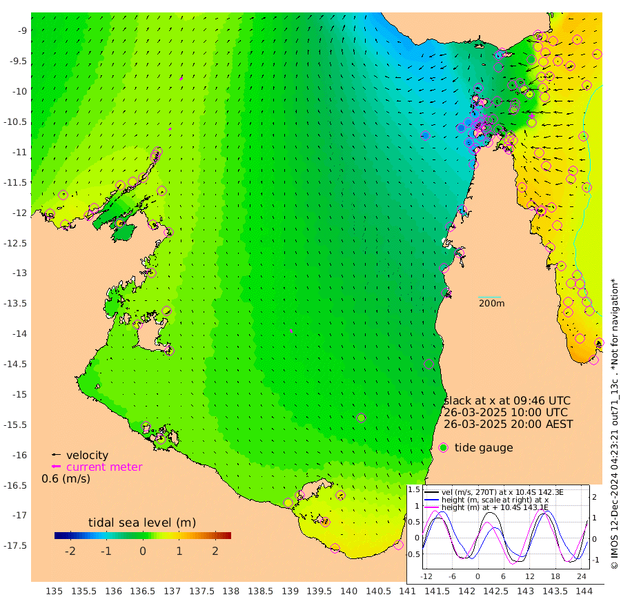 19cm/s 46T +3cm/s rms + 7cm/s -42T. ARA-GOC87 57m 22cm/s -16T +3cm/s rms + 2cm/s -2T. ARA-GOC87 60m 26cm/s 47T +2cm/s rms + 3cm/s 61T. ARA-GOC87 47m 65cm Daru 72cm Bobo Island 65cm Meer Island Barge 87cm Bramble Cay 87cm Unnamed Cay 74cm Pearce Cay 84cm Stephens Island 100cm Merrie England Shoals 75cm Mutacomal Reef 78cm Darnley Island Barge 76cm East Cay 67cm Yorke Island Barge 70cm Rennel Island 59cm Aureed Island 39cm Dungeness Reef -15cm Zagai Island -19cm Yam Island -98cm Dauan Island -89cm Saibai Island -58cm Phipi Reef -28cm Warrior Reef - West -88cm Mabuiag Island Barge 67cm Half Way Island 45cm Coconut Island 54cm Dugong Islet 12cm Poll Island 24cm Kirkcaldie Reef -23cm Suarji Island 10cm Sue Islet -124cm Hawkesbury Island -30cm Alert Patches -27cm Twin Island -124cm Badu Island -46cm St Pauls (Moa Island) -103cm Kubin (Moa Island) -63cm Ince Point -80cm Thursday Island -77cm Nardana Patches -95cm Turtle Head -93cm Round Island -123cm Goods Island -145cm Booby Island -128cm White Rocks Area -139cm Carpentaria -37cm Papou Point -124cm Bampfield Head -118cm Crab Island -142cm Red Wallis Island -113cm Packe Island 62cm Harrington Reef -126cm Herald Camp -12cm Sharp Point -76cm Red Island Point -43cm Possession Island -11cm Alpha Rock 10cm Frederick Point 63cm Wyborn Reef Light 48cm Tetley Island 41cm Triangle Reef 70cm Turtle Head Island 53cm Maclennan Cay 51cm Raine Island 76cm Mcsweeny Reef 79cm Collette Reef 63cm Shadwell Reef 93cm Hannibal Island 90cm Round Point -114cm Vrilya Point 82cm Cape Grenville 74cm Hicks Island 57cm Sir Charles Hardy Island 25cm Harvey Island 81cm Kay Reef 62cm Rocky Island 55cm Chapman Island 51cm Ham Reef 57cm Jubilee Reef 54cm Night Island 53cm Unnamed Reef No. 3 67cm Morris Island 53cm 1st 3 Mile Opening 58cm Creech Reef 68cm Fife Island 76cm Eden Reef 73cm Stanley Island 86cm Normanby River 47cm Yabooma Island 57cm Hutchison River 48cm Elcho Island 44cm North West Crocodile Island 38cm Cape Wessel 63cm Stevens Island 53cm Guluwuru Island 60cm Hopeful Bay 51cm Auster Point 43cm Two Island Bay 60cm Cadell Strait 109cm Mallison Island 51cm Melville Bay (Gove Harbour) 48cm Truant Island 35cm Cape Arnhem 49cm Cape Grey 51cm Hawk Island 56cm Milner Bay (Groote Eylandt) 51cm Cape Beatrice 50cm West Island 52cm Centre Island 71cm Mornington Island 71cm West Wellesley Islands 82cm Bountiful Island 103cm Albert River Mouth 135cm Sweers Island 102cm Karumba 27cm Nassau River Offshore -11cm Christmas Creek -43cm Archer River -71cm Boyd Point -75cm Weipa (Humbug Point) -63cm Pennefather River -112cm Cullen Point