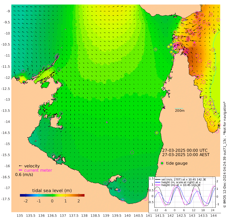 5cm/s -172T +3cm/s rms + 7cm/s -42T. ARA-GOC87 57m 33cm/s 169T +3cm/s rms + 2cm/s -2T. ARA-GOC87 60m 12cm/s -109T +2cm/s rms + 3cm/s 61T. ARA-GOC87 47m 184cm Daru 170cm Bobo Island 84cm Meer Island Barge 129cm Bramble Cay 169cm Unnamed Cay 165cm Pearce Cay 152cm Stephens Island 173cm Merrie England Shoals 196cm Mutacomal Reef 133cm Darnley Island Barge 96cm East Cay 153cm Yorke Island Barge 172cm Rennel Island 157cm Aureed Island 170cm Dungeness Reef 149cm Zagai Island 162cm Yam Island 116cm Dauan Island 106cm Saibai Island 119cm Phipi Reef 161cm Warrior Reef - West 103cm Mabuiag Island Barge 170cm Half Way Island 176cm Coconut Island 182cm Dugong Islet 173cm Poll Island 177cm Kirkcaldie Reef 158cm Suarji Island 161cm Sue Islet 87cm Hawkesbury Island 159cm Alert Patches 164cm Twin Island 85cm Badu Island 162cm St Pauls (Moa Island) 106cm Kubin (Moa Island) 137cm Ince Point 122cm Thursday Island 126cm Nardana Patches 106cm Turtle Head 80cm Round Island 74cm Goods Island 48cm Booby Island 63cm White Rocks Area 24cm Carpentaria 137cm Papou Point 44cm Bampfield Head 33cm Crab Island 62cm Red Wallis Island 103cm Packe Island 196cm Harrington Reef 64cm Herald Camp 46cm Sharp Point 88cm Red Island Point 113cm Possession Island 163cm Alpha Rock 178cm Frederick Point 193cm Wyborn Reef Light 193cm Tetley Island 92cm Triangle Reef 189cm Turtle Head Island 90cm Maclennan Cay 55cm Raine Island 156cm Mcsweeny Reef 139cm Collette Reef 89cm Shadwell Reef 150cm Hannibal Island 135cm Round Point 27cm Vrilya Point 118cm Cape Grenville 102cm Hicks Island 103cm Sir Charles Hardy Island 35cm Harvey Island 97cm Kay Reef 71cm Rocky Island 60cm Chapman Island 57cm Ham Reef 68cm Jubilee Reef 70cm Night Island 63cm Unnamed Reef No. 3 75cm Morris Island 60cm 1st 3 Mile Opening 68cm Creech Reef 80cm Fife Island 69cm Eden Reef 75cm Stanley Island 85cm Normanby River -37cm Yabooma Island -30cm Hutchison River -43cm Elcho Island -40cm North West Crocodile Island -7cm Cape Wessel -16cm Stevens Island 17cm Guluwuru Island -32cm Hopeful Bay -20cm Auster Point -18cm Two Island Bay -8cm Cadell Strait 95cm Mallison Island 8cm Melville Bay (Gove Harbour) 11cm Truant Island 5cm Cape Arnhem -12cm Cape Grey -15cm Hawk Island -46cm Milner Bay (Groote Eylandt) -34cm Cape Beatrice -43cm West Island -56cm Centre Island -35cm Mornington Island -30cm West Wellesley Islands -54cm Bountiful Island -88cm Albert River Mouth -113cm Sweers Island -80cm Karumba 4cm Nassau River Offshore 27cm Christmas Creek 21cm Archer River 29cm Boyd Point 22cm Weipa (Humbug Point) 23cm Pennefather River 23cm Cullen Point