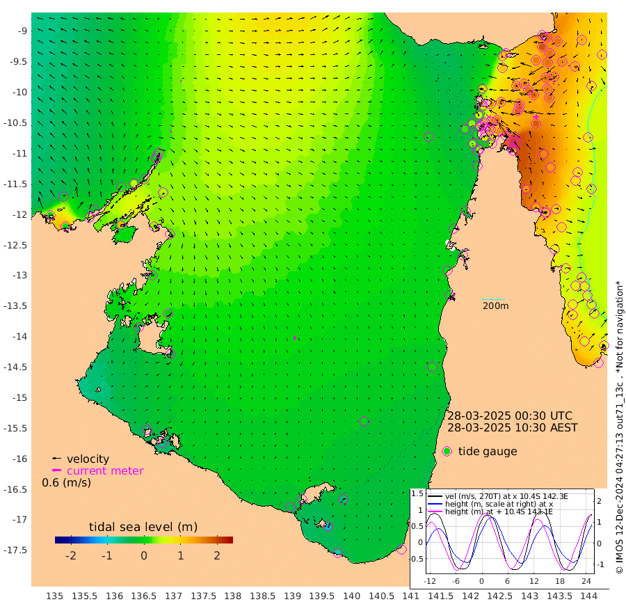 8cm/s 117T +3cm/s rms + 7cm/s -42T. ARA-GOC87 57m 29cm/s 168T +3cm/s rms + 2cm/s -2T. ARA-GOC87 60m 3cm/s -115T +2cm/s rms + 3cm/s 61T. ARA-GOC87 47m 186cm Daru 175cm Bobo Island 83cm Meer Island Barge 127cm Bramble Cay 168cm Unnamed Cay 167cm Pearce Cay 153cm Stephens Island 169cm Merrie England Shoals 194cm Mutacomal Reef 134cm Darnley Island Barge 94cm East Cay 155cm Yorke Island Barge 172cm Rennel Island 159cm Aureed Island 170cm Dungeness Reef 154cm Zagai Island 164cm Yam Island 116cm Dauan Island 107cm Saibai Island 117cm Phipi Reef 164cm Warrior Reef - West 96cm Mabuiag Island Barge 171cm Half Way Island 175cm Coconut Island 182cm Dugong Islet 172cm Poll Island 176cm Kirkcaldie Reef 153cm Suarji Island 162cm Sue Islet 63cm Hawkesbury Island 150cm Alert Patches 158cm Twin Island 65cm Badu Island 157cm St Pauls (Moa Island) 89cm Kubin (Moa Island) 126cm Ince Point 107cm Thursday Island 112cm Nardana Patches 86cm Turtle Head 58cm Round Island 47cm Goods Island 15cm Booby Island 32cm White Rocks Area -6cm Carpentaria 135cm Papou Point 9cm Bampfield Head 6cm Crab Island 31cm Red Wallis Island 77cm Packe Island 195cm Harrington Reef 35cm Herald Camp 45cm Sharp Point 73cm Red Island Point 101cm Possession Island 157cm Alpha Rock 175cm Frederick Point 192cm Wyborn Reef Light 192cm Tetley Island 88cm Triangle Reef 191cm Turtle Head Island 87cm Maclennan Cay 50cm Raine Island 155cm Mcsweeny Reef 136cm Collette Reef 85cm Shadwell Reef 147cm Hannibal Island 131cm Round Point -1cm Vrilya Point 113cm Cape Grenville 99cm Hicks Island 99cm Sir Charles Hardy Island 34cm Harvey Island 90cm Kay Reef 66cm Rocky Island 53cm Chapman Island 52cm Ham Reef 64cm Jubilee Reef 64cm Night Island 56cm Unnamed Reef No. 3 70cm Morris Island 54cm 1st 3 Mile Opening 63cm Creech Reef 76cm Fife Island 64cm Eden Reef 69cm Stanley Island 81cm Normanby River -8cm Yabooma Island 8cm Hutchison River -12cm Elcho Island -9cm North West Crocodile Island 20cm Cape Wessel 14cm Stevens Island 51cm Guluwuru Island -8cm Hopeful Bay 7cm Auster Point 13cm Two Island Bay 35cm Cadell Strait 123cm Mallison Island 36cm Melville Bay (Gove Harbour) 40cm Truant Island 25cm Cape Arnhem 5cm Cape Grey -4cm Hawk Island -39cm Milner Bay (Groote Eylandt) -29cm Cape Beatrice -45cm West Island -60cm Centre Island -37cm Mornington Island -34cm West Wellesley Islands -54cm Bountiful Island -81cm Albert River Mouth -106cm Sweers Island -77cm Karumba -7cm Nassau River Offshore 11cm Christmas Creek 0cm Archer River 9cm Boyd Point -2cm Weipa (Humbug Point) 1cm Pennefather River -3cm Cullen Point