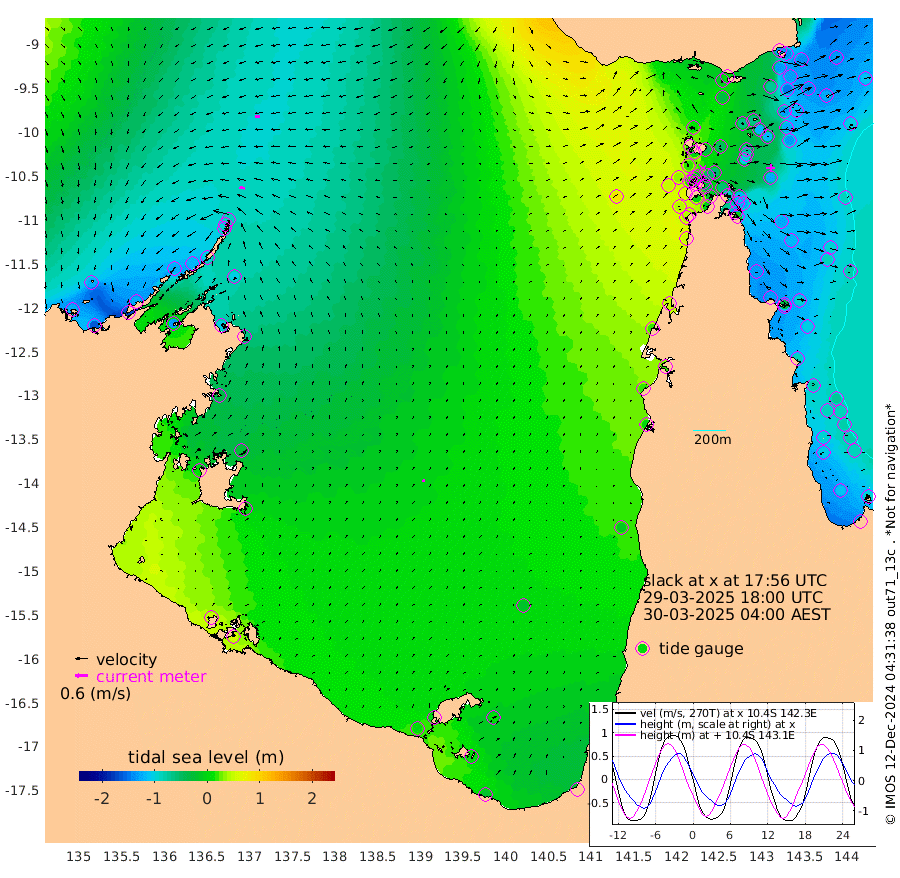 25cm/s -79T +3cm/s rms + 7cm/s -42T. ARA-GOC87 57m 13cm/s 28T +3cm/s rms + 2cm/s -2T. ARA-GOC87 60m 22cm/s -97T +2cm/s rms + 3cm/s 61T. ARA-GOC87 47m -132cm Daru -137cm Bobo Island -98cm Meer Island Barge -128cm Bramble Cay -134cm Unnamed Cay -145cm Pearce Cay -138cm Stephens Island -142cm Merrie England Shoals -132cm Mutacomal Reef -121cm Darnley Island Barge -111cm East Cay -119cm Yorke Island Barge -133cm Rennel Island -121cm Aureed Island -113cm Dungeness Reef -62cm Zagai Island -66cm Yam Island -10cm Dauan Island 9cm Saibai Island -32cm Phipi Reef -68cm Warrior Reef - West 13cm Mabuiag Island Barge -131cm Half Way Island -113cm Coconut Island -124cm Dugong Islet -91cm Poll Island -99cm Kirkcaldie Reef -49cm Suarji Island -71cm Sue Islet 17cm Hawkesbury Island -46cm Alert Patches -56cm Twin Island 17cm Badu Island -43cm St Pauls (Moa Island) -6cm Kubin (Moa Island) -25cm Ince Point -9cm Thursday Island -12cm Nardana Patches -5cm Turtle Head 16cm Round Island 18cm Goods Island 50cm Booby Island 34cm White Rocks Area 88cm Carpentaria -42cm Papou Point 62cm Bampfield Head 38cm Crab Island 39cm Red Wallis Island 0cm Packe Island -131cm Harrington Reef 40cm Herald Camp -5cm Sharp Point -5cm Red Island Point -19cm Possession Island -53cm Alpha Rock -88cm Frederick Point -124cm Wyborn Reef Light -115cm Tetley Island -83cm Triangle Reef -139cm Turtle Head Island -92cm Maclennan Cay -78cm Raine Island -126cm Mcsweeny Reef -117cm Collette Reef -89cm Shadwell Reef -132cm Hannibal Island -133cm Round Point 49cm Vrilya Point -111cm Cape Grenville -110cm Hicks Island -97cm Sir Charles Hardy Island -35cm Harvey Island -101cm Kay Reef -87cm Rocky Island -77cm Chapman Island -72cm Ham Reef -84cm Jubilee Reef -83cm Night Island -78cm Unnamed Reef No. 3 -95cm Morris Island -79cm 1st 3 Mile Opening -86cm Creech Reef -103cm Fife Island -105cm Eden Reef -94cm Stanley Island -112cm Normanby River -123cm Yabooma Island -163cm Hutchison River -126cm Elcho Island -122cm North West Crocodile Island -88cm Cape Wessel -127cm Stevens Island -113cm Guluwuru Island -103cm Hopeful Bay -96cm Auster Point -105cm Two Island Bay -169cm Cadell Strait -131cm Mallison Island -98cm Melville Bay (Gove Harbour) -101cm Truant Island -64cm Cape Arnhem -36cm Cape Grey -28cm Hawk Island 14cm Milner Bay (Groote Eylandt) 6cm Cape Beatrice 48cm West Island 57cm Centre Island -1cm Mornington Island 3cm West Wellesley Islands 8cm Bountiful Island -16cm Albert River Mouth 2cm Sweers Island -17cm Karumba -16cm Nassau River Offshore -12cm Christmas Creek 7cm Archer River 22cm Boyd Point 20cm Weipa (Humbug Point) 21cm Pennefather River 51cm Cullen Point