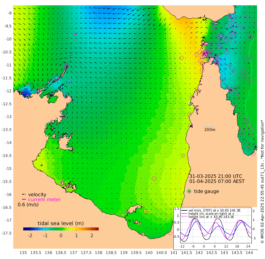 40cm/s -89T +3cm/s rms + 7cm/s -42T. ARA-GOC87 57m 4cm/s -79T +3cm/s rms + 2cm/s -2T. ARA-GOC87 60m 37cm/s -102T +2cm/s rms + 3cm/s 61T. ARA-GOC87 47m -90cm Daru -94cm Bobo Island -34cm Meer Island Barge -50cm Bramble Cay -68cm Unnamed Cay -80cm Pearce Cay -68cm Stephens Island -65cm Merrie England Shoals -78cm Mutacomal Reef -65cm Darnley Island Barge -33cm East Cay -77cm Yorke Island Barge -72cm Rennel Island -80cm Aureed Island -75cm Dungeness Reef -84cm Zagai Island -71cm Yam Island -46cm Dauan Island -46cm Saibai Island -48cm Phipi Reef -82cm Warrior Reef - West -11cm Mabuiag Island Barge -76cm Half Way Island -83cm Coconut Island -76cm Dugong Islet -74cm Poll Island -74cm Kirkcaldie Reef -50cm Suarji Island -72cm Sue Islet 68cm Hawkesbury Island -36cm Alert Patches -50cm Twin Island 45cm Badu Island -53cm St Pauls (Moa Island) 27cm Kubin (Moa Island) -17cm Ince Point 4cm Thursday Island -2cm Nardana Patches 31cm Turtle Head 51cm Round Island 74cm Goods Island 101cm Booby Island 97cm White Rocks Area 86cm Carpentaria -48cm Papou Point 104cm Bampfield Head 73cm Crab Island 89cm Red Wallis Island 50cm Packe Island -85cm Harrington Reef 86cm Herald Camp -21cm Sharp Point 23cm Red Island Point -7cm Possession Island -50cm Alpha Rock -67cm Frederick Point -83cm Wyborn Reef Light -82cm Tetley Island -31cm Triangle Reef -88cm Turtle Head Island -26cm Maclennan Cay -9cm Raine Island -65cm Mcsweeny Reef -56cm Collette Reef -28cm Shadwell Reef -62cm Hannibal Island -47cm Round Point 70cm Vrilya Point -34cm Cape Grenville -35cm Hicks Island -25cm Sir Charles Hardy Island -13cm Harvey Island -19cm Kay Reef -12cm Rocky Island -2cm Chapman Island -5cm Ham Reef -15cm Jubilee Reef -17cm Night Island -6cm Unnamed Reef No. 3 -14cm Morris Island -8cm 1st 3 Mile Opening -13cm Creech Reef -22cm Fife Island -14cm Eden Reef -11cm Stanley Island -18cm Normanby River -2cm Yabooma Island -34cm Hutchison River -17cm Elcho Island -12cm North West Crocodile Island -57cm Cape Wessel -44cm Stevens Island -109cm Guluwuru Island -21cm Hopeful Bay -43cm Auster Point -55cm Two Island Bay -96cm Cadell Strait -208cm Mallison Island -80cm Melville Bay (Gove Harbour) -88cm Truant Island -66cm Cape Arnhem -39cm Cape Grey -27cm Hawk Island -1cm Milner Bay (Groote Eylandt) 5cm Cape Beatrice 32cm West Island 32cm Centre Island 19cm Mornington Island 27cm West Wellesley Islands 56cm Bountiful Island 35cm Albert River Mouth 43cm Sweers Island 39cm Karumba 32cm Nassau River Offshore 35cm Christmas Creek 51cm Archer River 50cm Boyd Point 69cm Weipa (Humbug Point) 41cm Pennefather River 74cm Cullen Point