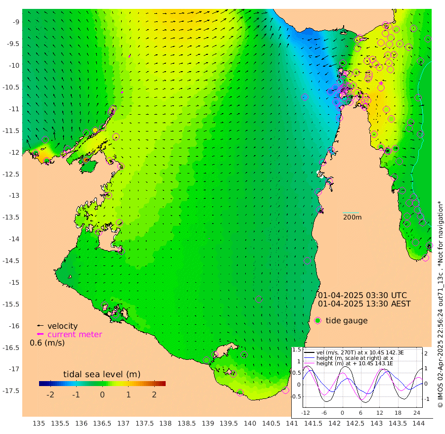 20cm/s 51T +3cm/s rms + 7cm/s -42T. ARA-GOC87 57m 3cm/s 162T +3cm/s rms + 2cm/s -2T. ARA-GOC87 60m 23cm/s 36T +2cm/s rms + 3cm/s 61T. ARA-GOC87 47m 65cm Daru 66cm Bobo Island 9cm Meer Island Barge 23cm Bramble Cay 44cm Unnamed Cay 48cm Pearce Cay 39cm Stephens Island 37cm Merrie England Shoals 57cm Mutacomal Reef 41cm Darnley Island Barge 5cm East Cay 56cm Yorke Island Barge 46cm Rennel Island 56cm Aureed Island 53cm Dungeness Reef 74cm Zagai Island 64cm Yam Island 48cm Dauan Island 57cm Saibai Island 38cm Phipi Reef 76cm Warrior Reef - West 8cm Mabuiag Island Barge 49cm Half Way Island 53cm Coconut Island 57cm Dugong Islet 56cm Poll Island 52cm Kirkcaldie Reef 40cm Suarji Island 64cm Sue Islet -97cm Hawkesbury Island 16cm Alert Patches 30cm Twin Island -81cm Badu Island 40cm St Pauls (Moa Island) -53cm Kubin (Moa Island) -2cm Ince Point -27cm Thursday Island -19cm Nardana Patches -61cm Turtle Head -78cm Round Island -112cm Goods Island -143cm Booby Island -136cm White Rocks Area -118cm Carpentaria 31cm Papou Point -147cm Bampfield Head -124cm Crab Island -129cm Red Wallis Island -86cm Packe Island 58cm Harrington Reef -109cm Herald Camp 23cm Sharp Point -53cm Red Island Point -15cm Possession Island 42cm Alpha Rock 45cm Frederick Point 59cm Wyborn Reef Light 61cm Tetley Island 10cm Triangle Reef 51cm Turtle Head Island 4cm Maclennan Cay -20cm Raine Island 40cm Mcsweeny Reef 31cm Collette Reef 4cm Shadwell Reef 34cm Hannibal Island 15cm Round Point -121cm Vrilya Point 9cm Cape Grenville 8cm Hicks Island 8cm Sir Charles Hardy Island 5cm Harvey Island -5cm Kay Reef -10cm Rocky Island -22cm Chapman Island -16cm Ham Reef -9cm Jubilee Reef -8cm Night Island -19cm Unnamed Reef No. 3 -12cm Morris Island -20cm 1st 3 Mile Opening -14cm Creech Reef -7cm Fife Island -16cm Eden Reef -15cm Stanley Island -7cm Normanby River -22cm Yabooma Island -3cm Hutchison River -11cm Elcho Island -9cm North West Crocodile Island 38cm Cape Wessel 13cm Stevens Island 83cm Guluwuru Island -1cm Hopeful Bay 18cm Auster Point 35cm Two Island Bay 53cm Cadell Strait 167cm Mallison Island 59cm Melville Bay (Gove Harbour) 62cm Truant Island 50cm Cape Arnhem 41cm Cape Grey 36cm Hawk Island 23cm Milner Bay (Groote Eylandt) 22cm Cape Beatrice 16cm West Island 8cm Centre Island 18cm Mornington Island 16cm West Wellesley Islands 12cm Bountiful Island 22cm Albert River Mouth 24cm Sweers Island 14cm Karumba -13cm Nassau River Offshore -36cm Christmas Creek -74cm Archer River -72cm Boyd Point -92cm Weipa (Humbug Point) -87cm Pennefather River -106cm Cullen Point