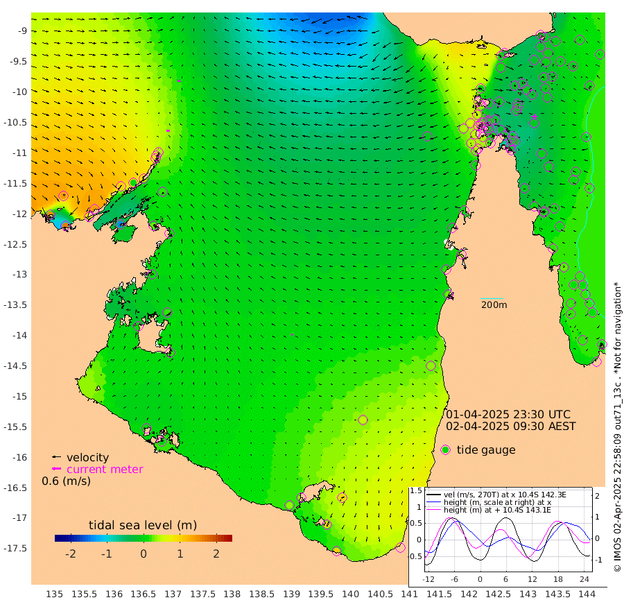 24cm/s -92T +3cm/s rms + 7cm/s -42T. ARA-GOC87 57m 14cm/s -96T +3cm/s rms + 2cm/s -2T. ARA-GOC87 60m 18cm/s -98T +2cm/s rms + 3cm/s 61T. ARA-GOC87 47m -15cm Daru -14cm Bobo Island 5cm Meer Island Barge 8cm Bramble Cay -4cm Unnamed Cay 0cm Pearce Cay -3cm Stephens Island -4cm Merrie England Shoals -9cm Mutacomal Reef -11cm Darnley Island Barge 14cm East Cay -17cm Yorke Island Barge -3cm Rennel Island -12cm Aureed Island -7cm Dungeness Reef -26cm Zagai Island -17cm Yam Island -3cm Dauan Island -18cm Saibai Island 8cm Phipi Reef -16cm Warrior Reef - West -1cm Mabuiag Island Barge -14cm Half Way Island -15cm Coconut Island -14cm Dugong Islet -14cm Poll Island -20cm Kirkcaldie Reef -1cm Suarji Island -28cm Sue Islet 47cm Hawkesbury Island -6cm Alert Patches -12cm Twin Island 38cm Badu Island -15cm St Pauls (Moa Island) 30cm Kubin (Moa Island) 1cm Ince Point 7cm Thursday Island 7cm Nardana Patches 30cm Turtle Head 39cm Round Island 50cm Goods Island 45cm Booby Island 56cm White Rocks Area -8cm Carpentaria -14cm Papou Point 47cm Bampfield Head 23cm Crab Island 40cm Red Wallis Island 39cm Packe Island -16cm Harrington Reef 47cm Herald Camp -15cm Sharp Point 20cm Red Island Point 7cm Possession Island -17cm Alpha Rock -14cm Frederick Point -13cm Wyborn Reef Light -15cm Tetley Island 7cm Triangle Reef -18cm Turtle Head Island 10cm Maclennan Cay 17cm Raine Island -5cm Mcsweeny Reef -4cm Collette Reef 5cm Shadwell Reef -3cm Hannibal Island 13cm Round Point -2cm Vrilya Point 8cm Cape Grenville 12cm Hicks Island 15cm Sir Charles Hardy Island 1cm Harvey Island 14cm Kay Reef 20cm Rocky Island 24cm Chapman Island 16cm Ham Reef 13cm Jubilee Reef 12cm Night Island 17cm Unnamed Reef No. 3 20cm Morris Island 16cm 1st 3 Mile Opening 14cm Creech Reef 18cm Fife Island 22cm Eden Reef 15cm Stanley Island 22cm Normanby River 147cm Yabooma Island 160cm Hutchison River 140cm Elcho Island 141cm North West Crocodile Island 44cm Cape Wessel 99cm Stevens Island 4cm Guluwuru Island 102cm Hopeful Bay 68cm Auster Point 61cm Two Island Bay 80cm Cadell Strait -137cm Mallison Island 26cm Melville Bay (Gove Harbour) 19cm Truant Island 4cm Cape Arnhem 9cm Cape Grey 16cm Hawk Island 8cm Milner Bay (Groote Eylandt) 15cm Cape Beatrice 3cm West Island -3cm Centre Island 35cm Mornington Island 35cm West Wellesley Islands 91cm Bountiful Island 99cm Albert River Mouth 99cm Sweers Island 99cm Karumba 46cm Nassau River Offshore 33cm Christmas Creek 27cm Archer River 15cm Boyd Point 39cm Weipa (Humbug Point) -9cm Pennefather River 13cm Cullen Point