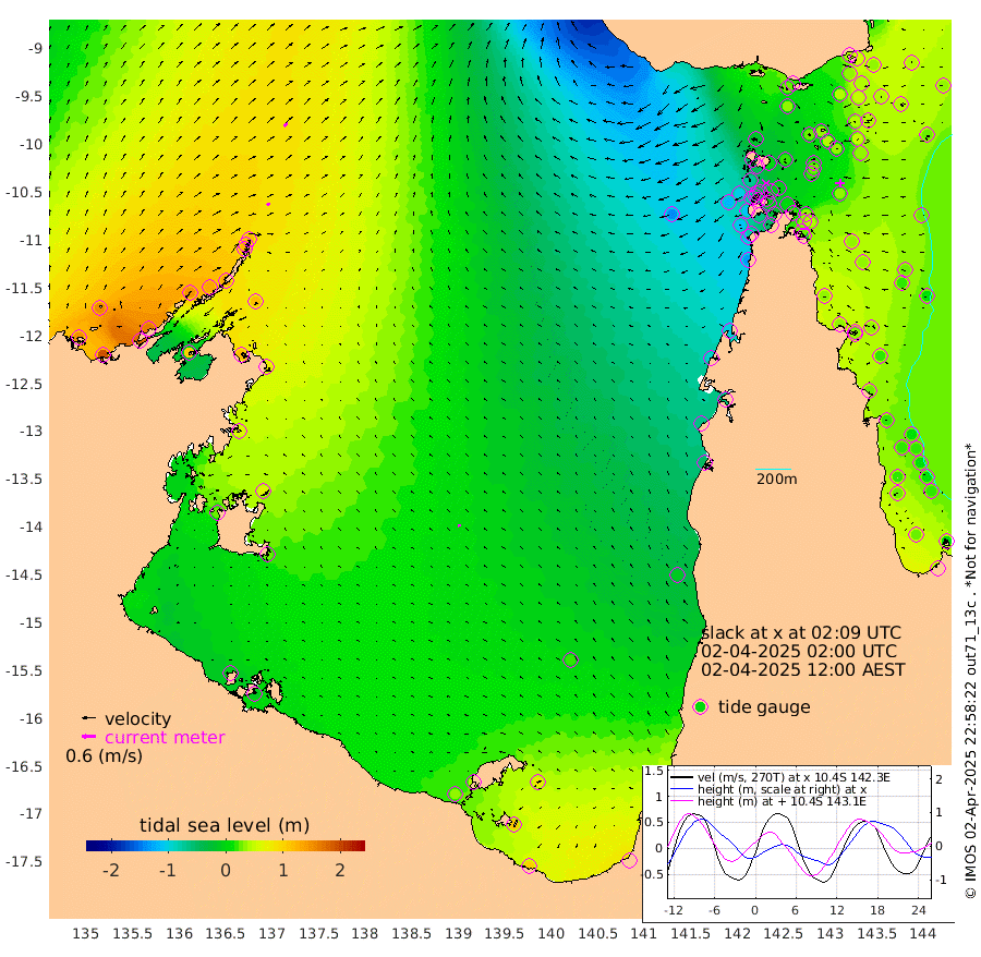 14cm/s 60T +3cm/s rms + 7cm/s -42T. ARA-GOC87 57m 12cm/s -92T +3cm/s rms + 2cm/s -2T. ARA-GOC87 60m 21cm/s 49T +2cm/s rms + 3cm/s 61T. ARA-GOC87 47m 45cm Daru 54cm Bobo Island 29cm Meer Island Barge 39cm Bramble Cay 39cm Unnamed Cay 52cm Pearce Cay 42cm Stephens Island 32cm Merrie England Shoals 37cm Mutacomal Reef 39cm Darnley Island Barge 32cm East Cay 41cm Yorke Island Barge 39cm Rennel Island 47cm Aureed Island 38cm Dungeness Reef 35cm Zagai Island 27cm Yam Island 25cm Dauan Island 18cm Saibai Island 30cm Phipi Reef 44cm Warrior Reef - West -17cm Mabuiag Island Barge 32cm Half Way Island 33cm Coconut Island 33cm Dugong Islet 28cm Poll Island 17cm Kirkcaldie Reef 18cm Suarji Island 20cm Sue Islet -74cm Hawkesbury Island -11cm Alert Patches -2cm Twin Island -60cm Badu Island 1cm St Pauls (Moa Island) -43cm Kubin (Moa Island) -23cm Ince Point -42cm Thursday Island -35cm Nardana Patches -50cm Turtle Head -57cm Round Island -77cm Goods Island -113cm Booby Island -98cm White Rocks Area -137cm Carpentaria -1cm Papou Point -109cm Bampfield Head -108cm Crab Island -105cm Red Wallis Island -65cm Packe Island 32cm Harrington Reef -82cm Herald Camp -2cm Sharp Point -50cm Red Island Point -24cm Possession Island 2cm Alpha Rock 15cm Frederick Point 38cm Wyborn Reef Light 34cm Tetley Island 25cm Triangle Reef 30cm Turtle Head Island 24cm Maclennan Cay 14cm Raine Island 36cm Mcsweeny Reef 31cm Collette Reef 20cm Shadwell Reef 37cm Hannibal Island 37cm Round Point -128cm Vrilya Point 24cm Cape Grenville 31cm Hicks Island 31cm Sir Charles Hardy Island 9cm Harvey Island 19cm Kay Reef 23cm Rocky Island 18cm Chapman Island 15cm Ham Reef 18cm Jubilee Reef 17cm Night Island 13cm Unnamed Reef No. 3 22cm Morris Island 12cm 1st 3 Mile Opening 16cm Creech Reef 27cm Fife Island 28cm Eden Reef 15cm Stanley Island 29cm Normanby River 149cm Yabooma Island 193cm Hutchison River 158cm Elcho Island 154cm North West Crocodile Island 113cm Cape Wessel 144cm Stevens Island 129cm Guluwuru Island 130cm Hopeful Bay 117cm Auster Point 126cm Two Island Bay 180cm Cadell Strait 100cm Mallison Island 120cm Melville Bay (Gove Harbour) 119cm Truant Island 82cm Cape Arnhem 63cm Cape Grey 60cm Hawk Island 29cm Milner Bay (Groote Eylandt) 29cm Cape Beatrice -5cm West Island -14cm Centre Island 39cm Mornington Island 32cm West Wellesley Islands 77cm Bountiful Island 103cm Albert River Mouth 106cm Sweers Island 93cm Karumba 19cm Nassau River Offshore -11cm Christmas Creek -49cm Archer River -61cm Boyd Point -57cm Weipa (Humbug Point) -94cm Pennefather River -101cm Cullen Point