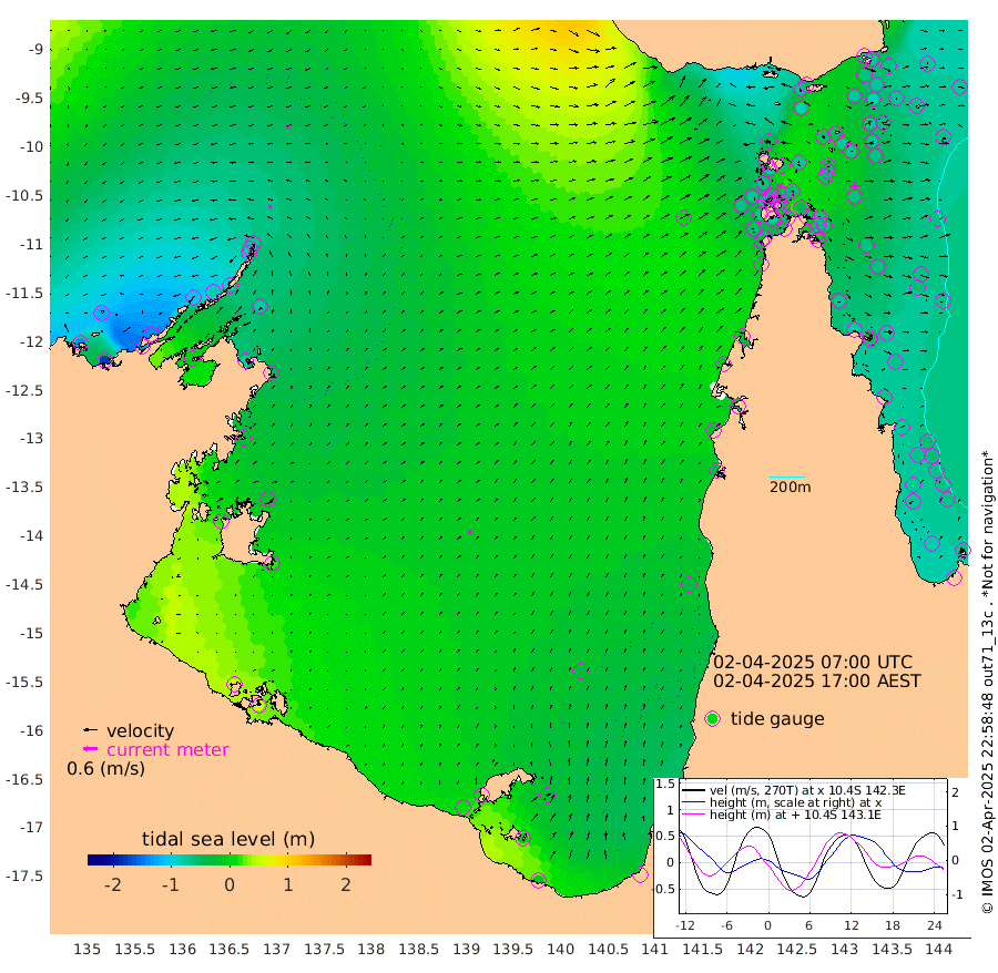 18cm/s -34T +3cm/s rms + 7cm/s -42T. ARA-GOC87 57m 18cm/s 23T +3cm/s rms + 2cm/s -2T. ARA-GOC87 60m 14cm/s -42T +2cm/s rms + 3cm/s 61T. ARA-GOC87 47m -69cm Daru -73cm Bobo Island -63cm Meer Island Barge -72cm Bramble Cay -69cm Unnamed Cay -84cm Pearce Cay -73cm Stephens Island -65cm Merrie England Shoals -63cm Mutacomal Reef -65cm Darnley Island Barge -71cm East Cay -62cm Yorke Island Barge -70cm Rennel Island -72cm Aureed Island -74cm Dungeness Reef -56cm Zagai Island -53cm Yam Island -69cm Dauan Island -46cm Saibai Island -88cm Phipi Reef -69cm Warrior Reef - West -43cm Mabuiag Island Barge -61cm Half Way Island -70cm Coconut Island -60cm Dugong Islet -61cm Poll Island -55cm Kirkcaldie Reef -70cm Suarji Island -43cm Sue Islet -67cm Hawkesbury Island -59cm Alert Patches -56cm Twin Island -81cm Badu Island -54cm St Pauls (Moa Island) -71cm Kubin (Moa Island) -55cm Ince Point -55cm Thursday Island -56cm Nardana Patches -74cm Turtle Head -69cm Round Island -81cm Goods Island -64cm Booby Island -70cm White Rocks Area -4cm Carpentaria -46cm Papou Point -73cm Bampfield Head -43cm Crab Island -58cm Red Wallis Island -76cm Packe Island -65cm Harrington Reef -66cm Herald Camp -1cm Sharp Point -54cm Red Island Point -58cm Possession Island -38cm Alpha Rock -60cm Frederick Point -65cm Wyborn Reef Light -62cm Tetley Island -62cm Triangle Reef -69cm Turtle Head Island -63cm Maclennan Cay -64cm Raine Island -67cm Mcsweeny Reef -64cm Collette Reef -60cm Shadwell Reef -70cm Hannibal Island -77cm Round Point -14cm Vrilya Point -63cm Cape Grenville -70cm Hicks Island -73cm Sir Charles Hardy Island -19cm Harvey Island -62cm Kay Reef -67cm Rocky Island -69cm Chapman Island -58cm Ham Reef -61cm Jubilee Reef -59cm Night Island -61cm Unnamed Reef No. 3 -69cm Morris Island -67cm 1st 3 Mile Opening -63cm Creech Reef -68cm Fife Island -77cm Eden Reef -61cm Stanley Island -68cm Normanby River -136cm Yabooma Island -174cm Hutchison River -136cm Elcho Island -125cm North West Crocodile Island -72cm Cape Wessel -112cm Stevens Island -79cm Guluwuru Island -104cm Hopeful Bay -88cm Auster Point -80cm Two Island Bay -132cm Cadell Strait -14cm Mallison Island -81cm Melville Bay (Gove Harbour) -81cm Truant Island -52cm Cape Arnhem -27cm Cape Grey -19cm Hawk Island 21cm Milner Bay (Groote Eylandt) 21cm Cape Beatrice 63cm West Island 65cm Centre Island 5cm Mornington Island 12cm West Wellesley Islands -29cm Bountiful Island -20cm Albert River Mouth -11cm Sweers Island -22cm Karumba -30cm Nassau River Offshore -44cm Christmas Creek -44cm Archer River -36cm Boyd Point -57cm Weipa (Humbug Point) -14cm Pennefather River -25cm Cullen Point