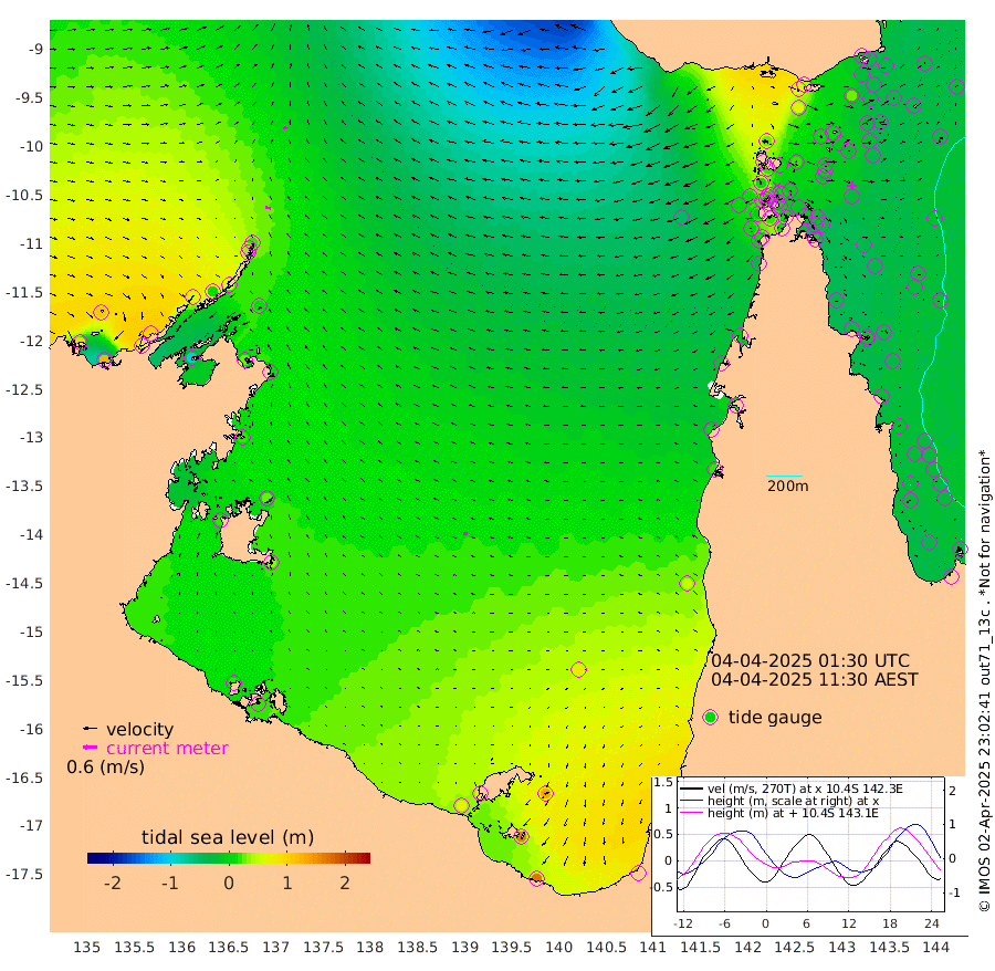 22cm/s -84T +3cm/s rms + 7cm/s -42T. ARA-GOC87 57m 18cm/s -102T +3cm/s rms + 2cm/s -2T. ARA-GOC87 60m 17cm/s -79T +2cm/s rms + 3cm/s 61T. ARA-GOC87 47m -19cm Daru -24cm Bobo Island -31cm Meer Island Barge -29cm Bramble Cay -31cm Unnamed Cay -23cm Pearce Cay -34cm Stephens Island -39cm Merrie England Shoals -25cm Mutacomal Reef -38cm Darnley Island Barge -30cm East Cay -32cm Yorke Island Barge -24cm Rennel Island -22cm Aureed Island -8cm Dungeness Reef 10cm Zagai Island 8cm Yam Island 61cm Dauan Island 41cm Saibai Island 68cm Phipi Reef 28cm Warrior Reef - West 27cm Mabuiag Island Barge -35cm Half Way Island -17cm Coconut Island -29cm Dugong Islet -5cm Poll Island -18cm Kirkcaldie Reef 21cm Suarji Island -15cm Sue Islet 14cm Hawkesbury Island 4cm Alert Patches -1cm Twin Island 33cm Badu Island 8cm St Pauls (Moa Island) 19cm Kubin (Moa Island) 9cm Ince Point 7cm Thursday Island 11cm Nardana Patches 22cm Turtle Head 19cm Round Island 21cm Goods Island 4cm Booby Island 12cm White Rocks Area -49cm Carpentaria 0cm Papou Point -5cm Bampfield Head -6cm Crab Island 4cm Red Wallis Island 17cm Packe Island -32cm Harrington Reef 12cm Herald Camp 1cm Sharp Point 8cm Red Island Point 4cm Possession Island -10cm Alpha Rock -12cm Frederick Point -24cm Wyborn Reef Light -21cm Tetley Island -18cm Triangle Reef -42cm Turtle Head Island -27cm Maclennan Cay -22cm Raine Island -31cm Mcsweeny Reef -31cm Collette Reef -27cm Shadwell Reef -36cm Hannibal Island -30cm Round Point -34cm Vrilya Point -35cm Cape Grenville -29cm Hicks Island -26cm Sir Charles Hardy Island -11cm Harvey Island -36cm Kay Reef -23cm Rocky Island -21cm Chapman Island -27cm Ham Reef -28cm Jubilee Reef -24cm Night Island -27cm Unnamed Reef No. 3 -26cm Morris Island -26cm 1st 3 Mile Opening -30cm Creech Reef -26cm Fife Island -30cm Eden Reef -35cm Stanley Island -36cm Normanby River 96cm Yabooma Island 121cm Hutchison River 104cm Elcho Island 106cm North West Crocodile Island 19cm Cape Wessel 67cm Stevens Island 8cm Guluwuru Island 67cm Hopeful Bay 37cm Auster Point 32cm Two Island Bay 62cm Cadell Strait -105cm Mallison Island 25cm Melville Bay (Gove Harbour) 15cm Truant Island 11cm Cape Arnhem 16cm Cape Grey 30cm Hawk Island 22cm Milner Bay (Groote Eylandt) 33cm Cape Beatrice 22cm West Island 17cm Centre Island 80cm Mornington Island 73cm West Wellesley Islands 131cm Bountiful Island 170cm Albert River Mouth 162cm Sweers Island 163cm Karumba 75cm Nassau River Offshore 48cm Christmas Creek 19cm Archer River 2cm Boyd Point 22cm Weipa (Humbug Point) -25cm Pennefather River -13cm Cullen Point