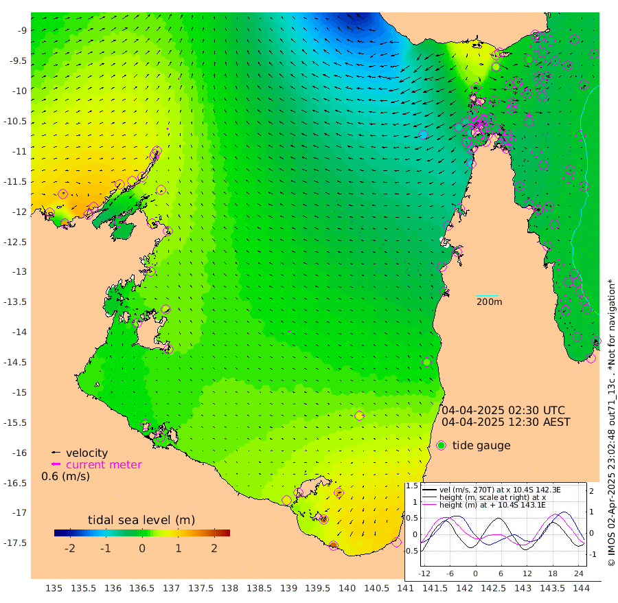 10cm/s -50T +3cm/s rms + 7cm/s -42T. ARA-GOC87 57m 18cm/s -90T +3cm/s rms + 2cm/s -2T. ARA-GOC87 60m 11cm/s -11T +2cm/s rms + 3cm/s 61T. ARA-GOC87 47m -28cm Daru -26cm Bobo Island -26cm Meer Island Barge -29cm Bramble Cay -37cm Unnamed Cay -27cm Pearce Cay -36cm Stephens Island -46cm Merrie England Shoals -38cm Mutacomal Reef -34cm Darnley Island Barge -28cm East Cay -32cm Yorke Island Barge -34cm Rennel Island -25cm Aureed Island -22cm Dungeness Reef -1cm Zagai Island -12cm Yam Island 37cm Dauan Island 23cm Saibai Island 40cm Phipi Reef 13cm Warrior Reef - West -10cm Mabuiag Island Barge -44cm Half Way Island -31cm Coconut Island -41cm Dugong Islet -24cm Poll Island -39cm Kirkcaldie Reef -10cm Suarji Island -30cm Sue Islet -54cm Hawkesbury Island -35cm Alert Patches -35cm Twin Island -29cm Badu Island -26cm St Pauls (Moa Island) -36cm Kubin (Moa Island) -33cm Ince Point -42cm Thursday Island -36cm Nardana Patches -34cm Turtle Head -40cm Round Island -46cm Goods Island -69cm Booby Island -62cm White Rocks Area -104cm Carpentaria -30cm Papou Point -76cm Bampfield Head -67cm Crab Island -66cm Red Wallis Island -45cm Packe Island -48cm Harrington Reef -54cm Herald Camp -7cm Sharp Point -42cm Red Island Point -37cm Possession Island -36cm Alpha Rock -38cm Frederick Point -37cm Wyborn Reef Light -36cm Tetley Island -19cm Triangle Reef -57cm Turtle Head Island -28cm Maclennan Cay -21cm Raine Island -36cm Mcsweeny Reef -34cm Collette Reef -26cm Shadwell Reef -37cm Hannibal Island -33cm Round Point -91cm Vrilya Point -38cm Cape Grenville -29cm Hicks Island -25cm Sir Charles Hardy Island -12cm Harvey Island -36cm Kay Reef -22cm Rocky Island -20cm Chapman Island -24cm Ham Reef -26cm Jubilee Reef -24cm Night Island -27cm Unnamed Reef No. 3 -25cm Morris Island -26cm 1st 3 Mile Opening -28cm Creech Reef -23cm Fife Island -24cm Eden Reef -34cm Stanley Island -32cm Normanby River 105cm Yabooma Island 139cm Hutchison River 120cm Elcho Island 117cm North West Crocodile Island 52cm Cape Wessel 91cm Stevens Island 58cm Guluwuru Island 88cm Hopeful Bay 63cm Auster Point 62cm Two Island Bay 104cm Cadell Strait -1cm Mallison Island 63cm Melville Bay (Gove Harbour) 56cm Truant Island 42cm Cape Arnhem 39cm Cape Grey 49cm Hawk Island 36cm Milner Bay (Groote Eylandt) 41cm Cape Beatrice 23cm West Island 18cm Centre Island 84cm Mornington Island 76cm West Wellesley Islands 132cm Bountiful Island 180cm Albert River Mouth 177cm Sweers Island 167cm Karumba 64cm Nassau River Offshore 27cm Christmas Creek -12cm Archer River -31cm Boyd Point -17cm Weipa (Humbug Point) -63cm Pennefather River -62cm Cullen Point