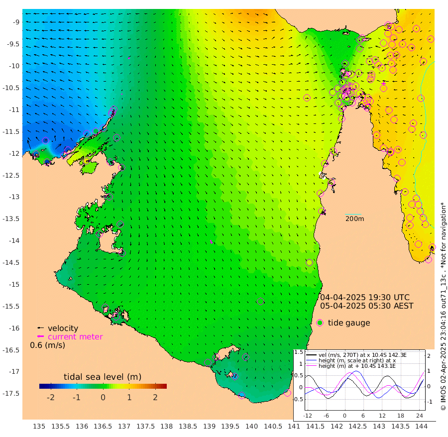 6cm/s -179T +3cm/s rms + 7cm/s -42T. ARA-GOC87 57m 36cm/s 160T +3cm/s rms + 2cm/s -2T. ARA-GOC87 60m 14cm/s -116T +2cm/s rms + 3cm/s 61T. ARA-GOC87 47m 91cm Daru 89cm Bobo Island 89cm Meer Island Barge 94cm Bramble Cay 101cm Unnamed Cay 97cm Pearce Cay 103cm Stephens Island 105cm Merrie England Shoals 94cm Mutacomal Reef 105cm Darnley Island Barge 91cm East Cay 99cm Yorke Island Barge 93cm Rennel Island 94cm Aureed Island 85cm Dungeness Reef 50cm Zagai Island 55cm Yam Island 24cm Dauan Island 27cm Saibai Island 26cm Phipi Reef 54cm Warrior Reef - West 23cm Mabuiag Island Barge 101cm Half Way Island 81cm Coconut Island 101cm Dugong Islet 70cm Poll Island 84cm Kirkcaldie Reef 52cm Suarji Island 75cm Sue Islet 40cm Hawkesbury Island 63cm Alert Patches 63cm Twin Island 27cm Badu Island 54cm St Pauls (Moa Island) 40cm Kubin (Moa Island) 51cm Ince Point 51cm Thursday Island 48cm Nardana Patches 48cm Turtle Head 28cm Round Island 44cm Goods Island 47cm Booby Island 39cm White Rocks Area 65cm Carpentaria 44cm Papou Point 42cm Bampfield Head 37cm Crab Island 47cm Red Wallis Island 51cm Packe Island 99cm Harrington Reef 46cm Herald Camp 14cm Sharp Point 40cm Red Island Point 43cm Possession Island 61cm Alpha Rock 76cm Frederick Point 85cm Wyborn Reef Light 80cm Tetley Island 76cm Triangle Reef 98cm Turtle Head Island 88cm Maclennan Cay 74cm Raine Island 98cm Mcsweeny Reef 96cm Collette Reef 85cm Shadwell Reef 104cm Hannibal Island 96cm Round Point 54cm Vrilya Point 98cm Cape Grenville 90cm Hicks Island 100cm Sir Charles Hardy Island 30cm Harvey Island 96cm Kay Reef 83cm Rocky Island 80cm Chapman Island 81cm Ham Reef 84cm Jubilee Reef 79cm Night Island 83cm Unnamed Reef No. 3 86cm Morris Island 84cm 1st 3 Mile Opening 89cm Creech Reef 86cm Fife Island 97cm Eden Reef 94cm Stanley Island 96cm Normanby River -157cm Yabooma Island -178cm Hutchison River -166cm Elcho Island -167cm North West Crocodile Island -77cm Cape Wessel -136cm Stevens Island -37cm Guluwuru Island -125cm Hopeful Bay -97cm Auster Point -96cm Two Island Bay -116cm Cadell Strait 90cm Mallison Island -51cm Melville Bay (Gove Harbour) -49cm Truant Island -29cm Cape Arnhem -33cm Cape Grey -40cm Hawk Island -51cm Milner Bay (Groote Eylandt) -42cm Cape Beatrice -29cm West Island -31cm Centre Island -29cm Mornington Island -19cm West Wellesley Islands -51cm Bountiful Island -116cm Albert River Mouth -124cm Sweers Island -103cm Karumba 14cm Nassau River Offshore 48cm Christmas Creek 51cm Archer River 57cm Boyd Point 50cm Weipa (Humbug Point) 52cm Pennefather River 49cm Cullen Point