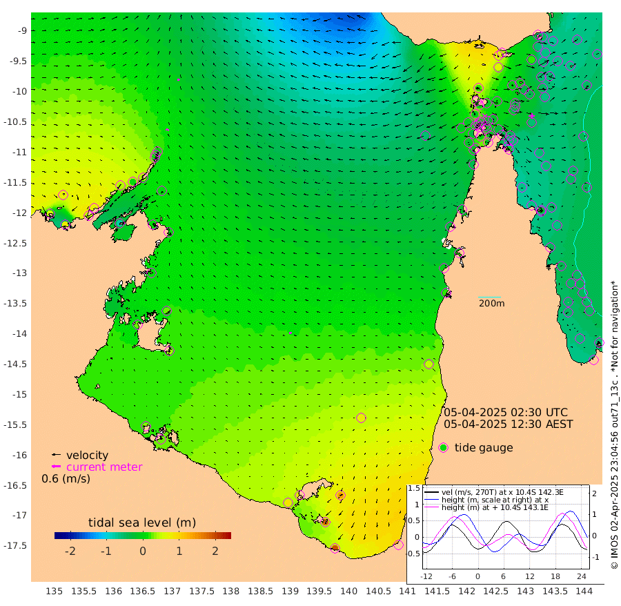 20cm/s -79T +3cm/s rms + 7cm/s -42T. ARA-GOC87 57m 18cm/s -101T +3cm/s rms + 2cm/s -2T. ARA-GOC87 60m 17cm/s -71T +2cm/s rms + 3cm/s 61T. ARA-GOC87 47m -46cm Daru -52cm Bobo Island -52cm Meer Island Barge -58cm Bramble Cay -62cm Unnamed Cay -55cm Pearce Cay -65cm Stephens Island -71cm Merrie England Shoals -56cm Mutacomal Reef -63cm Darnley Island Barge -56cm East Cay -57cm Yorke Island Barge -54cm Rennel Island -48cm Aureed Island -33cm Dungeness Reef 0cm Zagai Island -7cm Yam Island 64cm Dauan Island 46cm Saibai Island 65cm Phipi Reef 19cm Warrior Reef - West 21cm Mabuiag Island Barge -64cm Half Way Island -43cm Coconut Island -58cm Dugong Islet -27cm Poll Island -41cm Kirkcaldie Reef 0cm Suarji Island -32cm Sue Islet -9cm Hawkesbury Island -17cm Alert Patches -22cm Twin Island 18cm Badu Island -9cm St Pauls (Moa Island) -2cm Kubin (Moa Island) -8cm Ince Point -10cm Thursday Island -6cm Nardana Patches 4cm Turtle Head -4cm Round Island 1cm Goods Island -14cm Booby Island -13cm White Rocks Area -58cm Carpentaria -17cm Papou Point -32cm Bampfield Head -17cm Crab Island -15cm Red Wallis Island -5cm Packe Island -65cm Harrington Reef -11cm Herald Camp 0cm Sharp Point -9cm Red Island Point -17cm Possession Island -29cm Alpha Rock -38cm Frederick Point -55cm Wyborn Reef Light -50cm Tetley Island -38cm Triangle Reef -77cm Turtle Head Island -50cm Maclennan Cay -40cm Raine Island -60cm Mcsweeny Reef -57cm Collette Reef -46cm Shadwell Reef -64cm Hannibal Island -62cm Round Point -41cm Vrilya Point -63cm Cape Grenville -55cm Hicks Island -51cm Sir Charles Hardy Island -20cm Harvey Island -62cm Kay Reef -45cm Rocky Island -41cm Chapman Island -46cm Ham Reef -48cm Jubilee Reef -44cm Night Island -47cm Unnamed Reef No. 3 -50cm Morris Island -46cm 1st 3 Mile Opening -50cm Creech Reef -49cm Fife Island -54cm Eden Reef -58cm Stanley Island -64cm Normanby River 58cm Yabooma Island 82cm Hutchison River 72cm Elcho Island 74cm North West Crocodile Island 0cm Cape Wessel 39cm Stevens Island 1cm Guluwuru Island 40cm Hopeful Bay 13cm Auster Point 9cm Two Island Bay 40cm Cadell Strait -80cm Mallison Island 14cm Melville Bay (Gove Harbour) 3cm Truant Island 7cm Cape Arnhem 14cm Cape Grey 30cm Hawk Island 27cm Milner Bay (Groote Eylandt) 38cm Cape Beatrice 31cm West Island 28cm Centre Island 93cm Mornington Island 85cm West Wellesley Islands 139cm Bountiful Island 189cm Albert River Mouth 179cm Sweers Island 179cm Karumba 82cm Nassau River Offshore 51cm Christmas Creek 18cm Archer River -1cm Boyd Point 17cm Weipa (Humbug Point) -26cm Pennefather River -20cm Cullen Point