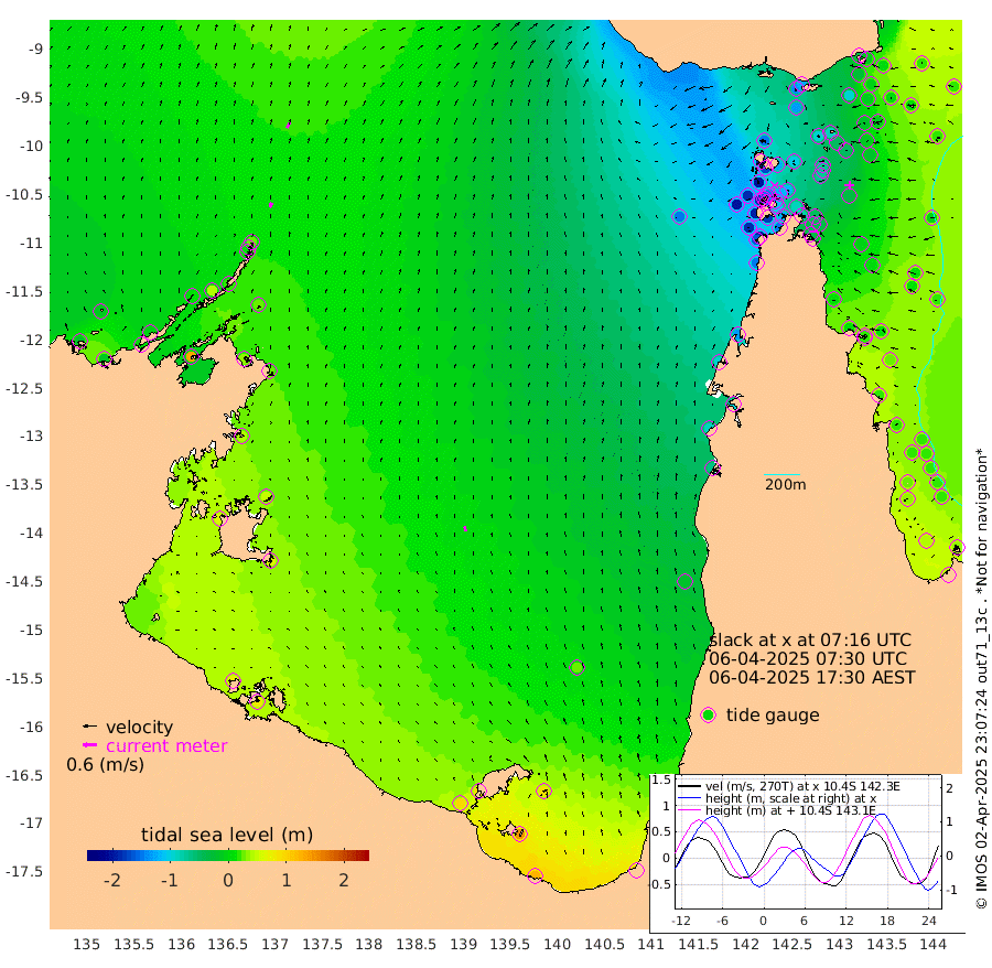 21cm/s 20T +3cm/s rms + 7cm/s -42T. ARA-GOC87 57m 22cm/s -18T +3cm/s rms + 2cm/s -2T. ARA-GOC87 60m 26cm/s 29T +2cm/s rms + 3cm/s 61T. ARA-GOC87 47m -31cm Daru -15cm Bobo Island 22cm Meer Island Barge 16cm Bramble Cay -6cm Unnamed Cay -11cm Pearce Cay 5cm Stephens Island 3cm Merrie England Shoals -28cm Mutacomal Reef 12cm Darnley Island Barge 22cm East Cay -8cm Yorke Island Barge -20cm Rennel Island -13cm Aureed Island -50cm Dungeness Reef -83cm Zagai Island -95cm Yam Island -141cm Dauan Island -125cm Saibai Island -132cm Phipi Reef -95cm Warrior Reef - West -145cm Mabuiag Island Barge -19cm Half Way Island -47cm Coconut Island -34cm Dugong Islet -72cm Poll Island -71cm Kirkcaldie Reef -104cm Suarji Island -68cm Sue Islet -202cm Hawkesbury Island -120cm Alert Patches -113cm Twin Island -198cm Badu Island -127cm St Pauls (Moa Island) -172cm Kubin (Moa Island) -138cm Ince Point -152cm Thursday Island -149cm Nardana Patches -164cm Turtle Head -170cm Round Island -185cm Goods Island -195cm Booby Island -186cm White Rocks Area -149cm Carpentaria -112cm Papou Point -191cm Bampfield Head -163cm Crab Island -186cm Red Wallis Island -176cm Packe Island -39cm Harrington Reef -188cm Herald Camp -32cm Sharp Point -149cm Red Island Point -127cm Possession Island -87cm Alpha Rock -82cm Frederick Point -40cm Wyborn Reef Light -52cm Tetley Island -1cm Triangle Reef -45cm Turtle Head Island 9cm Maclennan Cay 17cm Raine Island -5cm Mcsweeny Reef 4cm Collette Reef 13cm Shadwell Reef 11cm Hannibal Island 13cm Round Point -148cm Vrilya Point 17cm Cape Grenville 15cm Hicks Island 11cm Sir Charles Hardy Island 5cm Harvey Island 26cm Kay Reef 21cm Rocky Island 22cm Chapman Island 22cm Ham Reef 21cm Jubilee Reef 20cm Night Island 22cm Unnamed Reef No. 3 24cm Morris Island 17cm 1st 3 Mile Opening 22cm Creech Reef 31cm Fife Island 39cm Eden Reef 30cm Stanley Island 38cm Normanby River -15cm Yabooma Island -14cm Hutchison River -4cm Elcho Island -10cm North West Crocodile Island 23cm Cape Wessel 9cm Stevens Island 40cm Guluwuru Island 16cm Hopeful Bay 14cm Auster Point 14cm Two Island Bay 13cm Cadell Strait 131cm Mallison Island 31cm Melville Bay (Gove Harbour) 30cm Truant Island 29cm Cape Arnhem 38cm Cape Grey 45cm Hawk Island 65cm Milner Bay (Groote Eylandt) 63cm Cape Beatrice 75cm West Island 76cm Centre Island 84cm Mornington Island 91cm West Wellesley Islands 87cm Bountiful Island 124cm Albert River Mouth 146cm Sweers Island 106cm Karumba 27cm Nassau River Offshore -19cm Christmas Creek -63cm Archer River -84cm Boyd Point -93cm Weipa (Humbug Point) -93cm Pennefather River -131cm Cullen Point