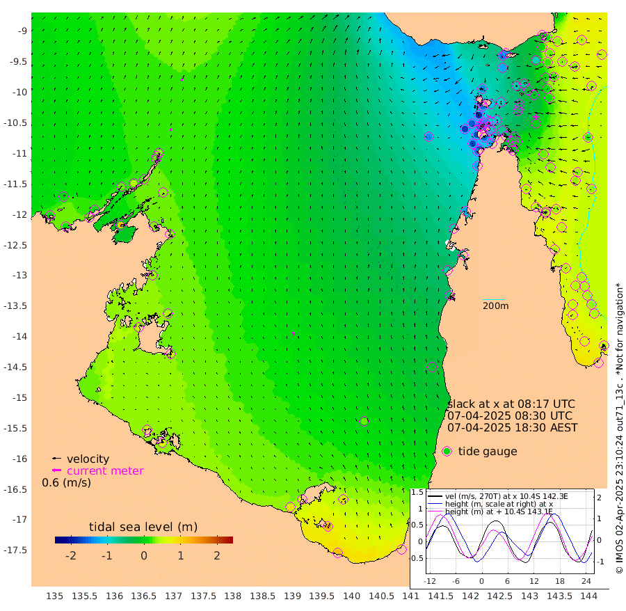 19cm/s 28T +3cm/s rms + 7cm/s -42T. ARA-GOC87 57m 23cm/s -15T +3cm/s rms + 2cm/s -2T. ARA-GOC87 60m 24cm/s 37T +2cm/s rms + 3cm/s 61T. ARA-GOC87 47m -2cm Daru 15cm Bobo Island 42cm Meer Island Barge 44cm Bramble Cay 25cm Unnamed Cay 21cm Pearce Cay 35cm Stephens Island 37cm Merrie England Shoals 4cm Mutacomal Reef 36cm Darnley Island Barge 48cm East Cay 16cm Yorke Island Barge 11cm Rennel Island 14cm Aureed Island -23cm Dungeness Reef -70cm Zagai Island -80cm Yam Island -144cm Dauan Island -130cm Saibai Island -126cm Phipi Reef -84cm Warrior Reef - West -138cm Mabuiag Island Barge 11cm Half Way Island -17cm Coconut Island -5cm Dugong Islet -49cm Poll Island -45cm Kirkcaldie Reef -83cm Suarji Island -51cm Sue Islet -184cm Hawkesbury Island -97cm Alert Patches -89cm Twin Island -180cm Badu Island -109cm St Pauls (Moa Island) -155cm Kubin (Moa Island) -119cm Ince Point -133cm Thursday Island -131cm Nardana Patches -144cm Turtle Head -153cm Round Island -164cm Goods Island -176cm Booby Island -161cm White Rocks Area -138cm Carpentaria -94cm Papou Point -169cm Bampfield Head -146cm Crab Island -167cm Red Wallis Island -155cm Packe Island -4cm Harrington Reef -174cm Herald Camp -30cm Sharp Point -129cm Red Island Point -107cm Possession Island -68cm Alpha Rock -55cm Frederick Point -8cm Wyborn Reef Light -23cm Tetley Island 17cm Triangle Reef -10cm Turtle Head Island 31cm Maclennan Cay 37cm Raine Island 24cm Mcsweeny Reef 31cm Collette Reef 33cm Shadwell Reef 41cm Hannibal Island 45cm Round Point -134cm Vrilya Point 44cm Cape Grenville 40cm Hicks Island 32cm Sir Charles Hardy Island 13cm Harvey Island 51cm Kay Reef 42cm Rocky Island 42cm Chapman Island 40cm Ham Reef 40cm Jubilee Reef 39cm Night Island 42cm Unnamed Reef No. 3 47cm Morris Island 36cm 1st 3 Mile Opening 42cm Creech Reef 55cm Fife Island 61cm Eden Reef 52cm Stanley Island 64cm Normanby River 4cm Yabooma Island 9cm Hutchison River 14cm Elcho Island 7cm North West Crocodile Island 31cm Cape Wessel 26cm Stevens Island 41cm Guluwuru Island 29cm Hopeful Bay 26cm Auster Point 20cm Two Island Bay 25cm Cadell Strait 113cm Mallison Island 35cm Melville Bay (Gove Harbour) 35cm Truant Island 30cm Cape Arnhem 39cm Cape Grey 43cm Hawk Island 61cm Milner Bay (Groote Eylandt) 60cm Cape Beatrice 68cm West Island 69cm Centre Island 78cm Mornington Island 85cm West Wellesley Islands 79cm Bountiful Island 113cm Albert River Mouth 135cm Sweers Island 97cm Karumba 27cm Nassau River Offshore -16cm Christmas Creek -55cm Archer River -78cm Boyd Point -85cm Weipa (Humbug Point) -82cm Pennefather River -123cm Cullen Point