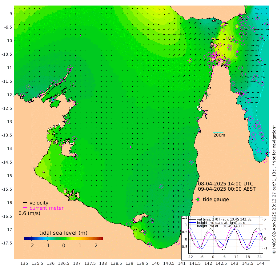 5cm/s 64T +3cm/s rms + 7cm/s -42T. ARA-GOC87 57m 28cm/s 15T +3cm/s rms + 2cm/s -2T. ARA-GOC87 60m 9cm/s 95T +2cm/s rms + 3cm/s 61T. ARA-GOC87 47m -7cm Daru -15cm Bobo Island -64cm Meer Island Barge -63cm Bramble Cay -35cm Unnamed Cay -36cm Pearce Cay -43cm Stephens Island -46cm Merrie England Shoals -15cm Mutacomal Reef -47cm Darnley Island Barge -72cm East Cay -24cm Yorke Island Barge -22cm Rennel Island -17cm Aureed Island 3cm Dungeness Reef 51cm Zagai Island 48cm Yam Island 50cm Dauan Island 52cm Saibai Island 44cm Phipi Reef 39cm Warrior Reef - West 57cm Mabuiag Island Barge -18cm Half Way Island 10cm Coconut Island -6cm Dugong Islet 29cm Poll Island 22cm Kirkcaldie Reef 61cm Suarji Island 29cm Sue Islet 7cm Hawkesbury Island 45cm Alert Patches 48cm Twin Island 25cm Badu Island 65cm St Pauls (Moa Island) 29cm Kubin (Moa Island) 47cm Ince Point 44cm Thursday Island 46cm Nardana Patches 23cm Turtle Head 35cm Round Island 5cm Goods Island 7cm Booby Island 10cm White Rocks Area 29cm Carpentaria 57cm Papou Point 33cm Bampfield Head 7cm Crab Island 5cm Red Wallis Island 10cm Packe Island 6cm Harrington Reef 18cm Herald Camp 26cm Sharp Point 17cm Red Island Point 50cm Possession Island 42cm Alpha Rock 29cm Frederick Point 2cm Wyborn Reef Light 13cm Tetley Island -48cm Triangle Reef 3cm Turtle Head Island -57cm Maclennan Cay -71cm Raine Island -35cm Mcsweeny Reef -45cm Collette Reef -60cm Shadwell Reef -52cm Hannibal Island -67cm Round Point 4cm Vrilya Point -63cm Cape Grenville -61cm Hicks Island -70cm Sir Charles Hardy Island -18cm Harvey Island -78cm Kay Reef -75cm Rocky Island -84cm Chapman Island -78cm Ham Reef -73cm Jubilee Reef -65cm Night Island -80cm Unnamed Reef No. 3 -78cm Morris Island -67cm 1st 3 Mile Opening -75cm Creech Reef -83cm Fife Island -99cm Eden Reef -83cm Stanley Island -90cm Normanby River -22cm Yabooma Island -26cm Hutchison River -20cm Elcho Island -19cm North West Crocodile Island -6cm Cape Wessel -17cm Stevens Island -17cm Guluwuru Island -27cm Hopeful Bay -6cm Auster Point -7cm Two Island Bay -38cm Cadell Strait -104cm Mallison Island -13cm Melville Bay (Gove Harbour) -8cm Truant Island -4cm Cape Arnhem 6cm Cape Grey 3cm Hawk Island 29cm Milner Bay (Groote Eylandt) 13cm Cape Beatrice 29cm West Island 35cm Centre Island -25cm Mornington Island -29cm West Wellesley Islands -40cm Bountiful Island -35cm Albert River Mouth -25cm Sweers Island -41cm Karumba -60cm Nassau River Offshore -63cm Christmas Creek -53cm Archer River -31cm Boyd Point -43cm Weipa (Humbug Point) -16cm Pennefather River -3cm Cullen Point