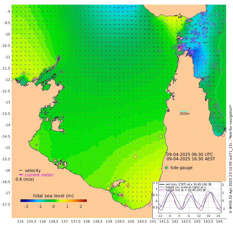 8cm/s -70T +3cm/s rms + 7cm/s -42T. ARA-GOC87 57m 13cm/s -70T +3cm/s rms + 2cm/s -2T. ARA-GOC87 60m 6cm/s -48T +2cm/s rms + 3cm/s 61T. ARA-GOC87 47m -126cm Daru -124cm Bobo Island -45cm Meer Island Barge -71cm Bramble Cay -107cm Unnamed Cay -113cm Pearce Cay -101cm Stephens Island -102cm Merrie England Shoals -127cm Mutacomal Reef -86cm Darnley Island Barge -53cm East Cay -106cm Yorke Island Barge -116cm Rennel Island -117cm Aureed Island -123cm Dungeness Reef -123cm Zagai Island -130cm Yam Island -78cm Dauan Island -78cm Saibai Island -78cm Phipi Reef -119cm Warrior Reef - West -82cm Mabuiag Island Barge -120cm Half Way Island -131cm Coconut Island -131cm Dugong Islet -133cm Poll Island -132cm Kirkcaldie Reef -138cm Suarji Island -123cm Sue Islet -52cm Hawkesbury Island -122cm Alert Patches -133cm Twin Island -49cm Badu Island -136cm St Pauls (Moa Island) -81cm Kubin (Moa Island) -108cm Ince Point -96cm Thursday Island -98cm Nardana Patches -70cm Turtle Head -69cm Round Island -41cm Goods Island -27cm Booby Island -40cm White Rocks Area -38cm Carpentaria -120cm Papou Point -56cm Bampfield Head -13cm Crab Island -36cm Red Wallis Island -68cm Packe Island -150cm Harrington Reef -57cm Herald Camp -37cm Sharp Point -60cm Red Island Point -104cm Possession Island -127cm Alpha Rock -139cm Frederick Point -138cm Wyborn Reef Light -141cm Tetley Island -53cm Triangle Reef -144cm Turtle Head Island -54cm Maclennan Cay -18cm Raine Island -102cm Mcsweeny Reef -83cm Collette Reef -42cm Shadwell Reef -88cm Hannibal Island -75cm Round Point -8cm Vrilya Point -66cm Cape Grenville -59cm Hicks Island -57cm Sir Charles Hardy Island -22cm Harvey Island -44cm Kay Reef -30cm Rocky Island -18cm Chapman Island -20cm Ham Reef -27cm Jubilee Reef -32cm Night Island -21cm Unnamed Reef No. 3 -31cm Morris Island -24cm 1st 3 Mile Opening -29cm Creech Reef -34cm Fife Island -21cm Eden Reef -28cm Stanley Island -38cm Normanby River 17cm Yabooma Island 15cm Hutchison River 25cm Elcho Island 25cm North West Crocodile Island -23cm Cape Wessel 5cm Stevens Island -23cm Guluwuru Island 18cm Hopeful Bay -9cm Auster Point -15cm Two Island Bay 3cm Cadell Strait -6cm Mallison Island -18cm Melville Bay (Gove Harbour) -27cm Truant Island -16cm Cape Arnhem -1cm Cape Grey 8cm Hawk Island 19cm Milner Bay (Groote Eylandt) 27cm Cape Beatrice 27cm West Island 31cm Centre Island 67cm Mornington Island 68cm West Wellesley Islands 87cm Bountiful Island 136cm Albert River Mouth 135cm Sweers Island 127cm Karumba 58cm Nassau River Offshore 37cm Christmas Creek 31cm Archer River 5cm Boyd Point 19cm Weipa (Humbug Point) 10cm Pennefather River -9cm Cullen Point