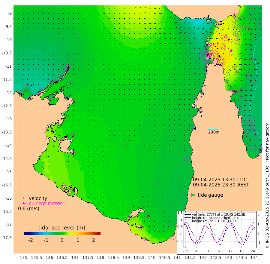 10cm/s 49T +3cm/s rms + 7cm/s -42T. ARA-GOC87 57m 25cm/s 15T +3cm/s rms + 2cm/s -2T. ARA-GOC87 60m 11cm/s 66T +2cm/s rms + 3cm/s 61T. ARA-GOC87 47m 51cm Daru 50cm Bobo Island -21cm Meer Island Barge -9cm Bramble Cay 23cm Unnamed Cay 29cm Pearce Cay 18cm Stephens Island 14cm Merrie England Shoals 42cm Mutacomal Reef 10cm Darnley Island Barge -23cm East Cay 33cm Yorke Island Barge 37cm Rennel Island 46cm Aureed Island 55cm Dungeness Reef 84cm Zagai Island 76cm Yam Island 49cm Dauan Island 51cm Saibai Island 55cm Phipi Reef 73cm Warrior Reef - West 45cm Mabuiag Island Barge 40cm Half Way Island 65cm Coconut Island 50cm Dugong Islet 71cm Poll Island 66cm Kirkcaldie Reef 94cm Suarji Island 66cm Sue Islet -40cm Hawkesbury Island 66cm Alert Patches 73cm Twin Island -12cm Badu Island 84cm St Pauls (Moa Island) 5cm Kubin (Moa Island) 51cm Ince Point 37cm Thursday Island 41cm Nardana Patches 6cm Turtle Head 1cm Round Island -33cm Goods Island -45cm Booby Island -34cm White Rocks Area -17cm Carpentaria 73cm Papou Point -21cm Bampfield Head -37cm Crab Island -40cm Red Wallis Island -16cm Packe Island 70cm Harrington Reef -31cm Herald Camp 32cm Sharp Point 4cm Red Island Point 51cm Possession Island 66cm Alpha Rock 70cm Frederick Point 56cm Wyborn Reef Light 62cm Tetley Island -12cm Triangle Reef 57cm Turtle Head Island -16cm Maclennan Cay -39cm Raine Island 23cm Mcsweeny Reef 9cm Collette Reef -22cm Shadwell Reef 7cm Hannibal Island -12cm Round Point -39cm Vrilya Point -14cm Cape Grenville -15cm Hicks Island -26cm Sir Charles Hardy Island -2cm Harvey Island -34cm Kay Reef -37cm Rocky Island -50cm Chapman Island -45cm Ham Reef -38cm Jubilee Reef -28cm Night Island -45cm Unnamed Reef No. 3 -38cm Morris Island -34cm 1st 3 Mile Opening -37cm Creech Reef -37cm Fife Island -55cm Eden Reef -43cm Stanley Island -43cm Normanby River -61cm Yabooma Island -56cm Hutchison River -52cm Elcho Island -52cm North West Crocodile Island -12cm Cape Wessel -40cm Stevens Island -5cm Guluwuru Island -51cm Hopeful Bay -21cm Auster Point -26cm Two Island Bay -48cm Cadell Strait -65cm Mallison Island -6cm Melville Bay (Gove Harbour) -2cm Truant Island 6cm Cape Arnhem 17cm Cape Grey 14cm Hawk Island 39cm Milner Bay (Groote Eylandt) 27cm Cape Beatrice 47cm West Island 52cm Centre Island 10cm Mornington Island 8cm West Wellesley Islands -6cm Bountiful Island -2cm Albert River Mouth 9cm Sweers Island -9cm Karumba -31cm Nassau River Offshore -46cm Christmas Creek -59cm Archer River -45cm Boyd Point -62cm Weipa (Humbug Point) -38cm Pennefather River -42cm Cullen Point