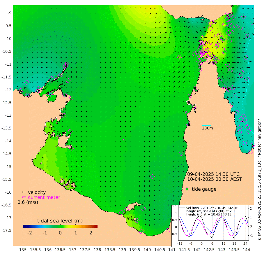 5cm/s 42T +3cm/s rms + 7cm/s -42T. ARA-GOC87 57m 24cm/s 18T +3cm/s rms + 2cm/s -2T. ARA-GOC87 60m 6cm/s 85T +2cm/s rms + 3cm/s 61T. ARA-GOC87 47m -2cm Daru -9cm Bobo Island -58cm Meer Island Barge -60cm Bramble Cay -32cm Unnamed Cay -31cm Pearce Cay -38cm Stephens Island -45cm Merrie England Shoals -14cm Mutacomal Reef -39cm Darnley Island Barge -68cm East Cay -17cm Yorke Island Barge -18cm Rennel Island -8cm Aureed Island 10cm Dungeness Reef 60cm Zagai Island 54cm Yam Island 61cm Dauan Island 62cm Saibai Island 54cm Phipi Reef 49cm Warrior Reef - West 58cm Mabuiag Island Barge -13cm Half Way Island 15cm Coconut Island 0cm Dugong Islet 34cm Poll Island 27cm Kirkcaldie Reef 68cm Suarji Island 35cm Sue Islet -8cm Hawkesbury Island 47cm Alert Patches 51cm Twin Island 17cm Badu Island 69cm St Pauls (Moa Island) 22cm Kubin (Moa Island) 47cm Ince Point 42cm Thursday Island 45cm Nardana Patches 19cm Turtle Head 23cm Round Island -4cm Goods Island -3cm Booby Island -2cm White Rocks Area 25cm Carpentaria 58cm Papou Point 18cm Bampfield Head -2cm Crab Island -4cm Red Wallis Island 3cm Packe Island 11cm Harrington Reef 7cm Herald Camp 28cm Sharp Point 12cm Red Island Point 46cm Possession Island 43cm Alpha Rock 32cm Frederick Point 3cm Wyborn Reef Light 13cm Tetley Island -44cm Triangle Reef 2cm Turtle Head Island -51cm Maclennan Cay -67cm Raine Island -30cm Mcsweeny Reef -41cm Collette Reef -56cm Shadwell Reef -48cm Hannibal Island -66cm Round Point -3cm Vrilya Point -60cm Cape Grenville -58cm Hicks Island -63cm Sir Charles Hardy Island -16cm Harvey Island -76cm Kay Reef -71cm Rocky Island -80cm Chapman Island -73cm Ham Reef -69cm Jubilee Reef -60cm Night Island -76cm Unnamed Reef No. 3 -74cm Morris Island -62cm 1st 3 Mile Opening -69cm Creech Reef -78cm Fife Island -94cm Eden Reef -79cm Stanley Island -87cm Normanby River -66cm Yabooma Island -70cm Hutchison River -61cm Elcho Island -60cm North West Crocodile Island -27cm Cape Wessel -54cm Stevens Island -25cm Guluwuru Island -62cm Hopeful Bay -34cm Auster Point -35cm Two Island Bay -68cm Cadell Strait -97cm Mallison Island -25cm Melville Bay (Gove Harbour) -21cm Truant Island -8cm Cape Arnhem 4cm Cape Grey 0cm Hawk Island 30cm Milner Bay (Groote Eylandt) 16cm Cape Beatrice 38cm West Island 45cm Centre Island -10cm Mornington Island -12cm West Wellesley Islands -23cm Bountiful Island -22cm Albert River Mouth -15cm Sweers Island -30cm Karumba -44cm Nassau River Offshore -49cm Christmas Creek -48cm Archer River -27cm Boyd Point -40cm Weipa (Humbug Point) -18cm Pennefather River -7cm Cullen Point