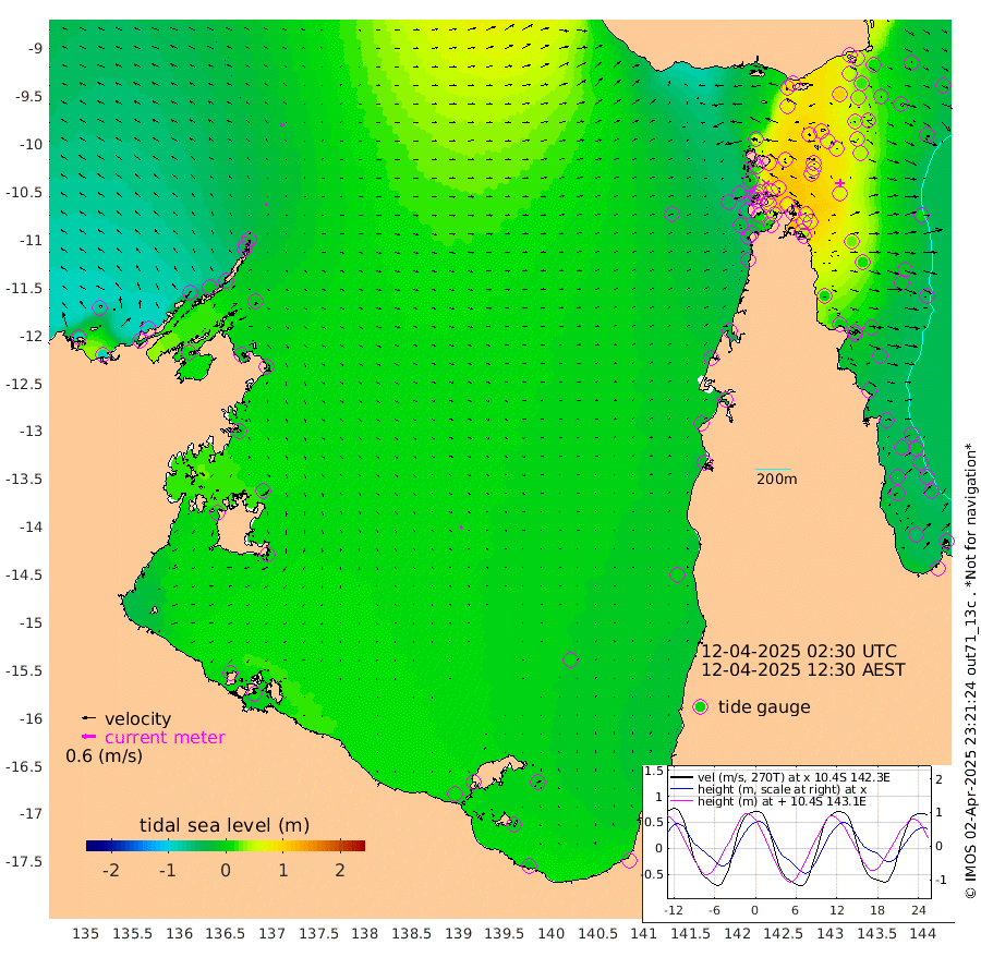 8cm/s -43T +3cm/s rms + 7cm/s -42T. ARA-GOC87 57m 13cm/s 172T +3cm/s rms + 2cm/s -2T. ARA-GOC87 60m 13cm/s -53T +2cm/s rms + 3cm/s 61T. ARA-GOC87 47m 53cm Daru 51cm Bobo Island -17cm Meer Island Barge -5cm Bramble Cay 20cm Unnamed Cay 36cm Pearce Cay 17cm Stephens Island 12cm Merrie England Shoals 46cm Mutacomal Reef 13cm Darnley Island Barge -19cm East Cay 36cm Yorke Island Barge 36cm Rennel Island 49cm Aureed Island 56cm Dungeness Reef 88cm Zagai Island 85cm Yam Island 91cm Dauan Island 88cm Saibai Island 79cm Phipi Reef 98cm Warrior Reef - West 56cm Mabuiag Island Barge 39cm Half Way Island 57cm Coconut Island 53cm Dugong Islet 74cm Poll Island 62cm Kirkcaldie Reef 81cm Suarji Island 70cm Sue Islet -12cm Hawkesbury Island 61cm Alert Patches 72cm Twin Island -4cm Badu Island 84cm St Pauls (Moa Island) 21cm Kubin (Moa Island) 54cm Ince Point 39cm Thursday Island 44cm Nardana Patches 14cm Turtle Head 0cm Round Island -25cm Goods Island -44cm Booby Island -40cm White Rocks Area -31cm Carpentaria 66cm Papou Point -50cm Bampfield Head -39cm Crab Island -26cm Red Wallis Island 8cm Packe Island 60cm Harrington Reef -14cm Herald Camp 34cm Sharp Point 8cm Red Island Point 38cm Possession Island 70cm Alpha Rock 69cm Frederick Point 53cm Wyborn Reef Light 62cm Tetley Island 1cm Triangle Reef 42cm Turtle Head Island -12cm Maclennan Cay -39cm Raine Island 23cm Mcsweeny Reef 10cm Collette Reef -17cm Shadwell Reef 7cm Hannibal Island -6cm Round Point -40cm Vrilya Point -11cm Cape Grenville -15cm Hicks Island -14cm Sir Charles Hardy Island -2cm Harvey Island -31cm Kay Reef -32cm Rocky Island -39cm Chapman Island -35cm Ham Reef -33cm Jubilee Reef -22cm Night Island -35cm Unnamed Reef No. 3 -35cm Morris Island -41cm 1st 3 Mile Opening -34cm Creech Reef -25cm Fife Island -46cm Eden Reef -40cm Stanley Island -37cm Normanby River -87cm Yabooma Island -84cm Hutchison River -78cm Elcho Island -71cm North West Crocodile Island -27cm Cape Wessel -62cm Stevens Island -11cm Guluwuru Island -65cm Hopeful Bay -47cm Auster Point -34cm Two Island Bay -44cm Cadell Strait 14cm Mallison Island -15cm Melville Bay (Gove Harbour) -14cm Truant Island -3cm Cape Arnhem -10cm Cape Grey 4cm Hawk Island -5cm Milner Bay (Groote Eylandt) 2cm Cape Beatrice 12cm West Island 9cm Centre Island 14cm Mornington Island 8cm West Wellesley Islands -8cm Bountiful Island -8cm Albert River Mouth -13cm Sweers Island -3cm Karumba 6cm Nassau River Offshore -2cm Christmas Creek -29cm Archer River -20cm Boyd Point -35cm Weipa (Humbug Point) -31cm Pennefather River -26cm Cullen Point