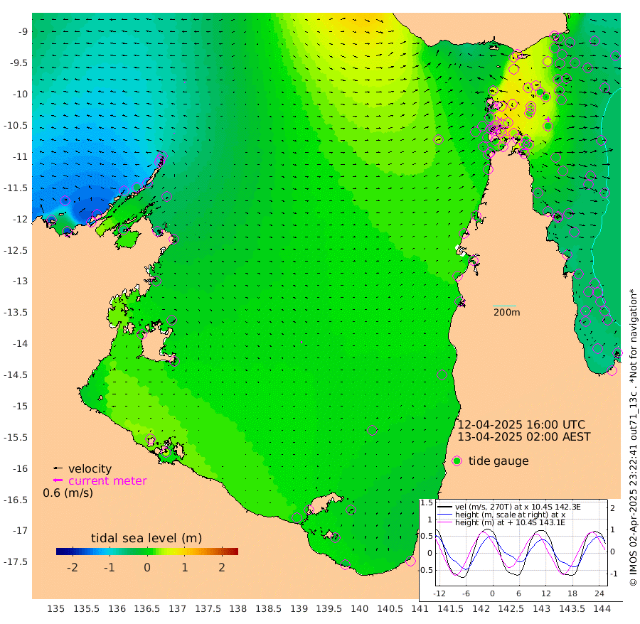 3cm/s -26T +3cm/s rms + 7cm/s -42T. ARA-GOC87 57m 9cm/s 71T +3cm/s rms + 2cm/s -2T. ARA-GOC87 60m 3cm/s -78T +2cm/s rms + 3cm/s 61T. ARA-GOC87 47m -3cm Daru -3cm Bobo Island -33cm Meer Island Barge -44cm Bramble Cay -28cm Unnamed Cay -18cm Pearce Cay -27cm Stephens Island -41cm Merrie England Shoals -18cm Mutacomal Reef -20cm Darnley Island Barge -42cm East Cay -4cm Yorke Island Barge -16cm Rennel Island 6cm Aureed Island 12cm Dungeness Reef 56cm Zagai Island 45cm Yam Island 67cm Dauan Island 75cm Saibai Island 58cm Phipi Reef 53cm Warrior Reef - West 53cm Mabuiag Island Barge -11cm Half Way Island 13cm Coconut Island 1cm Dugong Islet 27cm Poll Island 22cm Kirkcaldie Reef 60cm Suarji Island 36cm Sue Islet -12cm Hawkesbury Island 40cm Alert Patches 42cm Twin Island 14cm Badu Island 56cm St Pauls (Moa Island) 11cm Kubin (Moa Island) 38cm Ince Point 35cm Thursday Island 36cm Nardana Patches 18cm Turtle Head 5cm Round Island -2cm Goods Island 1cm Booby Island -5cm White Rocks Area 37cm Carpentaria 45cm Papou Point 6cm Bampfield Head 0cm Crab Island 0cm Red Wallis Island 1cm Packe Island 7cm Harrington Reef 1cm Herald Camp 25cm Sharp Point 15cm Red Island Point 32cm Possession Island 30cm Alpha Rock 26cm Frederick Point -7cm Wyborn Reef Light 1cm Tetley Island -22cm Triangle Reef -9cm Turtle Head Island -28cm Maclennan Cay -40cm Raine Island -21cm Mcsweeny Reef -27cm Collette Reef -34cm Shadwell Reef -34cm Hannibal Island -52cm Round Point 6cm Vrilya Point -42cm Cape Grenville -39cm Hicks Island -33cm Sir Charles Hardy Island -11cm Harvey Island -51cm Kay Reef -43cm Rocky Island -45cm Chapman Island -40cm Ham Reef -40cm Jubilee Reef -36cm Night Island -42cm Unnamed Reef No. 3 -47cm Morris Island -36cm 1st 3 Mile Opening -39cm Creech Reef -49cm Fife Island -57cm Eden Reef -50cm Stanley Island -59cm Normanby River -159cm Yabooma Island -172cm Hutchison River -153cm Elcho Island -151cm North West Crocodile Island -74cm Cape Wessel -139cm Stevens Island -51cm Guluwuru Island -132cm Hopeful Bay -95cm Auster Point -101cm Two Island Bay -133cm Cadell Strait -56cm Mallison Island -57cm Melville Bay (Gove Harbour) -55cm Truant Island -26cm Cape Arnhem -11cm Cape Grey -15cm Hawk Island 10cm Milner Bay (Groote Eylandt) 4cm Cape Beatrice 35cm West Island 42cm Centre Island 10cm Mornington Island 12cm West Wellesley Islands 1cm Bountiful Island -24cm Albert River Mouth -19cm Sweers Island -26cm Karumba -5cm Nassau River Offshore -2cm Christmas Creek -10cm Archer River 4cm Boyd Point -8cm Weipa (Humbug Point) -1cm Pennefather River 7cm Cullen Point