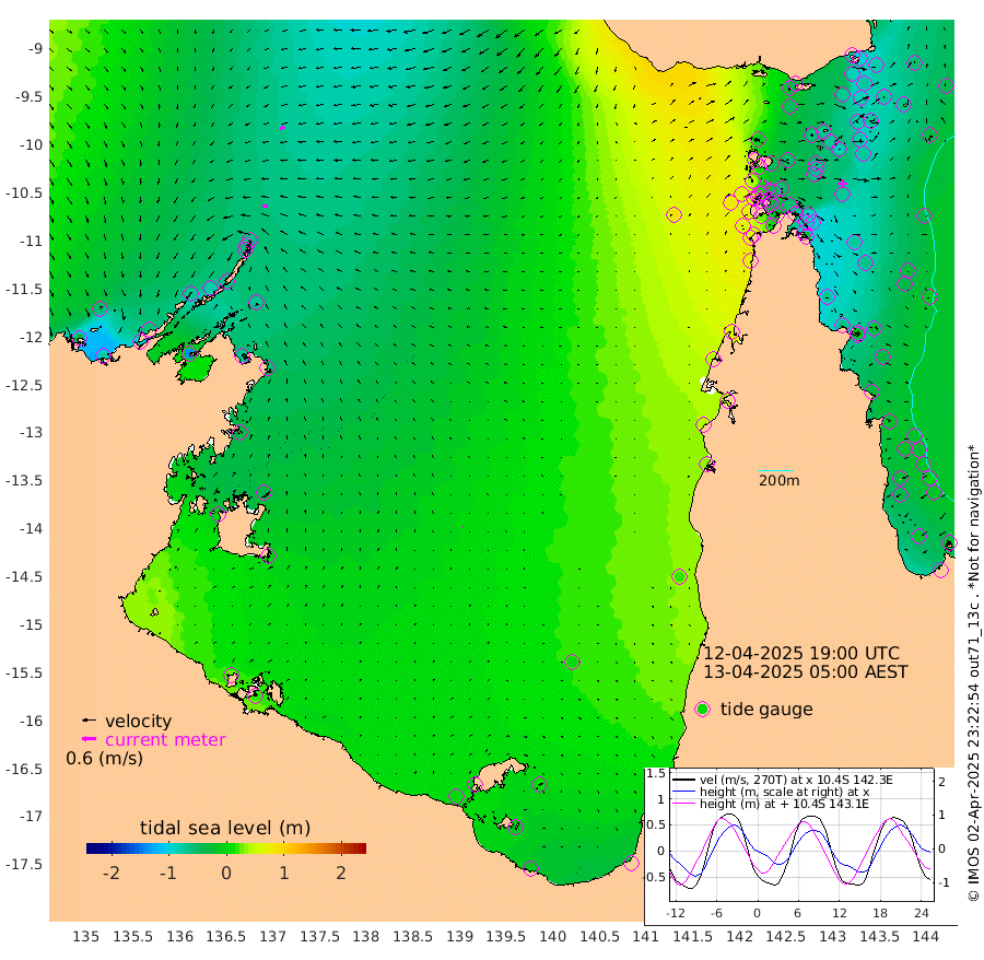21cm/s -93T +3cm/s rms + 7cm/s -42T. ARA-GOC87 57m 3cm/s 90T +3cm/s rms + 2cm/s -2T. ARA-GOC87 60m 22cm/s -112T +2cm/s rms + 3cm/s 61T. ARA-GOC87 47m -88cm Daru -96cm Bobo Island -32cm Meer Island Barge -60cm Bramble Cay -73cm Unnamed Cay -87cm Pearce Cay -70cm Stephens Island -76cm Merrie England Shoals -88cm Mutacomal Reef -60cm Darnley Island Barge -42cm East Cay -71cm Yorke Island Barge -78cm Rennel Island -82cm Aureed Island -73cm Dungeness Reef -71cm Zagai Island -61cm Yam Island -31cm Dauan Island -32cm Saibai Island -47cm Phipi Reef -73cm Warrior Reef - West -11cm Mabuiag Island Barge -71cm Half Way Island -87cm Coconut Island -71cm Dugong Islet -73cm Poll Island -66cm Kirkcaldie Reef -57cm Suarji Island -63cm Sue Islet 41cm Hawkesbury Island -44cm Alert Patches -53cm Twin Island 29cm Badu Island -48cm St Pauls (Moa Island) 14cm Kubin (Moa Island) -22cm Ince Point -3cm Thursday Island -8cm Nardana Patches 15cm Turtle Head 24cm Round Island 51cm Goods Island 81cm Booby Island 67cm White Rocks Area 88cm Carpentaria -43cm Papou Point 72cm Bampfield Head 63cm Crab Island 65cm Red Wallis Island 25cm Packe Island -87cm Harrington Reef 61cm Herald Camp -16cm Sharp Point 7cm Red Island Point -21cm Possession Island -54cm Alpha Rock -71cm Frederick Point -92cm Wyborn Reef Light -91cm Tetley Island -39cm Triangle Reef -84cm Turtle Head Island -29cm Maclennan Cay -15cm Raine Island -70cm Mcsweeny Reef -63cm Collette Reef -33cm Shadwell Reef -69cm Hannibal Island -65cm Round Point 70cm Vrilya Point -46cm Cape Grenville -41cm Hicks Island -29cm Sir Charles Hardy Island -14cm Harvey Island -34cm Kay Reef -23cm Rocky Island -20cm Chapman Island -15cm Ham Reef -19cm Jubilee Reef -24cm Night Island -19cm Unnamed Reef No. 3 -24cm Morris Island -7cm 1st 3 Mile Opening -17cm Creech Reef -35cm Fife Island -22cm Eden Reef -19cm Stanley Island -30cm Normanby River -43cm Yabooma Island -76cm Hutchison River -58cm Elcho Island -54cm North West Crocodile Island -62cm Cape Wessel -74cm Stevens Island -79cm Guluwuru Island -60cm Hopeful Bay -58cm Auster Point -58cm Two Island Bay -95cm Cadell Strait -139cm Mallison Island -71cm Melville Bay (Gove Harbour) -75cm Truant Island -53cm Cape Arnhem -31cm Cape Grey -37cm Hawk Island -5cm Milner Bay (Groote Eylandt) -4cm Cape Beatrice 23cm West Island 22cm Centre Island -8cm Mornington Island 4cm West Wellesley Islands 14cm Bountiful Island -8cm Albert River Mouth -14cm Sweers Island -14cm Karumba 6cm Nassau River Offshore 18cm Christmas Creek 33cm Archer River 43cm Boyd Point 52cm Weipa (Humbug Point) 39cm Pennefather River 65cm Cullen Point