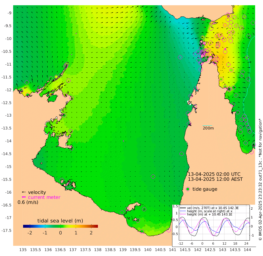 8cm/s 29T +3cm/s rms + 7cm/s -42T. ARA-GOC87 57m 11cm/s -177T +3cm/s rms + 2cm/s -2T. ARA-GOC87 60m 10cm/s 2T +2cm/s rms + 3cm/s 61T. ARA-GOC87 47m 74cm Daru 74cm Bobo Island 4cm Meer Island Barge 27cm Bramble Cay 49cm Unnamed Cay 60cm Pearce Cay 43cm Stephens Island 45cm Merrie England Shoals 73cm Mutacomal Reef 36cm Darnley Island Barge 8cm East Cay 55cm Yorke Island Barge 58cm Rennel Island 68cm Aureed Island 67cm Dungeness Reef 90cm Zagai Island 84cm Yam Island 76cm Dauan Island 76cm Saibai Island 65cm Phipi Reef 98cm Warrior Reef - West 39cm Mabuiag Island Barge 56cm Half Way Island 73cm Coconut Island 66cm Dugong Islet 79cm Poll Island 65cm Kirkcaldie Reef 76cm Suarji Island 72cm Sue Islet -42cm Hawkesbury Island 52cm Alert Patches 65cm Twin Island -26cm Badu Island 72cm St Pauls (Moa Island) -1cm Kubin (Moa Island) 39cm Ince Point 18cm Thursday Island 25cm Nardana Patches -7cm Turtle Head -25cm Round Island -50cm Goods Island -79cm Booby Island -66cm White Rocks Area -71cm Carpentaria 56cm Papou Point -82cm Bampfield Head -74cm Crab Island -58cm Red Wallis Island -14cm Packe Island 74cm Harrington Reef -50cm Herald Camp 28cm Sharp Point -14cm Red Island Point 20cm Possession Island 71cm Alpha Rock 72cm Frederick Point 78cm Wyborn Reef Light 82cm Tetley Island 20cm Triangle Reef 56cm Turtle Head Island 7cm Maclennan Cay -18cm Raine Island 47cm Mcsweeny Reef 35cm Collette Reef 5cm Shadwell Reef 37cm Hannibal Island 26cm Round Point -80cm Vrilya Point 15cm Cape Grenville 9cm Hicks Island 12cm Sir Charles Hardy Island 5cm Harvey Island -1cm Kay Reef -8cm Rocky Island -13cm Chapman Island -13cm Ham Reef -10cm Jubilee Reef -2cm Night Island -12cm Unnamed Reef No. 3 -10cm Morris Island -23cm 1st 3 Mile Opening -13cm Creech Reef 1cm Fife Island -17cm Eden Reef -15cm Stanley Island -8cm Normanby River -19cm Yabooma Island -1cm Hutchison River -7cm Elcho Island -5cm North West Crocodile Island 29cm Cape Wessel 12cm Stevens Island 47cm Guluwuru Island 1cm Hopeful Bay 8cm Auster Point 17cm Two Island Bay 28cm Cadell Strait 113cm Mallison Island 38cm Melville Bay (Gove Harbour) 41cm Truant Island 33cm Cape Arnhem 15cm Cape Grey 24cm Hawk Island 5cm Milner Bay (Groote Eylandt) 10cm Cape Beatrice 3cm West Island -3cm Centre Island 15cm Mornington Island 11cm West Wellesley Islands 4cm Bountiful Island 14cm Albert River Mouth 6cm Sweers Island 9cm Karumba 4cm Nassau River Offshore -10cm Christmas Creek -43cm Archer River -40cm Boyd Point -52cm Weipa (Humbug Point) -60cm Pennefather River -60cm Cullen Point