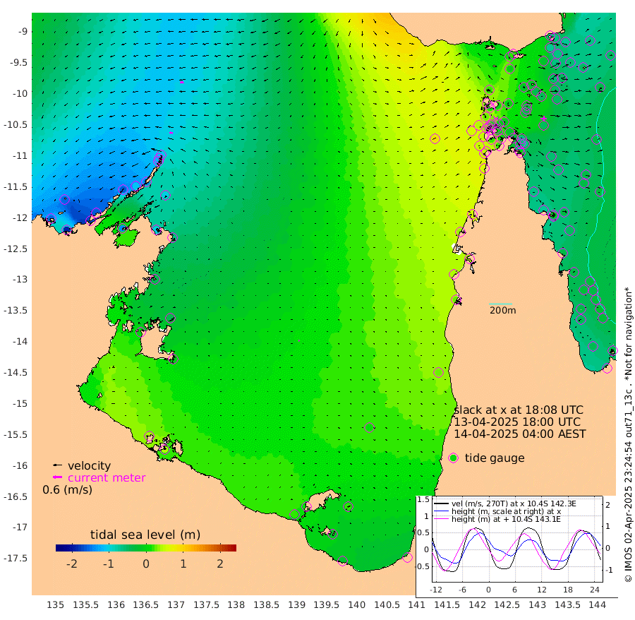 21cm/s -85T +3cm/s rms + 7cm/s -42T. ARA-GOC87 57m 8cm/s 119T +3cm/s rms + 2cm/s -2T. ARA-GOC87 60m 23cm/s -101T +2cm/s rms + 3cm/s 61T. ARA-GOC87 47m -62cm Daru -65cm Bobo Island -36cm Meer Island Barge -62cm Bramble Cay -65cm Unnamed Cay -65cm Pearce Cay -59cm Stephens Island -73cm Merrie England Shoals -70cm Mutacomal Reef -47cm Darnley Island Barge -46cm East Cay -48cm Yorke Island Barge -60cm Rennel Island -48cm Aureed Island -42cm Dungeness Reef -21cm Zagai Island -20cm Yam Island 13cm Dauan Island 19cm Saibai Island -1cm Phipi Reef -22cm Warrior Reef - West 19cm Mabuiag Island Barge -52cm Half Way Island -52cm Coconut Island -45cm Dugong Islet -35cm Poll Island -32cm Kirkcaldie Reef -7cm Suarji Island -23cm Sue Islet 23cm Hawkesbury Island -8cm Alert Patches -13cm Twin Island 24cm Badu Island -4cm St Pauls (Moa Island) 14cm Kubin (Moa Island) 5cm Ince Point 17cm Thursday Island 13cm Nardana Patches 20cm Turtle Head 17cm Round Island 34cm Goods Island 57cm Booby Island 43cm White Rocks Area 85cm Carpentaria -7cm Papou Point 50cm Bampfield Head 45cm Crab Island 48cm Red Wallis Island 19cm Packe Island -53cm Harrington Reef 44cm Herald Camp 3cm Sharp Point 17cm Red Island Point 3cm Possession Island -22cm Alpha Rock -33cm Frederick Point -69cm Wyborn Reef Light -63cm Tetley Island -35cm Triangle Reef -63cm Turtle Head Island -30cm Maclennan Cay -28cm Raine Island -56cm Mcsweeny Reef -54cm Collette Reef -37cm Shadwell Reef -63cm Hannibal Island -68cm Round Point 57cm Vrilya Point -50cm Cape Grenville -45cm Hicks Island -34cm Sir Charles Hardy Island -14cm Harvey Island -46cm Kay Reef -33cm Rocky Island -31cm Chapman Island -26cm Ham Reef -30cm Jubilee Reef -31cm Night Island -29cm Unnamed Reef No. 3 -37cm Morris Island -21cm 1st 3 Mile Opening -27cm Creech Reef -43cm Fife Island -40cm Eden Reef -35cm Stanley Island -46cm Normanby River -155cm Yabooma Island -190cm Hutchison River -162cm Elcho Island -156cm North West Crocodile Island -107cm Cape Wessel -162cm Stevens Island -106cm Guluwuru Island -143cm Hopeful Bay -119cm Auster Point -123cm Two Island Bay -171cm Cadell Strait -141cm Mallison Island -102cm Melville Bay (Gove Harbour) -105cm Truant Island -65cm Cape Arnhem -38cm Cape Grey -40cm Hawk Island -5cm Milner Bay (Groote Eylandt) -3cm Cape Beatrice 39cm West Island 43cm Centre Island 10cm Mornington Island 19cm West Wellesley Islands 16cm Bountiful Island -20cm Albert River Mouth -18cm Sweers Island -18cm Karumba 15cm Nassau River Offshore 25cm Christmas Creek 29cm Archer River 41cm Boyd Point 40cm Weipa (Humbug Point) 34cm Pennefather River 54cm Cullen Point