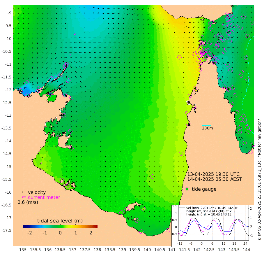 27cm/s -91T +3cm/s rms + 7cm/s -42T. ARA-GOC87 57m 4cm/s 158T +3cm/s rms + 2cm/s -2T. ARA-GOC87 60m 28cm/s -107T +2cm/s rms + 3cm/s 61T. ARA-GOC87 47m -71cm Daru -77cm Bobo Island -18cm Meer Island Barge -43cm Bramble Cay -56cm Unnamed Cay -65cm Pearce Cay -50cm Stephens Island -58cm Merrie England Shoals -71cm Mutacomal Reef -43cm Darnley Island Barge -24cm East Cay -54cm Yorke Island Barge -58cm Rennel Island -62cm Aureed Island -55cm Dungeness Reef -64cm Zagai Island -51cm Yam Island -31cm Dauan Island -33cm Saibai Island -40cm Phipi Reef -64cm Warrior Reef - West -9cm Mabuiag Island Barge -52cm Half Way Island -71cm Coconut Island -52cm Dugong Islet -59cm Poll Island -49cm Kirkcaldie Reef -44cm Suarji Island -52cm Sue Islet 48cm Hawkesbury Island -32cm Alert Patches -41cm Twin Island 32cm Badu Island -39cm St Pauls (Moa Island) 20cm Kubin (Moa Island) -13cm Ince Point 5cm Thursday Island -1cm Nardana Patches 24cm Turtle Head 27cm Round Island 58cm Goods Island 85cm Booby Island 73cm White Rocks Area 86cm Carpentaria -35cm Papou Point 72cm Bampfield Head 66cm Crab Island 70cm Red Wallis Island 32cm Packe Island -66cm Harrington Reef 64cm Herald Camp -15cm Sharp Point 19cm Red Island Point -12cm Possession Island -46cm Alpha Rock -55cm Frederick Point -77cm Wyborn Reef Light -77cm Tetley Island -27cm Triangle Reef -66cm Turtle Head Island -13cm Maclennan Cay -2cm Raine Island -52cm Mcsweeny Reef -46cm Collette Reef -21cm Shadwell Reef -51cm Hannibal Island -46cm Round Point 72cm Vrilya Point -29cm Cape Grenville -25cm Hicks Island -14cm Sir Charles Hardy Island -8cm Harvey Island -18cm Kay Reef -8cm Rocky Island -7cm Chapman Island -2cm Ham Reef -6cm Jubilee Reef -11cm Night Island -5cm Unnamed Reef No. 3 -9cm Morris Island 5cm 1st 3 Mile Opening -3cm Creech Reef -18cm Fife Island -6cm Eden Reef -4cm Stanley Island -12cm Normanby River -57cm Yabooma Island -91cm Hutchison River -73cm Elcho Island -67cm North West Crocodile Island -77cm Cape Wessel -91cm Stevens Island -95cm Guluwuru Island -75cm Hopeful Bay -72cm Auster Point -73cm Two Island Bay -109cm Cadell Strait -175cm Mallison Island -84cm Melville Bay (Gove Harbour) -90cm Truant Island -63cm Cape Arnhem -35cm Cape Grey -40cm Hawk Island -8cm Milner Bay (Groote Eylandt) -2cm Cape Beatrice 29cm West Island 27cm Centre Island 7cm Mornington Island 19cm West Wellesley Islands 32cm Bountiful Island 4cm Albert River Mouth -1cm Sweers Island 4cm Karumba 24cm Nassau River Offshore 34cm Christmas Creek 44cm Archer River 49cm Boyd Point 60cm Weipa (Humbug Point) 44cm Pennefather River 67cm Cullen Point