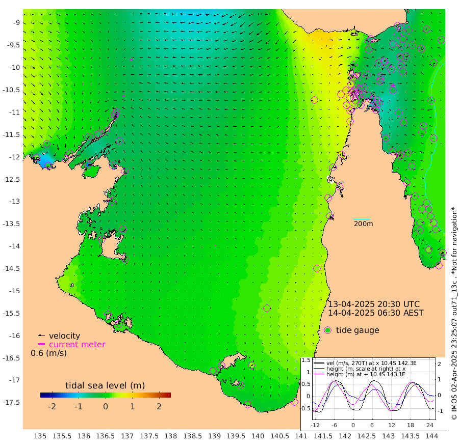 24cm/s -96T +3cm/s rms + 7cm/s -42T. ARA-GOC87 57m 5cm/s -153T +3cm/s rms + 2cm/s -2T. ARA-GOC87 60m 24cm/s -111T +2cm/s rms + 3cm/s 61T. ARA-GOC87 47m -48cm Daru -55cm Bobo Island 4cm Meer Island Barge -10cm Bramble Cay -25cm Unnamed Cay -39cm Pearce Cay -22cm Stephens Island -23cm Merrie England Shoals -42cm Mutacomal Reef -20cm Darnley Island Barge 3cm East Cay -35cm Yorke Island Barge -32cm Rennel Island -46cm Aureed Island -39cm Dungeness Reef -65cm Zagai Island -49cm Yam Island -42cm Dauan Island -49cm Saibai Island -45cm Phipi Reef -64cm Warrior Reef - West -18cm Mabuiag Island Barge -29cm Half Way Island -54cm Coconut Island -32cm Dugong Islet -49cm Poll Island -38cm Kirkcaldie Reef -46cm Suarji Island -48cm Sue Islet 54cm Hawkesbury Island -30cm Alert Patches -39cm Twin Island 34cm Badu Island -42cm St Pauls (Moa Island) 24cm Kubin (Moa Island) -14cm Ince Point 3cm Thursday Island -3cm Nardana Patches 26cm Turtle Head 30cm Round Island 62cm Goods Island 82cm Booby Island 77cm White Rocks Area 64cm Carpentaria -36cm Papou Point 69cm Bampfield Head 62cm Crab Island 68cm Red Wallis Island 37cm Packe Island -46cm Harrington Reef 63cm Herald Camp -20cm Sharp Point 19cm Red Island Point -13cm Possession Island -41cm Alpha Rock -46cm Frederick Point -52cm Wyborn Reef Light -56cm Tetley Island -9cm Triangle Reef -41cm Turtle Head Island 8cm Maclennan Cay 20cm Raine Island -26cm Mcsweeny Reef -21cm Collette Reef 2cm Shadwell Reef -21cm Hannibal Island -11cm Round Point 61cm Vrilya Point 0cm Cape Grenville 2cm Hicks Island 11cm Sir Charles Hardy Island 0cm Harvey Island 12cm Kay Reef 16cm Rocky Island 17cm Chapman Island 18cm Ham Reef 17cm Jubilee Reef 10cm Night Island 17cm Unnamed Reef No. 3 18cm Morris Island 27cm 1st 3 Mile Opening 19cm Creech Reef 9cm Fife Island 23cm Eden Reef 23cm Stanley Island 20cm Normanby River 25cm Yabooma Island 3cm Hutchison River 7cm Elcho Island 12cm North West Crocodile Island -34cm Cape Wessel -18cm Stevens Island -57cm Guluwuru Island -9cm Hopeful Bay -20cm Auster Point -21cm Two Island Bay -37cm Cadell Strait -147cm Mallison Island -46cm Melville Bay (Gove Harbour) -52cm Truant Island -42cm Cape Arnhem -22cm Cape Grey -29cm Hawk Island -8cm Milner Bay (Groote Eylandt) -1cm Cape Beatrice 14cm West Island 8cm Centre Island 4cm Mornington Island 15cm West Wellesley Islands 40cm Bountiful Island 22cm Albert River Mouth 12cm Sweers Island 19cm Karumba 27cm Nassau River Offshore 34cm Christmas Creek 44cm Archer River 43cm Boyd Point 60cm Weipa (Humbug Point) 37cm Pennefather River 56cm Cullen Point