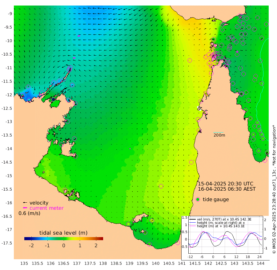36cm/s -90T +3cm/s rms + 7cm/s -42T. ARA-GOC87 57m 11cm/s -176T +3cm/s rms + 2cm/s -2T. ARA-GOC87 60m 38cm/s -101T +2cm/s rms + 3cm/s 61T. ARA-GOC87 47m -34cm Daru -37cm Bobo Island 4cm Meer Island Barge -11cm Bramble Cay -22cm Unnamed Cay -22cm Pearce Cay -13cm Stephens Island -22cm Merrie England Shoals -33cm Mutacomal Reef -12cm Darnley Island Barge 6cm East Cay -22cm Yorke Island Barge -19cm Rennel Island -23cm Aureed Island -18cm Dungeness Reef -41cm Zagai Island -26cm Yam Island -18cm Dauan Island -23cm Saibai Island -14cm Phipi Reef -35cm Warrior Reef - West 3cm Mabuiag Island Barge -16cm Half Way Island -33cm Coconut Island -15cm Dugong Islet -26cm Poll Island -15cm Kirkcaldie Reef -11cm Suarji Island -25cm Sue Islet 67cm Hawkesbury Island 0cm Alert Patches -10cm Twin Island 46cm Badu Island -12cm St Pauls (Moa Island) 38cm Kubin (Moa Island) 10cm Ince Point 26cm Thursday Island 20cm Nardana Patches 44cm Turtle Head 44cm Round Island 73cm Goods Island 93cm Booby Island 86cm White Rocks Area 81cm Carpentaria -11cm Papou Point 80cm Bampfield Head 72cm Crab Island 82cm Red Wallis Island 54cm Packe Island -22cm Harrington Reef 81cm Herald Camp -8cm Sharp Point 44cm Red Island Point 14cm Possession Island -22cm Alpha Rock -19cm Frederick Point -41cm Wyborn Reef Light -42cm Tetley Island -2cm Triangle Reef -27cm Turtle Head Island 12cm Maclennan Cay 16cm Raine Island -17cm Mcsweeny Reef -14cm Collette Reef 1cm Shadwell Reef -17cm Hannibal Island -10cm Round Point 74cm Vrilya Point 2cm Cape Grenville 5cm Hicks Island 12cm Sir Charles Hardy Island 1cm Harvey Island 9cm Kay Reef 15cm Rocky Island 17cm Chapman Island 18cm Ham Reef 14cm Jubilee Reef 11cm Night Island 18cm Unnamed Reef No. 3 15cm Morris Island 22cm 1st 3 Mile Opening 19cm Creech Reef 11cm Fife Island 17cm Eden Reef 19cm Stanley Island 17cm Normanby River -70cm Yabooma Island -103cm Hutchison River -87cm Elcho Island -77cm North West Crocodile Island -93cm Cape Wessel -108cm Stevens Island -117cm Guluwuru Island -87cm Hopeful Bay -86cm Auster Point -90cm Two Island Bay -123cm Cadell Strait -224cm Mallison Island -99cm Melville Bay (Gove Harbour) -107cm Truant Island -75cm Cape Arnhem -43cm Cape Grey -41cm Hawk Island -16cm Milner Bay (Groote Eylandt) -3cm Cape Beatrice 32cm West Island 29cm Centre Island 28cm Mornington Island 36cm West Wellesley Islands 57cm Bountiful Island 18cm Albert River Mouth 19cm Sweers Island 31cm Karumba 52cm Nassau River Offshore 60cm Christmas Creek 62cm Archer River 60cm Boyd Point 73cm Weipa (Humbug Point) 51cm Pennefather River 71cm Cullen Point