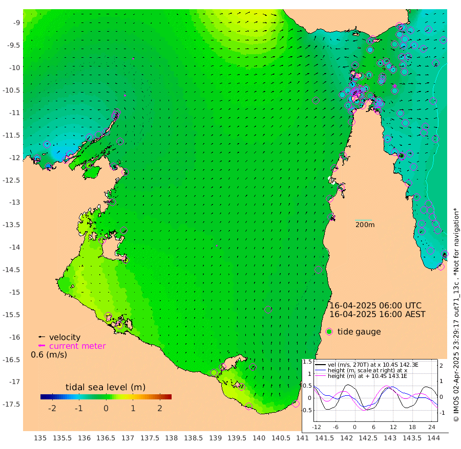 15cm/s -24T +3cm/s rms + 7cm/s -42T. ARA-GOC87 57m 14cm/s 11T +3cm/s rms + 2cm/s -2T. ARA-GOC87 60m 13cm/s -25T +2cm/s rms + 3cm/s 61T. ARA-GOC87 47m -96cm Daru -91cm Bobo Island -71cm Meer Island Barge -87cm Bramble Cay -97cm Unnamed Cay -98cm Pearce Cay -92cm Stephens Island -95cm Merrie England Shoals -94cm Mutacomal Reef -82cm Darnley Island Barge -80cm East Cay -84cm Yorke Island Barge -94cm Rennel Island -83cm Aureed Island -97cm Dungeness Reef -71cm Zagai Island -78cm Yam Island -71cm Dauan Island -53cm Saibai Island -101cm Phipi Reef -79cm Warrior Reef - West -66cm Mabuiag Island Barge -89cm Half Way Island -91cm Coconut Island -89cm Dugong Islet -83cm Poll Island -92cm Kirkcaldie Reef -86cm Suarji Island -74cm Sue Islet -111cm Hawkesbury Island -90cm Alert Patches -83cm Twin Island -108cm Badu Island -81cm St Pauls (Moa Island) -99cm Kubin (Moa Island) -83cm Ince Point -84cm Thursday Island -84cm Nardana Patches -98cm Turtle Head -105cm Round Island -105cm Goods Island -93cm Booby Island -95cm White Rocks Area -32cm Carpentaria -75cm Papou Point -111cm Bampfield Head -73cm Crab Island -80cm Red Wallis Island -96cm Packe Island -95cm Harrington Reef -106cm Herald Camp -11cm Sharp Point -90cm Red Island Point -93cm Possession Island -65cm Alpha Rock -88cm Frederick Point -94cm Wyborn Reef Light -91cm Tetley Island -65cm Triangle Reef -111cm Turtle Head Island -71cm Maclennan Cay -66cm Raine Island -88cm Mcsweeny Reef -83cm Collette Reef -70cm Shadwell Reef -91cm Hannibal Island -92cm Round Point -50cm Vrilya Point -80cm Cape Grenville -83cm Hicks Island -81cm Sir Charles Hardy Island -25cm Harvey Island -76cm Kay Reef -72cm Rocky Island -66cm Chapman Island -60cm Ham Reef -66cm Jubilee Reef -61cm Night Island -60cm Unnamed Reef No. 3 -74cm Morris Island -72cm 1st 3 Mile Opening -68cm Creech Reef -64cm Fife Island -77cm Eden Reef -71cm Stanley Island -76cm Normanby River -112cm Yabooma Island -136cm Hutchison River -101cm Elcho Island -98cm North West Crocodile Island -41cm Cape Wessel -83cm Stevens Island -48cm Guluwuru Island -76cm Hopeful Bay -65cm Auster Point -60cm Two Island Bay -97cm Cadell Strait 26cm Mallison Island -51cm Melville Bay (Gove Harbour) -50cm Truant Island -26cm Cape Arnhem -17cm Cape Grey -4cm Hawk Island 30cm Milner Bay (Groote Eylandt) 32cm Cape Beatrice 63cm West Island 65cm Centre Island 25cm Mornington Island 34cm West Wellesley Islands -5cm Bountiful Island 25cm Albert River Mouth 27cm Sweers Island 8cm Karumba -13cm Nassau River Offshore -36cm Christmas Creek -49cm Archer River -45cm Boyd Point -61cm Weipa (Humbug Point) -39cm Pennefather River -47cm Cullen Point