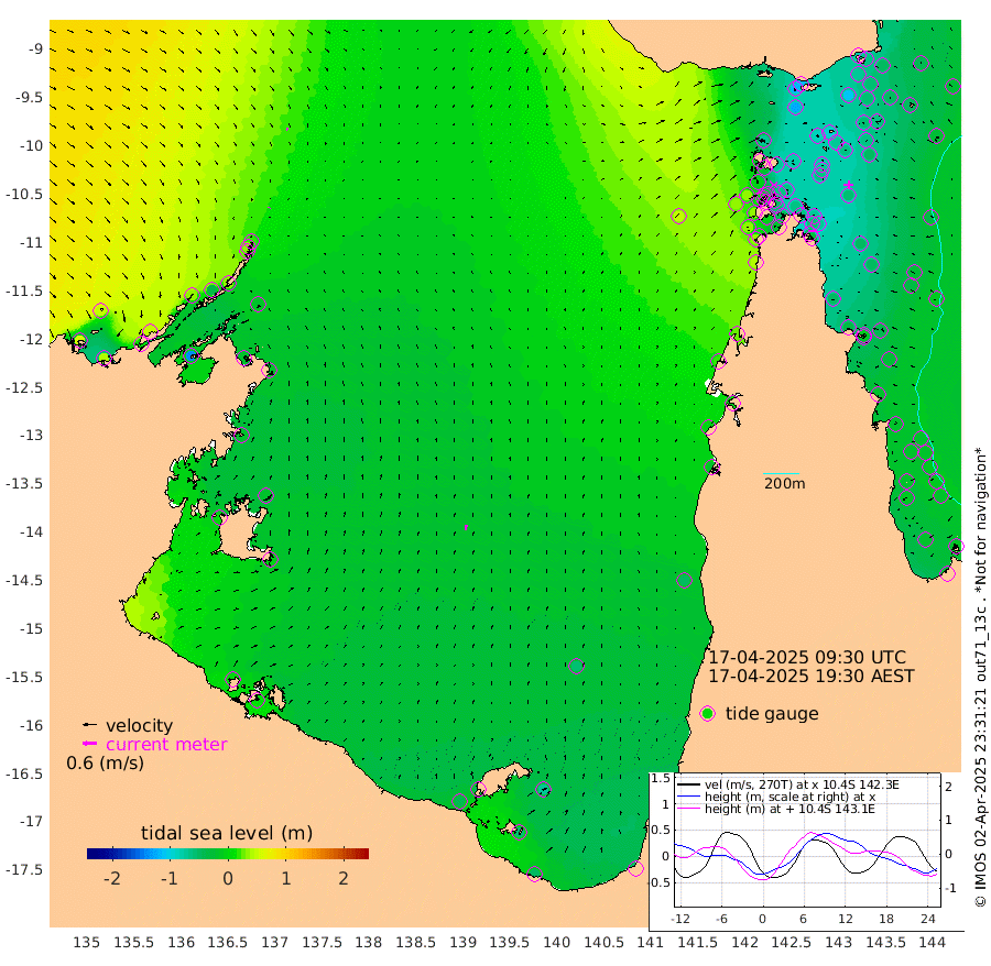 3cm/s -150T +3cm/s rms + 7cm/s -42T. ARA-GOC87 57m 25cm/s 5T +3cm/s rms + 2cm/s -2T. ARA-GOC87 60m 9cm/s 150T +2cm/s rms + 3cm/s 61T. ARA-GOC87 47m -76cm Daru -67cm Bobo Island -27cm Meer Island Barge -41cm Bramble Cay -60cm Unnamed Cay -56cm Pearce Cay -46cm Stephens Island -52cm Merrie England Shoals -71cm Mutacomal Reef -51cm Darnley Island Barge -25cm East Cay -64cm Yorke Island Barge -55cm Rennel Island -63cm Aureed Island -72cm Dungeness Reef -95cm Zagai Island -85cm Yam Island -116cm Dauan Island -117cm Saibai Island -122cm Phipi Reef -110cm Warrior Reef - West -69cm Mabuiag Island Barge -49cm Half Way Island -67cm Coconut Island -60cm Dugong Islet -72cm Poll Island -67cm Kirkcaldie Reef -79cm Suarji Island -82cm Sue Islet -4cm Hawkesbury Island -65cm Alert Patches -63cm Twin Island -27cm Badu Island -73cm St Pauls (Moa Island) -21cm Kubin (Moa Island) -50cm Ince Point -36cm Thursday Island -42cm Nardana Patches -26cm Turtle Head -11cm Round Island 5cm Goods Island 31cm Booby Island 33cm White Rocks Area 49cm Carpentaria -54cm Papou Point 31cm Bampfield Head 35cm Crab Island 31cm Red Wallis Island -5cm Packe Island -57cm Harrington Reef 4cm Herald Camp -28cm Sharp Point -19cm Red Island Point -38cm Possession Island -63cm Alpha Rock -64cm Frederick Point -69cm Wyborn Reef Light -72cm Tetley Island -35cm Triangle Reef -52cm Turtle Head Island -24cm Maclennan Cay -11cm Raine Island -52cm Mcsweeny Reef -50cm Collette Reef -34cm Shadwell Reef -52cm Hannibal Island -36cm Round Point 44cm Vrilya Point -31cm Cape Grenville -28cm Hicks Island -39cm Sir Charles Hardy Island -9cm Harvey Island -24cm Kay Reef -22cm Rocky Island -19cm Chapman Island -16cm Ham Reef -19cm Jubilee Reef -15cm Night Island -13cm Unnamed Reef No. 3 -17cm Morris Island -13cm 1st 3 Mile Opening -15cm Creech Reef -12cm Fife Island -16cm Eden Reef -14cm Stanley Island -12cm Normanby River 55cm Yabooma Island 42cm Hutchison River 52cm Elcho Island 51cm North West Crocodile Island 20cm Cape Wessel 34cm Stevens Island -32cm Guluwuru Island 31cm Hopeful Bay 29cm Auster Point 31cm Two Island Bay 9cm Cadell Strait -140cm Mallison Island -22cm Melville Bay (Gove Harbour) -17cm Truant Island -21cm Cape Arnhem -19cm Cape Grey -20cm Hawk Island 3cm Milner Bay (Groote Eylandt) 0cm Cape Beatrice 5cm West Island 9cm Centre Island -44cm Mornington Island -40cm West Wellesley Islands -73cm Bountiful Island -51cm Albert River Mouth -53cm Sweers Island -55cm Karumba -53cm Nassau River Offshore -49cm Christmas Creek -18cm Archer River -7cm Boyd Point -7cm Weipa (Humbug Point) 20cm Pennefather River 25cm Cullen Point