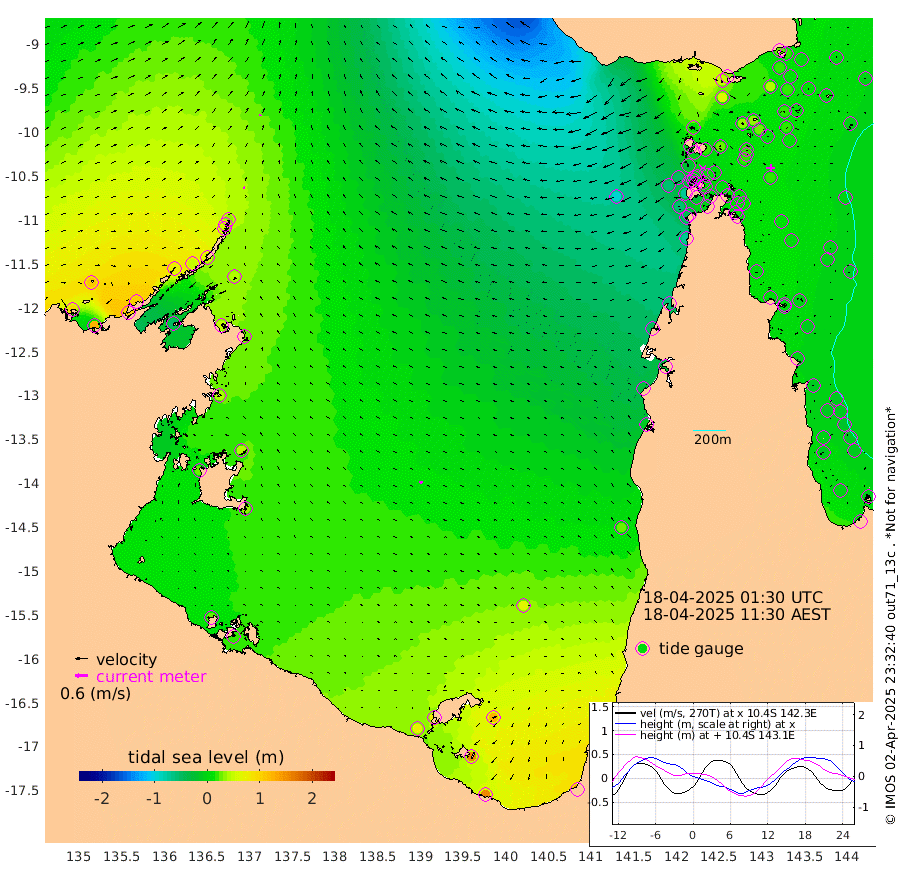 7cm/s -53T +3cm/s rms + 7cm/s -42T. ARA-GOC87 57m 14cm/s -100T +3cm/s rms + 2cm/s -2T. ARA-GOC87 60m 8cm/s -11T +2cm/s rms + 3cm/s 61T. ARA-GOC87 47m 25cm Daru 21cm Bobo Island -1cm Meer Island Barge 7cm Bramble Cay 13cm Unnamed Cay 20cm Pearce Cay 10cm Stephens Island 6cm Merrie England Shoals 15cm Mutacomal Reef 7cm Darnley Island Barge -2cm East Cay 14cm Yorke Island Barge 15cm Rennel Island 15cm Aureed Island 28cm Dungeness Reef 31cm Zagai Island 30cm Yam Island 48cm Dauan Island 33cm Saibai Island 66cm Phipi Reef 43cm Warrior Reef - West 13cm Mabuiag Island Barge 12cm Half Way Island 15cm Coconut Island 16cm Dugong Islet 21cm Poll Island 20cm Kirkcaldie Reef 25cm Suarji Island 17cm Sue Islet -23cm Hawkesbury Island 9cm Alert Patches 8cm Twin Island -5cm Badu Island 18cm St Pauls (Moa Island) -9cm Kubin (Moa Island) 2cm Ince Point -8cm Thursday Island -3cm Nardana Patches -9cm Turtle Head -21cm Round Island -27cm Goods Island -53cm Booby Island -46cm White Rocks Area -97cm Carpentaria 12cm Papou Point -72cm Bampfield Head -50cm Crab Island -55cm Red Wallis Island -29cm Packe Island 12cm Harrington Reef -41cm Herald Camp 6cm Sharp Point -7cm Red Island Point -3cm Possession Island 1cm Alpha Rock 11cm Frederick Point 12cm Wyborn Reef Light 12cm Tetley Island -2cm Triangle Reef 13cm Turtle Head Island -3cm Maclennan Cay -8cm Raine Island 8cm Mcsweeny Reef 4cm Collette Reef -3cm Shadwell Reef 6cm Hannibal Island 2cm Round Point -69cm Vrilya Point -5cm Cape Grenville 1cm Hicks Island -3cm Sir Charles Hardy Island 0cm Harvey Island -11cm Kay Reef -5cm Rocky Island -14cm Chapman Island -15cm Ham Reef -8cm Jubilee Reef -9cm Night Island -17cm Unnamed Reef No. 3 -6cm Morris Island -8cm 1st 3 Mile Opening -10cm Creech Reef -11cm Fife Island -7cm Eden Reef -13cm Stanley Island -8cm Normanby River 94cm Yabooma Island 125cm Hutchison River 101cm Elcho Island 106cm North West Crocodile Island 31cm Cape Wessel 74cm Stevens Island 47cm Guluwuru Island 65cm Hopeful Bay 49cm Auster Point 54cm Two Island Bay 99cm Cadell Strait -51cm Mallison Island 48cm Melville Bay (Gove Harbour) 39cm Truant Island 28cm Cape Arnhem 38cm Cape Grey 38cm Hawk Island 29cm Milner Bay (Groote Eylandt) 37cm Cape Beatrice 26cm West Island 18cm Centre Island 75cm Mornington Island 68cm West Wellesley Islands 124cm Bountiful Island 157cm Albert River Mouth 155cm Sweers Island 152cm Karumba 62cm Nassau River Offshore 28cm Christmas Creek -9cm Archer River -29cm Boyd Point -18cm Weipa (Humbug Point) -45cm Pennefather River -58cm Cullen Point