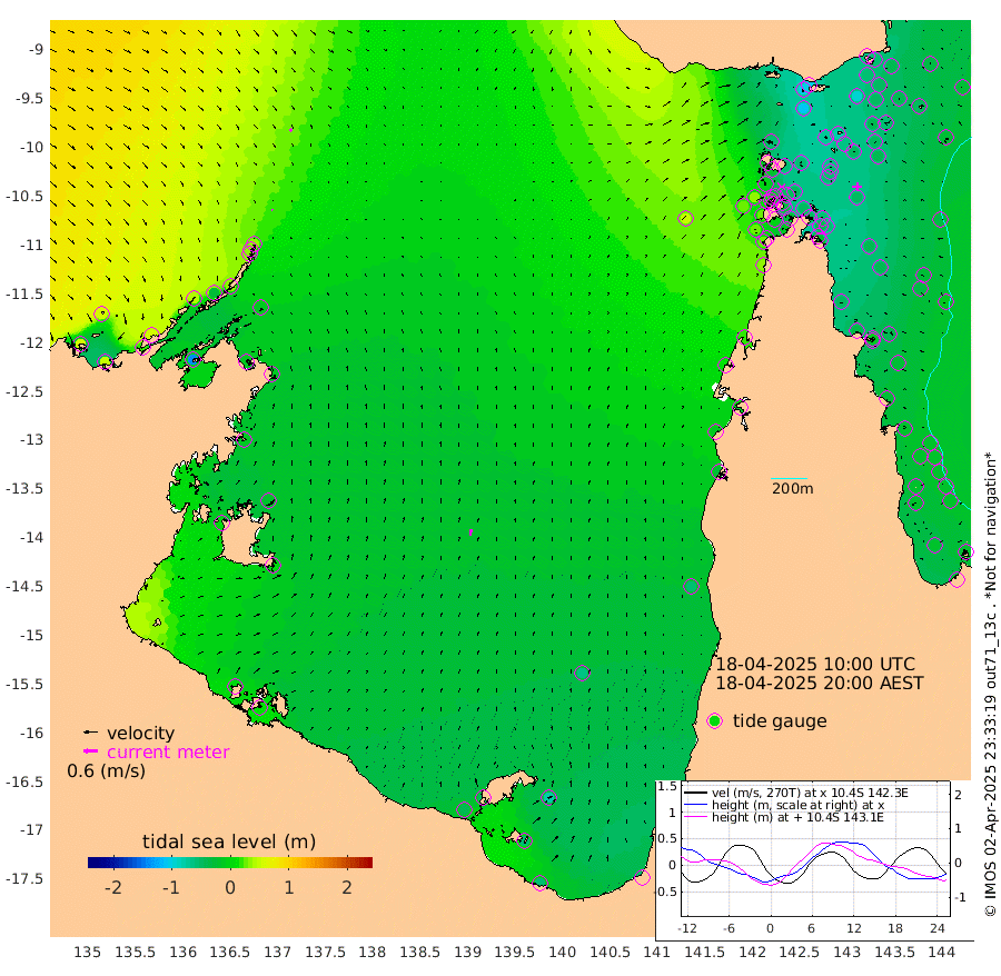 2cm/s 150T +3cm/s rms + 7cm/s -42T. ARA-GOC87 57m 28cm/s 7T +3cm/s rms + 2cm/s -2T. ARA-GOC87 60m 11cm/s 135T +2cm/s rms + 3cm/s 61T. ARA-GOC87 47m -63cm Daru -53cm Bobo Island -29cm Meer Island Barge -37cm Bramble Cay -52cm Unnamed Cay -45cm Pearce Cay -40cm Stephens Island -45cm Merrie England Shoals -58cm Mutacomal Reef -47cm Darnley Island Barge -25cm East Cay -56cm Yorke Island Barge -44cm Rennel Island -51cm Aureed Island -60cm Dungeness Reef -76cm Zagai Island -69cm Yam Island -103cm Dauan Island -101cm Saibai Island -110cm Phipi Reef -92cm Warrior Reef - West -55cm Mabuiag Island Barge -41cm Half Way Island -51cm Coconut Island -49cm Dugong Islet -56cm Poll Island -53cm Kirkcaldie Reef -60cm Suarji Island -67cm Sue Islet -5cm Hawkesbury Island -50cm Alert Patches -46cm Twin Island -21cm Badu Island -56cm St Pauls (Moa Island) -17cm Kubin (Moa Island) -38cm Ince Point -26cm Thursday Island -31cm Nardana Patches -22cm Turtle Head -10cm Round Island 4cm Goods Island 27cm Booby Island 32cm White Rocks Area 47cm Carpentaria -37cm Papou Point 27cm Bampfield Head 30cm Crab Island 28cm Red Wallis Island -4cm Packe Island -41cm Harrington Reef -3cm Herald Camp -22cm Sharp Point -12cm Red Island Point -29cm Possession Island -47cm Alpha Rock -47cm Frederick Point -54cm Wyborn Reef Light -55cm Tetley Island -33cm Triangle Reef -41cm Turtle Head Island -24cm Maclennan Cay -15cm Raine Island -44cm Mcsweeny Reef -45cm Collette Reef -35cm Shadwell Reef -47cm Hannibal Island -32cm Round Point 37cm Vrilya Point -30cm Cape Grenville -28cm Hicks Island -39cm Sir Charles Hardy Island -9cm Harvey Island -25cm Kay Reef -24cm Rocky Island -22cm Chapman Island -19cm Ham Reef -22cm Jubilee Reef -18cm Night Island -16cm Unnamed Reef No. 3 -20cm Morris Island -18cm 1st 3 Mile Opening -19cm Creech Reef -15cm Fife Island -22cm Eden Reef -19cm Stanley Island -15cm Normanby River 59cm Yabooma Island 51cm Hutchison River 58cm Elcho Island 57cm North West Crocodile Island 31cm Cape Wessel 42cm Stevens Island -23cm Guluwuru Island 35cm Hopeful Bay 36cm Auster Point 35cm Two Island Bay 16cm Cadell Strait -135cm Mallison Island -14cm Melville Bay (Gove Harbour) -8cm Truant Island -15cm Cape Arnhem -13cm Cape Grey -17cm Hawk Island 7cm Milner Bay (Groote Eylandt) 1cm Cape Beatrice 6cm West Island 9cm Centre Island -48cm Mornington Island -44cm West Wellesley Islands -75cm Bountiful Island -55cm Albert River Mouth -57cm Sweers Island -62cm Karumba -61cm Nassau River Offshore -57cm Christmas Creek -26cm Archer River -14cm Boyd Point -16cm Weipa (Humbug Point) 12cm Pennefather River 17cm Cullen Point