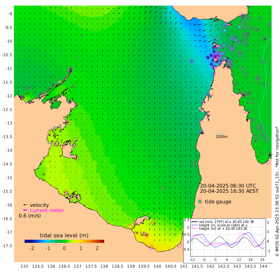 21cm/s 23T +3cm/s rms + 7cm/s -42T. ARA-GOC87 57m 20cm/s -9T +3cm/s rms + 2cm/s -2T. ARA-GOC87 60m 25cm/s 29T +2cm/s rms + 3cm/s 61T. ARA-GOC87 47m -42cm Daru -37cm Bobo Island -17cm Meer Island Barge -19cm Bramble Cay -28cm Unnamed Cay -43cm Pearce Cay -31cm Stephens Island -21cm Merrie England Shoals -37cm Mutacomal Reef -20cm Darnley Island Barge -21cm East Cay -28cm Yorke Island Barge -43cm Rennel Island -41cm Aureed Island -61cm Dungeness Reef -65cm Zagai Island -79cm Yam Island -99cm Dauan Island -75cm Saibai Island -97cm Phipi Reef -77cm Warrior Reef - West -98cm Mabuiag Island Barge -43cm Half Way Island -57cm Coconut Island -51cm Dugong Islet -70cm Poll Island -68cm Kirkcaldie Reef -95cm Suarji Island -53cm Sue Islet -167cm Hawkesbury Island -98cm Alert Patches -97cm Twin Island -157cm Badu Island -102cm St Pauls (Moa Island) -153cm Kubin (Moa Island) -115cm Ince Point -127cm Thursday Island -124cm Nardana Patches -145cm Turtle Head -152cm Round Island -167cm Goods Island -176cm Booby Island -172cm White Rocks Area -134cm Carpentaria -92cm Papou Point -182cm Bampfield Head -144cm Crab Island -172cm Red Wallis Island -167cm Packe Island -57cm Harrington Reef -178cm Herald Camp -18cm Sharp Point -122cm Red Island Point -113cm Possession Island -70cm Alpha Rock -78cm Frederick Point -46cm Wyborn Reef Light -52cm Tetley Island -30cm Triangle Reef -56cm Turtle Head Island -29cm Maclennan Cay -20cm Raine Island -30cm Mcsweeny Reef -20cm Collette Reef -15cm Shadwell Reef -18cm Hannibal Island -25cm Round Point -124cm Vrilya Point -20cm Cape Grenville -25cm Hicks Island -29cm Sir Charles Hardy Island -7cm Harvey Island -12cm Kay Reef -18cm Rocky Island -18cm Chapman Island -15cm Ham Reef -16cm Jubilee Reef -20cm Night Island -17cm Unnamed Reef No. 3 -18cm Morris Island -23cm 1st 3 Mile Opening -20cm Creech Reef -16cm Fife Island -14cm Eden Reef -13cm Stanley Island -12cm Normanby River -37cm Yabooma Island -41cm Hutchison River -27cm Elcho Island -28cm North West Crocodile Island 3cm Cape Wessel -4cm Stevens Island 27cm Guluwuru Island -2cm Hopeful Bay -3cm Auster Point -6cm Two Island Bay -4cm Cadell Strait 150cm Mallison Island 18cm Melville Bay (Gove Harbour) 15cm Truant Island 19cm Cape Arnhem 38cm Cape Grey 39cm Hawk Island 62cm Milner Bay (Groote Eylandt) 59cm Cape Beatrice 74cm West Island 72cm Centre Island 69cm Mornington Island 76cm West Wellesley Islands 75cm Bountiful Island 108cm Albert River Mouth 134cm Sweers Island 92cm Karumba 13cm Nassau River Offshore -31cm Christmas Creek -62cm Archer River -81cm Boyd Point -94cm Weipa (Humbug Point) -77cm Pennefather River -120cm Cullen Point
