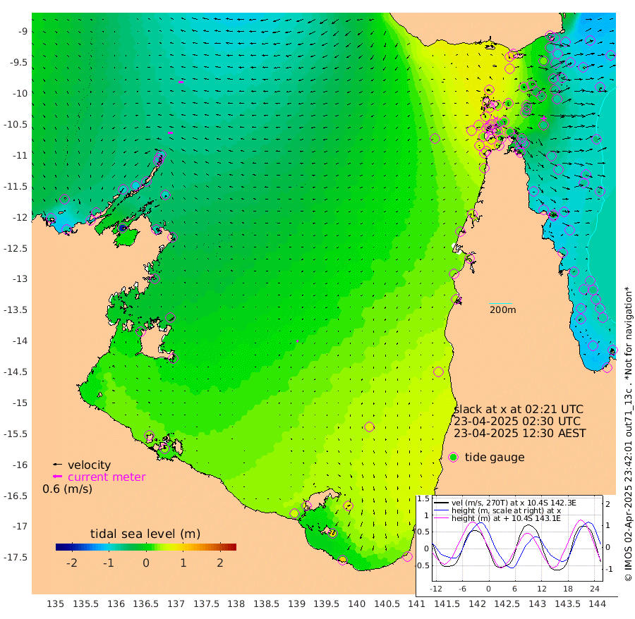 32cm/s -91T +3cm/s rms + 7cm/s -42T. ARA-GOC87 57m 16cm/s -140T +3cm/s rms + 2cm/s -2T. ARA-GOC87 60m 33cm/s -94T +2cm/s rms + 3cm/s 61T. ARA-GOC87 47m -62cm Daru -71cm Bobo Island -82cm Meer Island Barge -94cm Bramble Cay -91cm Unnamed Cay -74cm Pearce Cay -90cm Stephens Island -100cm Merrie England Shoals -73cm Mutacomal Reef -88cm Darnley Island Barge -90cm East Cay -74cm Yorke Island Barge -71cm Rennel Island -60cm Aureed Island -37cm Dungeness Reef 9cm Zagai Island 8cm Yam Island 85cm Dauan Island 65cm Saibai Island 79cm Phipi Reef 28cm Warrior Reef - West 53cm Mabuiag Island Barge -72cm Half Way Island -47cm Coconut Island -60cm Dugong Islet -16cm Poll Island -30cm Kirkcaldie Reef 22cm Suarji Island -23cm Sue Islet 46cm Hawkesbury Island 15cm Alert Patches 9cm Twin Island 60cm Badu Island 27cm St Pauls (Moa Island) 46cm Kubin (Moa Island) 32cm Ince Point 37cm Thursday Island 39cm Nardana Patches 48cm Turtle Head 41cm Round Island 50cm Goods Island 53cm Booby Island 44cm White Rocks Area 26cm Carpentaria 12cm Papou Point 25cm Bampfield Head 46cm Crab Island 56cm Red Wallis Island 54cm Packe Island -64cm Harrington Reef 51cm Herald Camp 15cm Sharp Point 33cm Red Island Point 20cm Possession Island -8cm Alpha Rock -21cm Frederick Point -68cm Wyborn Reef Light -56cm Tetley Island -56cm Triangle Reef -82cm Turtle Head Island -73cm Maclennan Cay -71cm Raine Island -81cm Mcsweeny Reef -83cm Collette Reef -75cm Shadwell Reef -96cm Hannibal Island -96cm Round Point 36cm Vrilya Point -91cm Cape Grenville -86cm Hicks Island -85cm Sir Charles Hardy Island -28cm Harvey Island -97cm Kay Reef -79cm Rocky Island -75cm Chapman Island -76cm Ham Reef -80cm Jubilee Reef -67cm Night Island -75cm Unnamed Reef No. 3 -84cm Morris Island -77cm 1st 3 Mile Opening -79cm Creech Reef -81cm Fife Island -96cm Eden Reef -92cm Stanley Island -103cm Normanby River -72cm Yabooma Island -77cm Hutchison River -61cm Elcho Island -52cm North West Crocodile Island -88cm Cape Wessel -86cm Stevens Island -100cm Guluwuru Island -74cm Hopeful Bay -83cm Auster Point -81cm Two Island Bay -93cm Cadell Strait -193cm Mallison Island -79cm Melville Bay (Gove Harbour) -89cm Truant Island -55cm Cape Arnhem -41cm Cape Grey -13cm Hawk Island -3cm Milner Bay (Groote Eylandt) 13cm Cape Beatrice 34cm West Island 37cm Centre Island 69cm Mornington Island 59cm West Wellesley Islands 75cm Bountiful Island 106cm Albert River Mouth 94cm Sweers Island 112cm Karumba 73cm Nassau River Offshore 59cm Christmas Creek 41cm Archer River 35cm Boyd Point 45cm Weipa (Humbug Point) 29cm Pennefather River 46cm Cullen Point