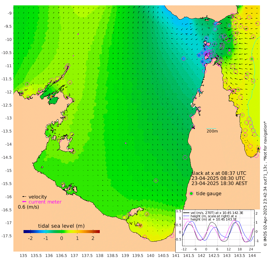 18cm/s 43T +3cm/s rms + 7cm/s -42T. ARA-GOC87 57m 20cm/s -15T +3cm/s rms + 2cm/s -2T. ARA-GOC87 60m 24cm/s 44T +2cm/s rms + 3cm/s 61T. ARA-GOC87 47m 28cm Daru 36cm Bobo Island 55cm Meer Island Barge 63cm Bramble Cay 54cm Unnamed Cay 40cm Pearce Cay 56cm Stephens Island 66cm Merrie England Shoals 34cm Mutacomal Reef 56cm Darnley Island Barge 60cm East Cay 40cm Yorke Island Barge 37cm Rennel Island 28cm Aureed Island 3cm Dungeness Reef -47cm Zagai Island -56cm Yam Island -118cm Dauan Island -108cm Saibai Island -87cm Phipi Reef -61cm Warrior Reef - West -108cm Mabuiag Island Barge 33cm Half Way Island 8cm Coconut Island 18cm Dugong Islet -25cm Poll Island -14cm Kirkcaldie Reef -60cm Suarji Island -22cm Sue Islet -138cm Hawkesbury Island -62cm Alert Patches -62cm Twin Island -139cm Badu Island -80cm St Pauls (Moa Island) -121cm Kubin (Moa Island) -90cm Ince Point -103cm Thursday Island -101cm Nardana Patches -112cm Turtle Head -109cm Round Island -132cm Goods Island -146cm Booby Island -137cm White Rocks Area -128cm Carpentaria -68cm Papou Point -126cm Bampfield Head -118cm Crab Island -147cm Red Wallis Island -130cm Packe Island 21cm Harrington Reef -135cm Herald Camp -22cm Sharp Point -97cm Red Island Point -69cm Possession Island -44cm Alpha Rock -28cm Frederick Point 24cm Wyborn Reef Light 9cm Tetley Island 28cm Triangle Reef 33cm Turtle Head Island 41cm Maclennan Cay 46cm Raine Island 48cm Mcsweeny Reef 55cm Collette Reef 51cm Shadwell Reef 66cm Hannibal Island 65cm Round Point -108cm Vrilya Point 61cm Cape Grenville 57cm Hicks Island 43cm Sir Charles Hardy Island 19cm Harvey Island 66cm Kay Reef 53cm Rocky Island 48cm Chapman Island 47cm Ham Reef 51cm Jubilee Reef 46cm Night Island 47cm Unnamed Reef No. 3 58cm Morris Island 49cm 1st 3 Mile Opening 52cm Creech Reef 61cm Fife Island 69cm Eden Reef 65cm Stanley Island 73cm Normanby River 28cm Yabooma Island 37cm Hutchison River 33cm Elcho Island 26cm North West Crocodile Island 31cm Cape Wessel 47cm Stevens Island 52cm Guluwuru Island 48cm Hopeful Bay 41cm Auster Point 35cm Two Island Bay 47cm Cadell Strait 125cm Mallison Island 47cm Melville Bay (Gove Harbour) 46cm Truant Island 35cm Cape Arnhem 47cm Cape Grey 47cm Hawk Island 52cm Milner Bay (Groote Eylandt) 48cm Cape Beatrice 46cm West Island 47cm Centre Island 61cm Mornington Island 62cm West Wellesley Islands 65cm Bountiful Island 88cm Albert River Mouth 121cm Sweers Island 84cm Karumba 15cm Nassau River Offshore -19cm Christmas Creek -43cm Archer River -66cm Boyd Point -72cm Weipa (Humbug Point) -57cm Pennefather River -106cm Cullen Point