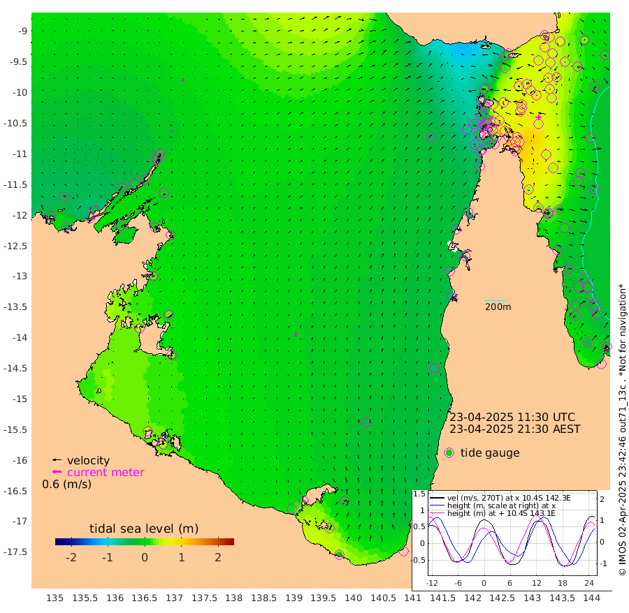 11cm/s 23T +3cm/s rms + 7cm/s -42T. ARA-GOC87 57m 29cm/s 10T +3cm/s rms + 2cm/s -2T. ARA-GOC87 60m 13cm/s 46T +2cm/s rms + 3cm/s 61T. ARA-GOC87 47m 66cm Daru 67cm Bobo Island -1cm Meer Island Barge 26cm Bramble Cay 54cm Unnamed Cay 47cm Pearce Cay 41cm Stephens Island 57cm Merrie England Shoals 73cm Mutacomal Reef 30cm Darnley Island Barge 8cm East Cay 47cm Yorke Island Barge 57cm Rennel Island 54cm Aureed Island 53cm Dungeness Reef 61cm Zagai Island 55cm Yam Island -2cm Dauan Island 16cm Saibai Island 19cm Phipi Reef 45cm Warrior Reef - West 22cm Mabuiag Island Barge 51cm Half Way Island 75cm Coconut Island 55cm Dugong Islet 63cm Poll Island 63cm Kirkcaldie Reef 71cm Suarji Island 63cm Sue Islet -44cm Hawkesbury Island 56cm Alert Patches 59cm Twin Island -29cm Badu Island 56cm St Pauls (Moa Island) -20cm Kubin (Moa Island) 30cm Ince Point 15cm Thursday Island 19cm Nardana Patches -15cm Turtle Head -9cm Round Island -51cm Goods Island -64cm Booby Island -47cm White Rocks Area -38cm Carpentaria 54cm Papou Point -28cm Bampfield Head -51cm Crab Island -58cm Red Wallis Island -36cm Packe Island 81cm Harrington Reef -50cm Herald Camp 24cm Sharp Point 0cm Red Island Point 40cm Possession Island 65cm Alpha Rock 69cm Frederick Point 81cm Wyborn Reef Light 81cm Tetley Island 6cm Triangle Reef 74cm Turtle Head Island 1cm Maclennan Cay -16cm Raine Island 47cm Mcsweeny Reef 40cm Collette Reef 6cm Shadwell Reef 43cm Hannibal Island 29cm Round Point -51cm Vrilya Point 22cm Cape Grenville 11cm Hicks Island -3cm Sir Charles Hardy Island 6cm Harvey Island 9cm Kay Reef -8cm Rocky Island -16cm Chapman Island -15cm Ham Reef -12cm Jubilee Reef -8cm Night Island -13cm Unnamed Reef No. 3 -8cm Morris Island -17cm 1st 3 Mile Opening -13cm Creech Reef -8cm Fife Island -23cm Eden Reef -10cm Stanley Island -6cm Normanby River -37cm Yabooma Island -33cm Hutchison River -29cm Elcho Island -29cm North West Crocodile Island 2cm Cape Wessel -8cm Stevens Island -1cm Guluwuru Island -15cm Hopeful Bay -2cm Auster Point -18cm Two Island Bay -37cm Cadell Strait 1cm Mallison Island 1cm Melville Bay (Gove Harbour) 4cm Truant Island 6cm Cape Arnhem 24cm Cape Grey 24cm Hawk Island 42cm Milner Bay (Groote Eylandt) 31cm Cape Beatrice 46cm West Island 51cm Centre Island 13cm Mornington Island 9cm West Wellesley Islands -1cm Bountiful Island -3cm Albert River Mouth 25cm Sweers Island 0cm Karumba -35cm Nassau River Offshore -52cm Christmas Creek -56cm Archer River -54cm Boyd Point -71cm Weipa (Humbug Point) -39cm Pennefather River -58cm Cullen Point