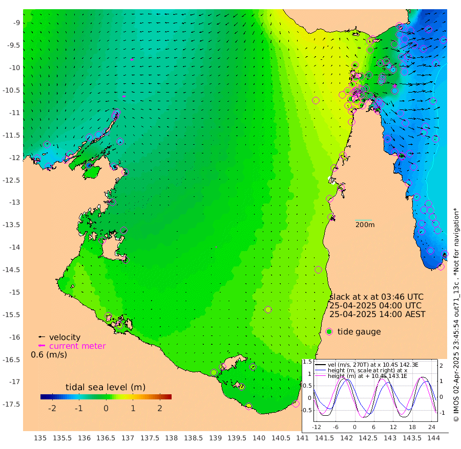25cm/s -92T +3cm/s rms + 7cm/s -42T. ARA-GOC87 57m 8cm/s -140T +3cm/s rms + 2cm/s -2T. ARA-GOC87 60m 27cm/s -99T +2cm/s rms + 3cm/s 61T. ARA-GOC87 47m -123cm Daru -131cm Bobo Island -113cm Meer Island Barge -137cm Bramble Cay -144cm Unnamed Cay -133cm Pearce Cay -143cm Stephens Island -150cm Merrie England Shoals -130cm Mutacomal Reef -133cm Darnley Island Barge -127cm East Cay -125cm Yorke Island Barge -128cm Rennel Island -117cm Aureed Island -98cm Dungeness Reef -44cm Zagai Island -47cm Yam Island 40cm Dauan Island 31cm Saibai Island 15cm Phipi Reef -32cm Warrior Reef - West 24cm Mabuiag Island Barge -125cm Half Way Island -106cm Coconut Island -117cm Dugong Islet -73cm Poll Island -86cm Kirkcaldie Reef -42cm Suarji Island -70cm Sue Islet 30cm Hawkesbury Island -35cm Alert Patches -41cm Twin Island 39cm Badu Island -24cm St Pauls (Moa Island) 15cm Kubin (Moa Island) -7cm Ince Point 5cm Thursday Island 4cm Nardana Patches 17cm Turtle Head 11cm Round Island 34cm Goods Island 53cm Booby Island 37cm White Rocks Area 51cm Carpentaria -31cm Papou Point 14cm Bampfield Head 53cm Crab Island 55cm Red Wallis Island 28cm Packe Island -127cm Harrington Reef 28cm Herald Camp 2cm Sharp Point 9cm Red Island Point -24cm Possession Island -50cm Alpha Rock -77cm Frederick Point -126cm Wyborn Reef Light -113cm Tetley Island -89cm Triangle Reef -141cm Turtle Head Island -106cm Maclennan Cay -92cm Raine Island -131cm Mcsweeny Reef -127cm Collette Reef -104cm Shadwell Reef -144cm Hannibal Island -141cm Round Point 57cm Vrilya Point -129cm Cape Grenville -125cm Hicks Island -122cm Sir Charles Hardy Island -40cm Harvey Island -127cm Kay Reef -107cm Rocky Island -98cm Chapman Island -96cm Ham Reef -103cm Jubilee Reef -93cm Night Island -96cm Unnamed Reef No. 3 -113cm Morris Island -101cm 1st 3 Mile Opening -104cm Creech Reef -109cm Fife Island -124cm Eden Reef -116cm Stanley Island -134cm Normanby River -99cm Yabooma Island -118cm Hutchison River -89cm Elcho Island -80cm North West Crocodile Island -95cm Cape Wessel -104cm Stevens Island -112cm Guluwuru Island -92cm Hopeful Bay -97cm Auster Point -95cm Two Island Bay -117cm Cadell Strait -152cm Mallison Island -96cm Melville Bay (Gove Harbour) -103cm Truant Island -65cm Cape Arnhem -52cm Cape Grey -28cm Hawk Island -6cm Milner Bay (Groote Eylandt) 7cm Cape Beatrice 32cm West Island 37cm Centre Island 38cm Mornington Island 36cm West Wellesley Islands 26cm Bountiful Island 63cm Albert River Mouth 48cm Sweers Island 60cm Karumba 40cm Nassau River Offshore 33cm Christmas Creek 33cm Archer River 33cm Boyd Point 37cm Weipa (Humbug Point) 41cm Pennefather River 55cm Cullen Point