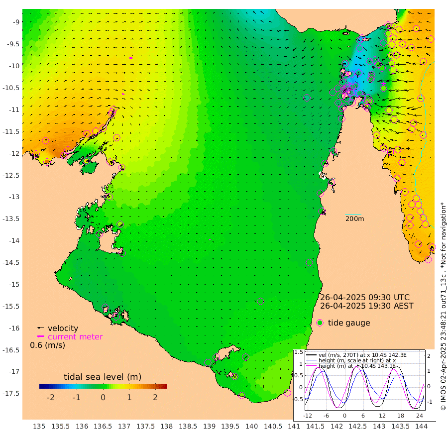 23cm/s 104T +3cm/s rms + 7cm/s -42T. ARA-GOC87 57m 10cm/s -50T +3cm/s rms + 2cm/s -2T. ARA-GOC87 60m 25cm/s 91T +2cm/s rms + 3cm/s 61T. ARA-GOC87 47m 33cm Daru 48cm Bobo Island 87cm Meer Island Barge 89cm Bramble Cay 64cm Unnamed Cay 67cm Pearce Cay 79cm Stephens Island 76cm Merrie England Shoals 33cm Mutacomal Reef 73cm Darnley Island Barge 96cm East Cay 47cm Yorke Island Barge 52cm Rennel Island 42cm Aureed Island 17cm Dungeness Reef -51cm Zagai Island -55cm Yam Island -104cm Dauan Island -116cm Saibai Island -73cm Phipi Reef -58cm Warrior Reef - West -98cm Mabuiag Island Barge 48cm Half Way Island 18cm Coconut Island 27cm Dugong Islet -18cm Poll Island -8cm Kirkcaldie Reef -55cm Suarji Island -33cm Sue Islet -55cm Hawkesbury Island -49cm Alert Patches -49cm Twin Island -62cm Badu Island -71cm St Pauls (Moa Island) -53cm Kubin (Moa Island) -62cm Ince Point -63cm Thursday Island -64cm Nardana Patches -47cm Turtle Head -45cm Round Island -36cm Goods Island -43cm Booby Island -38cm White Rocks Area -61cm Carpentaria -55cm Papou Point -31cm Bampfield Head -30cm Crab Island -48cm Red Wallis Island -44cm Packe Island 29cm Harrington Reef -52cm Herald Camp -35cm Sharp Point -45cm Red Island Point -40cm Possession Island -49cm Alpha Rock -18cm Frederick Point 25cm Wyborn Reef Light 9cm Tetley Island 57cm Triangle Reef 48cm Turtle Head Island 75cm Maclennan Cay 90cm Raine Island 62cm Mcsweeny Reef 68cm Collette Reef 76cm Shadwell Reef 82cm Hannibal Island 96cm Round Point -33cm Vrilya Point 86cm Cape Grenville 90cm Hicks Island 77cm Sir Charles Hardy Island 27cm Harvey Island 95cm Kay Reef 90cm Rocky Island 89cm Chapman Island 83cm Ham Reef 87cm Jubilee Reef 83cm Night Island 87cm Unnamed Reef No. 3 99cm Morris Island 93cm 1st 3 Mile Opening 92cm Creech Reef 103cm Fife Island 119cm Eden Reef 102cm Stanley Island 113cm Normanby River 133cm Yabooma Island 164cm Hutchison River 138cm Elcho Island 123cm North West Crocodile Island 82cm Cape Wessel 124cm Stevens Island 89cm Guluwuru Island 118cm Hopeful Bay 102cm Auster Point 98cm Two Island Bay 142cm Cadell Strait 83cm Mallison Island 84cm Melville Bay (Gove Harbour) 87cm Truant Island 55cm Cape Arnhem 38cm Cape Grey 30cm Hawk Island 6cm Milner Bay (Groote Eylandt) 4cm Cape Beatrice -32cm West Island -30cm Centre Island 7cm Mornington Island 3cm West Wellesley Islands 4cm Bountiful Island 30cm Albert River Mouth 36cm Sweers Island 28cm Karumba 5cm Nassau River Offshore 2cm Christmas Creek 4cm Archer River -14cm Boyd Point -5cm Weipa (Humbug Point) -5cm Pennefather River -38cm Cullen Point