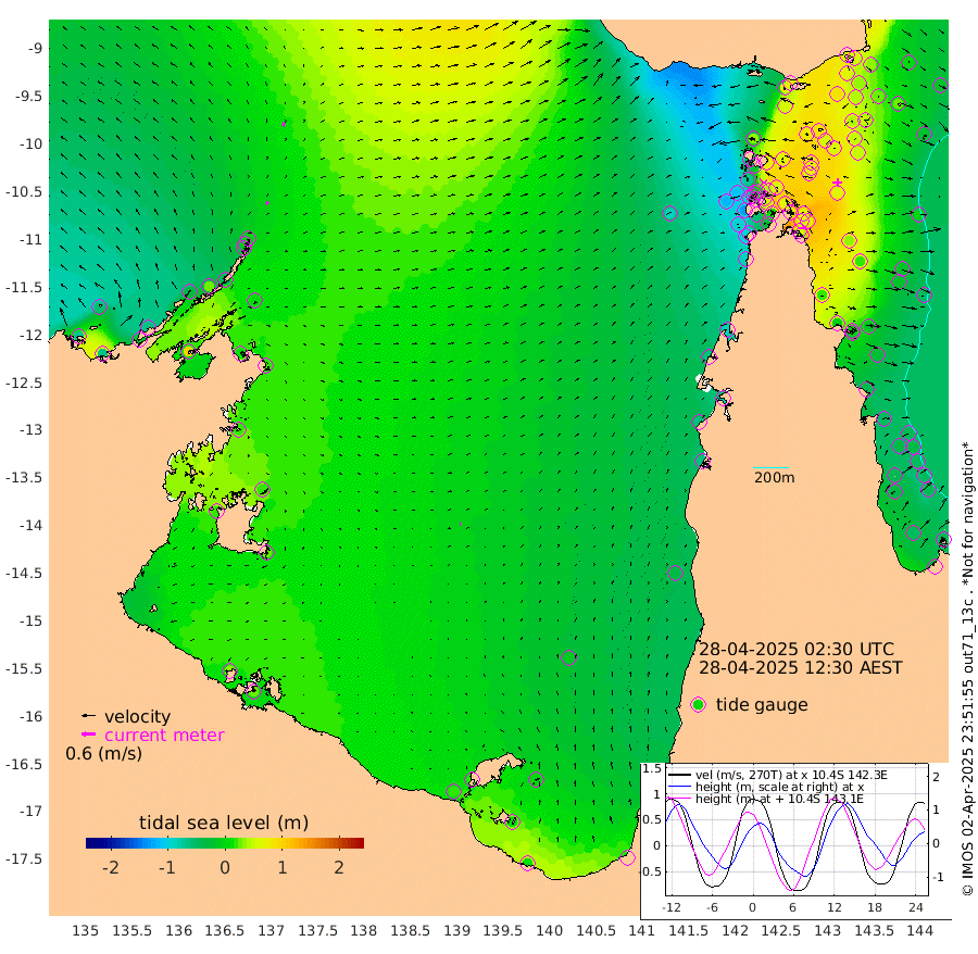 14cm/s 39T +3cm/s rms + 7cm/s -42T. ARA-GOC87 57m 4cm/s 114T +3cm/s rms + 2cm/s -2T. ARA-GOC87 60m 15cm/s 21T +2cm/s rms + 3cm/s 61T. ARA-GOC87 47m 65cm Daru 60cm Bobo Island -17cm Meer Island Barge 4cm Bramble Cay 37cm Unnamed Cay 39cm Pearce Cay 25cm Stephens Island 32cm Merrie England Shoals 63cm Mutacomal Reef 23cm Darnley Island Barge -21cm East Cay 47cm Yorke Island Barge 42cm Rennel Island 50cm Aureed Island 57cm Dungeness Reef 86cm Zagai Island 81cm Yam Island 62cm Dauan Island 71cm Saibai Island 53cm Phipi Reef 87cm Warrior Reef - West 36cm Mabuiag Island Barge 49cm Half Way Island 60cm Coconut Island 61cm Dugong Islet 72cm Poll Island 67cm Kirkcaldie Reef 62cm Suarji Island 78cm Sue Islet -68cm Hawkesbury Island 45cm Alert Patches 57cm Twin Island -52cm Badu Island 69cm St Pauls (Moa Island) -28cm Kubin (Moa Island) 28cm Ince Point 5cm Thursday Island 12cm Nardana Patches -35cm Turtle Head -56cm Round Island -87cm Goods Island -114cm Booby Island -105cm White Rocks Area -87cm Carpentaria 55cm Papou Point -131cm Bampfield Head -97cm Crab Island -97cm Red Wallis Island -57cm Packe Island 66cm Harrington Reef -91cm Herald Camp 36cm Sharp Point -27cm Red Island Point 6cm Possession Island 67cm Alpha Rock 63cm Frederick Point 66cm Wyborn Reef Light 71cm Tetley Island -6cm Triangle Reef 55cm Turtle Head Island -18cm Maclennan Cay -47cm Raine Island 31cm Mcsweeny Reef 19cm Collette Reef -16cm Shadwell Reef 20cm Hannibal Island -3cm Round Point -88cm Vrilya Point -7cm Cape Grenville -16cm Hicks Island -20cm Sir Charles Hardy Island -1cm Harvey Island -27cm Kay Reef -38cm Rocky Island -50cm Chapman Island -44cm Ham Reef -36cm Jubilee Reef -30cm Night Island -45cm Unnamed Reef No. 3 -40cm Morris Island -48cm 1st 3 Mile Opening -41cm Creech Reef -37cm Fife Island -52cm Eden Reef -42cm Stanley Island -38cm Normanby River -72cm Yabooma Island -66cm Hutchison River -62cm Elcho Island -53cm North West Crocodile Island -6cm Cape Wessel -32cm Stevens Island 27cm Guluwuru Island -47cm Hopeful Bay -26cm Auster Point -11cm Two Island Bay -10cm Cadell Strait 100cm Mallison Island 12cm Melville Bay (Gove Harbour) 12cm Truant Island 15cm Cape Arnhem 17cm Cape Grey 20cm Hawk Island 22cm Milner Bay (Groote Eylandt) 24cm Cape Beatrice 36cm West Island 29cm Centre Island 19cm Mornington Island 18cm West Wellesley Islands 4cm Bountiful Island 14cm Albert River Mouth 15cm Sweers Island 8cm Karumba -9cm Nassau River Offshore -34cm Christmas Creek -67cm Archer River -64cm Boyd Point -87cm Weipa (Humbug Point) -63cm Pennefather River -83cm Cullen Point