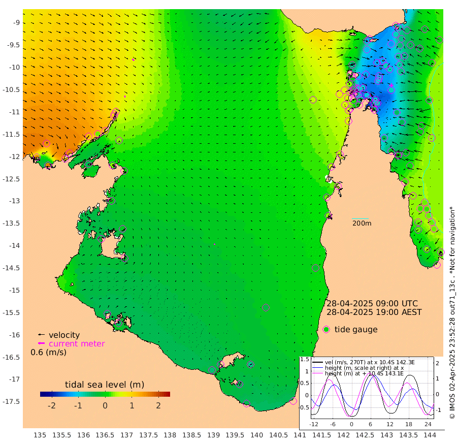 18cm/s 143T +3cm/s rms + 7cm/s -42T. ARA-GOC87 57m 10cm/s -23T +3cm/s rms + 2cm/s -2T. ARA-GOC87 60m 22cm/s 135T +2cm/s rms + 3cm/s 61T. ARA-GOC87 47m -90cm Daru -78cm Bobo Island 1cm Meer Island Barge -18cm Bramble Cay -61cm Unnamed Cay -53cm Pearce Cay -42cm Stephens Island -49cm Merrie England Shoals -88cm Mutacomal Reef -43cm Darnley Island Barge 5cm East Cay -71cm Yorke Island Barge -64cm Rennel Island -75cm Aureed Island -90cm Dungeness Reef -127cm Zagai Island -122cm Yam Island -120cm Dauan Island -128cm Saibai Island -119cm Phipi Reef -133cm Warrior Reef - West -82cm Mabuiag Island Barge -66cm Half Way Island -87cm Coconut Island -86cm Dugong Islet -103cm Poll Island -98cm Kirkcaldie Reef -121cm Suarji Island -114cm Sue Islet 33cm Hawkesbury Island -91cm Alert Patches -97cm Twin Island 12cm Badu Island -114cm St Pauls (Moa Island) -11cm Kubin (Moa Island) -70cm Ince Point -48cm Thursday Island -55cm Nardana Patches -12cm Turtle Head 3cm Round Island 46cm Goods Island 73cm Booby Island 67cm White Rocks Area 52cm Carpentaria -87cm Papou Point 61cm Bampfield Head 73cm Crab Island 63cm Red Wallis Island 16cm Packe Island -91cm Harrington Reef 25cm Herald Camp -49cm Sharp Point -4cm Red Island Point -56cm Possession Island -102cm Alpha Rock -96cm Frederick Point -90cm Wyborn Reef Light -97cm Tetley Island -12cm Triangle Reef -71cm Turtle Head Island -3cm Maclennan Cay 32cm Raine Island -52cm Mcsweeny Reef -41cm Collette Reef -4cm Shadwell Reef -41cm Hannibal Island -11cm Round Point 73cm Vrilya Point -12cm Cape Grenville -3cm Hicks Island -11cm Sir Charles Hardy Island -5cm Harvey Island 9cm Kay Reef 18cm Rocky Island 30cm Chapman Island 26cm Ham Reef 20cm Jubilee Reef 15cm Night Island 30cm Unnamed Reef No. 3 24cm Morris Island 26cm 1st 3 Mile Opening 23cm Creech Reef 26cm Fife Island 37cm Eden Reef 25cm Stanley Island 27cm Normanby River 154cm Yabooma Island 164cm Hutchison River 153cm Elcho Island 145cm North West Crocodile Island 68cm Cape Wessel 120cm Stevens Island 26cm Guluwuru Island 116cm Hopeful Bay 91cm Auster Point 87cm Two Island Bay 115cm Cadell Strait -52cm Mallison Island 33cm Melville Bay (Gove Harbour) 36cm Truant Island 11cm Cape Arnhem -6cm Cape Grey -14cm Hawk Island -25cm Milner Bay (Groote Eylandt) -26cm Cape Beatrice -58cm West Island -55cm Centre Island -57cm Mornington Island -58cm West Wellesley Islands -69cm Bountiful Island -41cm Albert River Mouth -51cm Sweers Island -43cm Karumba -34cm Nassau River Offshore -15cm Christmas Creek 32cm Archer River 29cm Boyd Point 44cm Weipa (Humbug Point) 53cm Pennefather River 52cm Cullen Point
