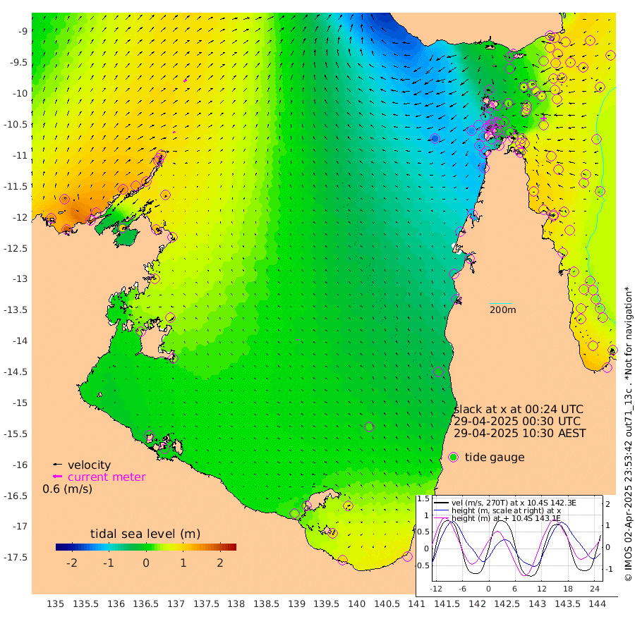 16cm/s 65T +3cm/s rms + 7cm/s -42T. ARA-GOC87 57m 9cm/s -92T +3cm/s rms + 2cm/s -2T. ARA-GOC87 60m 23cm/s 53T +2cm/s rms + 3cm/s 61T. ARA-GOC87 47m 79cm Daru 90cm Bobo Island 56cm Meer Island Barge 77cm Bramble Cay 81cm Unnamed Cay 90cm Pearce Cay 82cm Stephens Island 80cm Merrie England Shoals 78cm Mutacomal Reef 75cm Darnley Island Barge 64cm East Cay 75cm Yorke Island Barge 75cm Rennel Island 78cm Aureed Island 65cm Dungeness Reef 40cm Zagai Island 38cm Yam Island -4cm Dauan Island -7cm Saibai Island 14cm Phipi Reef 44cm Warrior Reef - West -34cm Mabuiag Island Barge 73cm Half Way Island 62cm Coconut Island 70cm Dugong Islet 49cm Poll Island 45cm Kirkcaldie Reef 23cm Suarji Island 38cm Sue Islet -87cm Hawkesbury Island -4cm Alert Patches 9cm Twin Island -80cm Badu Island 5cm St Pauls (Moa Island) -52cm Kubin (Moa Island) -24cm Ince Point -45cm Thursday Island -38cm Nardana Patches -60cm Turtle Head -70cm Round Island -93cm Goods Island -132cm Booby Island -112cm White Rocks Area -151cm Carpentaria 5cm Papou Point -133cm Bampfield Head -124cm Crab Island -121cm Red Wallis Island -73cm Packe Island 72cm Harrington Reef -100cm Herald Camp -1cm Sharp Point -53cm Red Island Point -24cm Possession Island 17cm Alpha Rock 38cm Frederick Point 73cm Wyborn Reef Light 66cm Tetley Island 46cm Triangle Reef 71cm Turtle Head Island 50cm Maclennan Cay 34cm Raine Island 73cm Mcsweeny Reef 66cm Collette Reef 45cm Shadwell Reef 78cm Hannibal Island 77cm Round Point -138cm Vrilya Point 62cm Cape Grenville 63cm Hicks Island 59cm Sir Charles Hardy Island 20cm Harvey Island 55cm Kay Reef 48cm Rocky Island 38cm Chapman Island 35cm Ham Reef 42cm Jubilee Reef 41cm Night Island 35cm Unnamed Reef No. 3 50cm Morris Island 33cm 1st 3 Mile Opening 40cm Creech Reef 52cm Fife Island 58cm Eden Reef 45cm Stanley Island 65cm Normanby River 146cm Yabooma Island 187cm Hutchison River 152cm Elcho Island 150cm North West Crocodile Island 112cm Cape Wessel 145cm Stevens Island 128cm Guluwuru Island 128cm Hopeful Bay 115cm Auster Point 128cm Two Island Bay 180cm Cadell Strait 112cm Mallison Island 117cm Melville Bay (Gove Harbour) 116cm Truant Island 78cm Cape Arnhem 63cm Cape Grey 59cm Hawk Island 31cm Milner Bay (Groote Eylandt) 31cm Cape Beatrice 3cm West Island -7cm Centre Island 40cm Mornington Island 33cm West Wellesley Islands 76cm Bountiful Island 94cm Albert River Mouth 100cm Sweers Island 87cm Karumba 22cm Nassau River Offshore -12cm Christmas Creek -55cm Archer River -71cm Boyd Point -71cm Weipa (Humbug Point) -97cm Pennefather River -115cm Cullen Point