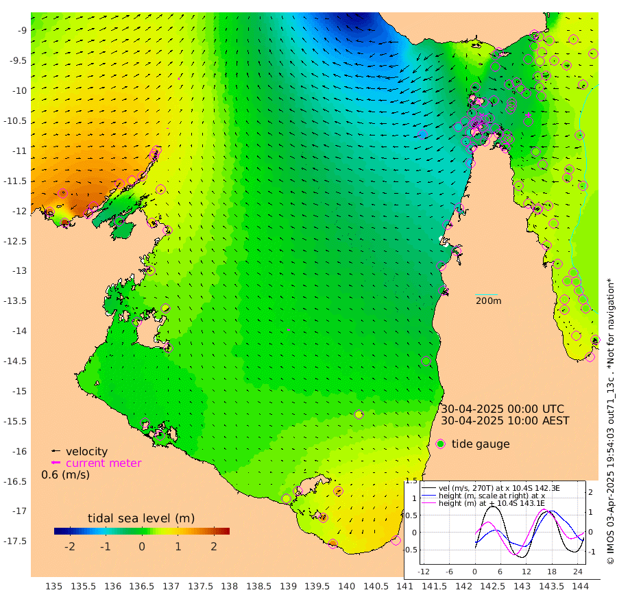 5cm/s -21T +3cm/s rms + 7cm/s -42T. ARA-GOC87 57m 16cm/s -85T +3cm/s rms + 2cm/s -2T. ARA-GOC87 60m 10cm/s 29T +2cm/s rms + 3cm/s 61T. ARA-GOC87 47m 22cm Daru 31cm Bobo Island 31cm Meer Island Barge 41cm Bramble Cay 30cm Unnamed Cay 39cm Pearce Cay 34cm Stephens Island 30cm Merrie England Shoals 22cm Mutacomal Reef 28cm Darnley Island Barge 39cm East Cay 21cm Yorke Island Barge 25cm Rennel Island 26cm Aureed Island 17cm Dungeness Reef -7cm Zagai Island -7cm Yam Island -18cm Dauan Island -28cm Saibai Island 2cm Phipi Reef 2cm Warrior Reef - West -43cm Mabuiag Island Barge 18cm Half Way Island 10cm Coconut Island 13cm Dugong Islet 0cm Poll Island -6cm Kirkcaldie Reef -10cm Suarji Island -14cm Sue Islet -58cm Hawkesbury Island -32cm Alert Patches -27cm Twin Island -53cm Badu Island -31cm St Pauls (Moa Island) -42cm Kubin (Moa Island) -40cm Ince Point -50cm Thursday Island -46cm Nardana Patches -45cm Turtle Head -47cm Round Island -55cm Goods Island -83cm Booby Island -67cm White Rocks Area -122cm Carpentaria -28cm Papou Point -85cm Bampfield Head -83cm Crab Island -79cm Red Wallis Island -48cm Packe Island 11cm Harrington Reef -61cm Herald Camp -15cm Sharp Point -44cm Red Island Point -35cm Possession Island -24cm Alpha Rock -10cm Frederick Point 15cm Wyborn Reef Light 8cm Tetley Island 24cm Triangle Reef 8cm Turtle Head Island 28cm Maclennan Cay 27cm Raine Island 25cm Mcsweeny Reef 25cm Collette Reef 24cm Shadwell Reef 32cm Hannibal Island 42cm Round Point -105cm Vrilya Point 31cm Cape Grenville 36cm Hicks Island 35cm Sir Charles Hardy Island 9cm Harvey Island 33cm Kay Reef 35cm Rocky Island 33cm Chapman Island 26cm Ham Reef 28cm Jubilee Reef 27cm Night Island 26cm Unnamed Reef No. 3 36cm Morris Island 24cm 1st 3 Mile Opening 27cm Creech Reef 36cm Fife Island 45cm Eden Reef 30cm Stanley Island 45cm Normanby River 173cm Yabooma Island 210cm Hutchison River 178cm Elcho Island 176cm North West Crocodile Island 95cm Cape Wessel 149cm Stevens Island 88cm Guluwuru Island 142cm Hopeful Bay 110cm Auster Point 115cm Two Island Bay 164cm Cadell Strait 12cm Mallison Island 93cm Melville Bay (Gove Harbour) 87cm Truant Island 56cm Cape Arnhem 49cm Cape Grey 53cm Hawk Island 33cm Milner Bay (Groote Eylandt) 37cm Cape Beatrice 12cm West Island 4cm Centre Island 66cm Mornington Island 58cm West Wellesley Islands 121cm Bountiful Island 151cm Albert River Mouth 155cm Sweers Island 144cm Karumba 55cm Nassau River Offshore 19cm Christmas Creek -20cm Archer River -44cm Boyd Point -28cm Weipa (Humbug Point) -74cm Pennefather River -79cm Cullen Point