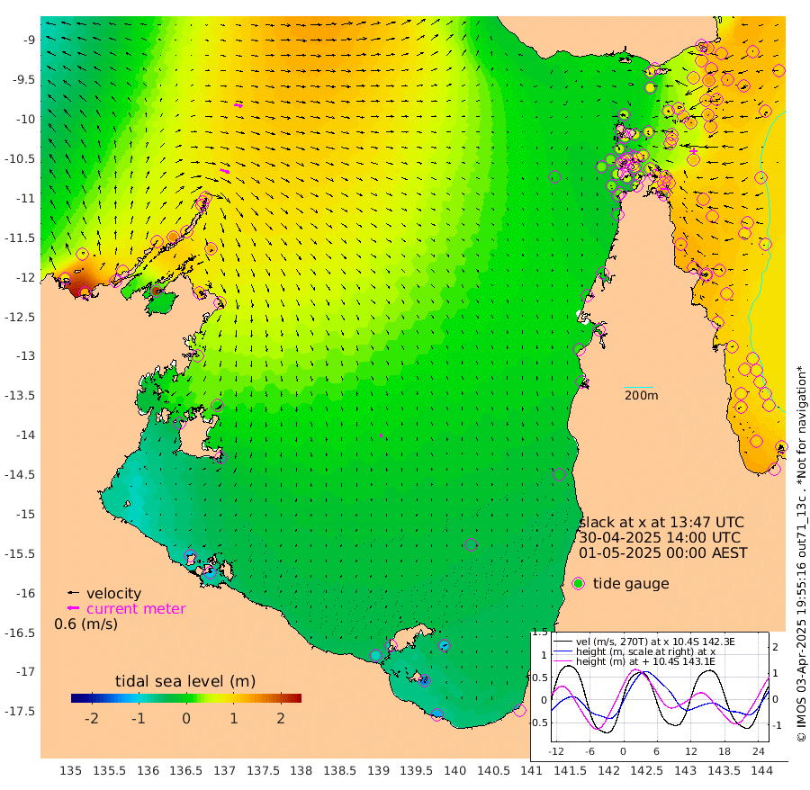 51cm/s 111T +3cm/s rms + 7cm/s -42T. ARA-GOC87 57m 18cm/s 161T +3cm/s rms + 2cm/s -2T. ARA-GOC87 60m 43cm/s 102T +2cm/s rms + 3cm/s 61T. ARA-GOC87 47m 121cm Daru 133cm Bobo Island 98cm Meer Island Barge 112cm Bramble Cay 117cm Unnamed Cay 135cm Pearce Cay 123cm Stephens Island 114cm Merrie England Shoals 112cm Mutacomal Reef 119cm Darnley Island Barge 103cm East Cay 119cm Yorke Island Barge 116cm Rennel Island 124cm Aureed Island 114cm Dungeness Reef 100cm Zagai Island 89cm Yam Island 71cm Dauan Island 62cm Saibai Island 80cm Phipi Reef 101cm Warrior Reef - West 43cm Mabuiag Island Barge 115cm Half Way Island 121cm Coconut Island 112cm Dugong Islet 102cm Poll Island 101cm Kirkcaldie Reef 85cm Suarji Island 92cm Sue Islet 39cm Hawkesbury Island 77cm Alert Patches 85cm Twin Island 53cm Badu Island 80cm St Pauls (Moa Island) 56cm Kubin (Moa Island) 64cm Ince Point 55cm Thursday Island 57cm Nardana Patches 54cm Turtle Head 42cm Round Island 43cm Goods Island 24cm Booby Island 26cm White Rocks Area 7cm Carpentaria 76cm Papou Point 40cm Bampfield Head 21cm Crab Island 24cm Red Wallis Island 49cm Packe Island 121cm Harrington Reef 28cm Herald Camp 12cm Sharp Point 46cm Red Island Point 64cm Possession Island 71cm Alpha Rock 100cm Frederick Point 118cm Wyborn Reef Light 113cm Tetley Island 91cm Triangle Reef 132cm Turtle Head Island 92cm Maclennan Cay 81cm Raine Island 114cm Mcsweeny Reef 107cm Collette Reef 89cm Shadwell Reef 118cm Hannibal Island 114cm Round Point 9cm Vrilya Point 97cm Cape Grenville 102cm Hicks Island 103cm Sir Charles Hardy Island 31cm Harvey Island 91cm Kay Reef 86cm Rocky Island 84cm Chapman Island 79cm Ham Reef 86cm Jubilee Reef 80cm Night Island 81cm Unnamed Reef No. 3 90cm Morris Island 86cm 1st 3 Mile Opening 88cm Creech Reef 88cm Fife Island 104cm Eden Reef 86cm Stanley Island 95cm Normanby River 80cm Yabooma Island 125cm Hutchison River 86cm Elcho Island 70cm North West Crocodile Island 99cm Cape Wessel 96cm Stevens Island 145cm Guluwuru Island 77cm Hopeful Bay 93cm Auster Point 94cm Two Island Bay 151cm Cadell Strait 205cm Mallison Island 114cm Melville Bay (Gove Harbour) 127cm Truant Island 85cm Cape Arnhem 36cm Cape Grey 11cm Hawk Island -46cm Milner Bay (Groote Eylandt) -56cm Cape Beatrice -114cm West Island -110cm Centre Island -83cm Mornington Island -90cm West Wellesley Islands -105cm Bountiful Island -126cm Albert River Mouth -145cm Sweers Island -125cm Karumba -49cm Nassau River Offshore -9cm Christmas Creek 9cm Archer River 17cm Boyd Point 14cm Weipa (Humbug Point) 13cm Pennefather River 6cm Cullen Point