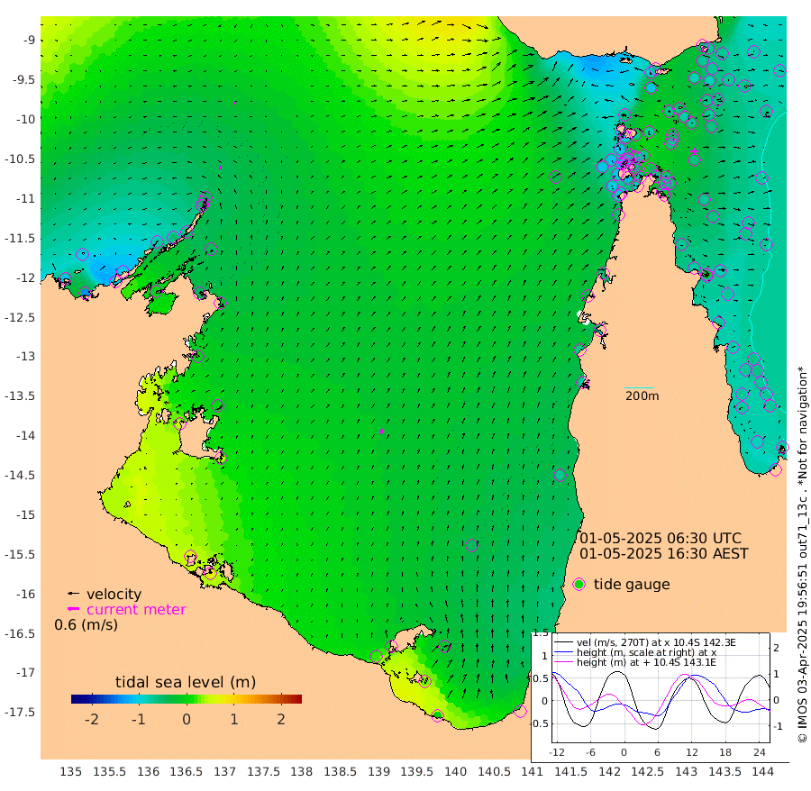 18cm/s -12T +3cm/s rms + 7cm/s -42T. ARA-GOC87 57m 27cm/s 15T +3cm/s rms + 2cm/s -2T. ARA-GOC87 60m 15cm/s -4T +2cm/s rms + 3cm/s 61T. ARA-GOC87 47m -73cm Daru -74cm Bobo Island -67cm Meer Island Barge -76cm Bramble Cay -72cm Unnamed Cay -85cm Pearce Cay -74cm Stephens Island -69cm Merrie England Shoals -69cm Mutacomal Reef -67cm Darnley Island Barge -76cm East Cay -64cm Yorke Island Barge -74cm Rennel Island -73cm Aureed Island -80cm Dungeness Reef -65cm Zagai Island -68cm Yam Island -91cm Dauan Island -68cm Saibai Island -110cm Phipi Reef -83cm Warrior Reef - West -64cm Mabuiag Island Barge -65cm Half Way Island -75cm Coconut Island -66cm Dugong Islet -69cm Poll Island -68cm Kirkcaldie Reef -77cm Suarji Island -52cm Sue Islet -112cm Hawkesbury Island -74cm Alert Patches -70cm Twin Island -121cm Badu Island -68cm St Pauls (Moa Island) -104cm Kubin (Moa Island) -77cm Ince Point -81cm Thursday Island -81cm Nardana Patches -107cm Turtle Head -101cm Round Island -122cm Goods Island -109cm Booby Island -111cm White Rocks Area -42cm Carpentaria -61cm Papou Point -111cm Bampfield Head -86cm Crab Island -104cm Red Wallis Island -116cm Packe Island -67cm Harrington Reef -112cm Herald Camp -5cm Sharp Point -89cm Red Island Point -75cm Possession Island -48cm Alpha Rock -69cm Frederick Point -67cm Wyborn Reef Light -65cm Tetley Island -68cm Triangle Reef -68cm Turtle Head Island -70cm Maclennan Cay -71cm Raine Island -68cm Mcsweeny Reef -67cm Collette Reef -65cm Shadwell Reef -72cm Hannibal Island -81cm Round Point -56cm Vrilya Point -68cm Cape Grenville -75cm Hicks Island -83cm Sir Charles Hardy Island -21cm Harvey Island -69cm Kay Reef -73cm Rocky Island -77cm Chapman Island -66cm Ham Reef -68cm Jubilee Reef -64cm Night Island -69cm Unnamed Reef No. 3 -74cm Morris Island -72cm 1st 3 Mile Opening -70cm Creech Reef -69cm Fife Island -84cm Eden Reef -68cm Stanley Island -73cm Normanby River -106cm Yabooma Island -140cm Hutchison River -104cm Elcho Island -98cm North West Crocodile Island -43cm Cape Wessel -78cm Stevens Island -53cm Guluwuru Island -74cm Hopeful Bay -56cm Auster Point -50cm Two Island Bay -100cm Cadell Strait 3cm Mallison Island -52cm Melville Bay (Gove Harbour) -51cm Truant Island -29cm Cape Arnhem -4cm Cape Grey 2cm Hawk Island 46cm Milner Bay (Groote Eylandt) 40cm Cape Beatrice 80cm West Island 81cm Centre Island 11cm Mornington Island 20cm West Wellesley Islands -19cm Bountiful Island -4cm Albert River Mouth 23cm Sweers Island -13cm Karumba -45cm Nassau River Offshore -72cm Christmas Creek -77cm Archer River -68cm Boyd Point -92cm Weipa (Humbug Point) -45cm Pennefather River -64cm Cullen Point