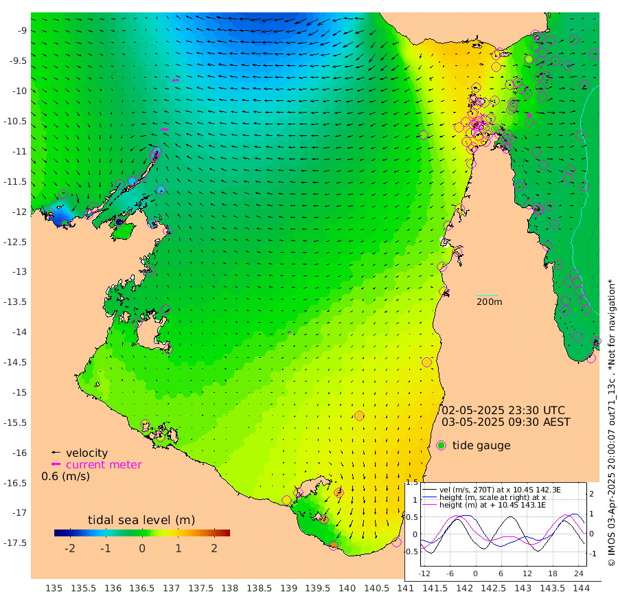 44cm/s -91T +3cm/s rms + 7cm/s -42T. ARA-GOC87 57m 18cm/s -133T +3cm/s rms + 2cm/s -2T. ARA-GOC87 60m 44cm/s -98T +2cm/s rms + 3cm/s 61T. ARA-GOC87 47m -8cm Daru -25cm Bobo Island -35cm Meer Island Barge -29cm Bramble Cay -21cm Unnamed Cay -23cm Pearce Cay -30cm Stephens Island -22cm Merrie England Shoals -6cm Mutacomal Reef -38cm Darnley Island Barge -32cm East Cay -29cm Yorke Island Barge -12cm Rennel Island -22cm Aureed Island 8cm Dungeness Reef 17cm Zagai Island 30cm Yam Island 70cm Dauan Island 48cm Saibai Island 88cm Phipi Reef 37cm Warrior Reef - West 59cm Mabuiag Island Barge -17cm Half Way Island -3cm Coconut Island -9cm Dugong Islet 15cm Poll Island 16cm Kirkcaldie Reef 44cm Suarji Island 5cm Sue Islet 83cm Hawkesbury Island 47cm Alert Patches 35cm Twin Island 92cm Badu Island 44cm St Pauls (Moa Island) 72cm Kubin (Moa Island) 55cm Ince Point 62cm Thursday Island 62cm Nardana Patches 79cm Turtle Head 73cm Round Island 88cm Goods Island 85cm Booby Island 87cm White Rocks Area 29cm Carpentaria 31cm Papou Point 60cm Bampfield Head 71cm Crab Island 83cm Red Wallis Island 84cm Packe Island -9cm Harrington Reef 82cm Herald Camp 14cm Sharp Point 68cm Red Island Point 45cm Possession Island 20cm Alpha Rock 16cm Frederick Point -13cm Wyborn Reef Light -7cm Tetley Island -21cm Triangle Reef -24cm Turtle Head Island -25cm Maclennan Cay -23cm Raine Island -23cm Mcsweeny Reef -25cm Collette Reef -25cm Shadwell Reef -30cm Hannibal Island -28cm Round Point 52cm Vrilya Point -27cm Cape Grenville -28cm Hicks Island -28cm Sir Charles Hardy Island -10cm Harvey Island -30cm Kay Reef -25cm Rocky Island -26cm Chapman Island -30cm Ham Reef -30cm Jubilee Reef -23cm Night Island -28cm Unnamed Reef No. 3 -27cm Morris Island -26cm 1st 3 Mile Opening -29cm Creech Reef -32cm Fife Island -38cm Eden Reef -32cm Stanley Island -38cm Normanby River -20cm Yabooma Island -24cm Hutchison River -19cm Elcho Island -7cm North West Crocodile Island -90cm Cape Wessel -53cm Stevens Island -109cm Guluwuru Island -44cm Hopeful Bay -70cm Auster Point -78cm Two Island Bay -80cm Cadell Strait -240cm Mallison Island -80cm Melville Bay (Gove Harbour) -98cm Truant Island -66cm Cape Arnhem -36cm Cape Grey -14cm Hawk Island 1cm Milner Bay (Groote Eylandt) 23cm Cape Beatrice 45cm West Island 42cm Centre Island 94cm Mornington Island 87cm West Wellesley Islands 134cm Bountiful Island 154cm Albert River Mouth 138cm Sweers Island 162cm Karumba 111cm Nassau River Offshore 94cm Christmas Creek 70cm Archer River 51cm Boyd Point 73cm Weipa (Humbug Point) 42cm Pennefather River 56cm Cullen Point