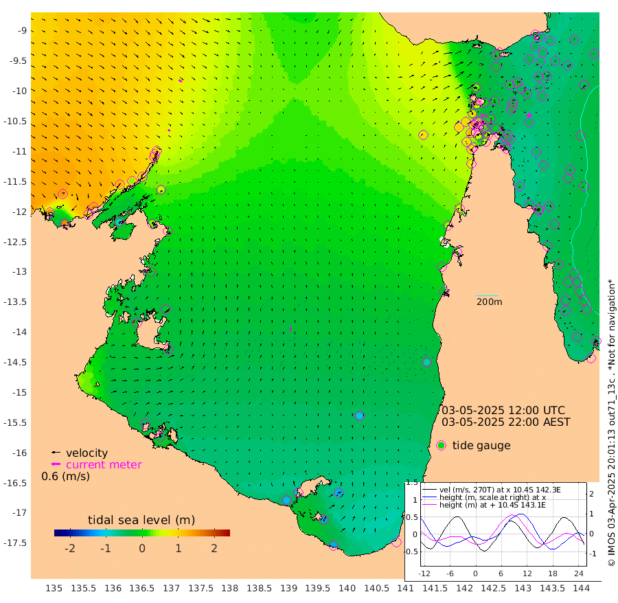 18cm/s 131T +3cm/s rms + 7cm/s -42T. ARA-GOC87 57m 26cm/s 11T +3cm/s rms + 2cm/s -2T. ARA-GOC87 60m 25cm/s 126T +2cm/s rms + 3cm/s 61T. ARA-GOC87 47m -45cm Daru -44cm Bobo Island -43cm Meer Island Barge -45cm Bramble Cay -44cm Unnamed Cay -48cm Pearce Cay -49cm Stephens Island -45cm Merrie England Shoals -40cm Mutacomal Reef -55cm Darnley Island Barge -43cm East Cay -51cm Yorke Island Barge -40cm Rennel Island -51cm Aureed Island -39cm Dungeness Reef -20cm Zagai Island -14cm Yam Island -15cm Dauan Island -12cm Saibai Island -20cm Phipi Reef -35cm Warrior Reef - West 29cm Mabuiag Island Barge -42cm Half Way Island -27cm Coconut Island -43cm Dugong Islet -22cm Poll Island -24cm Kirkcaldie Reef -8cm Suarji Island -26cm Sue Islet 90cm Hawkesbury Island 7cm Alert Patches 5cm Twin Island 77cm Badu Island 6cm St Pauls (Moa Island) 61cm Kubin (Moa Island) 24cm Ince Point 38cm Thursday Island 35cm Nardana Patches 47cm Turtle Head 82cm Round Island 78cm Goods Island 97cm Booby Island 96cm White Rocks Area 88cm Carpentaria 19cm Papou Point 125cm Bampfield Head 85cm Crab Island 88cm Red Wallis Island 60cm Packe Island -35cm Harrington Reef 85cm Herald Camp -6cm Sharp Point 51cm Red Island Point 40cm Possession Island -1cm Alpha Rock -12cm Frederick Point -25cm Wyborn Reef Light -20cm Tetley Island -34cm Triangle Reef -17cm Turtle Head Island -39cm Maclennan Cay -30cm Raine Island -46cm Mcsweeny Reef -46cm Collette Reef -40cm Shadwell Reef -51cm Hannibal Island -42cm Round Point 76cm Vrilya Point -43cm Cape Grenville -40cm Hicks Island -48cm Sir Charles Hardy Island -14cm Harvey Island -41cm Kay Reef -39cm Rocky Island -37cm Chapman Island -35cm Ham Reef -38cm Jubilee Reef -38cm Night Island -37cm Unnamed Reef No. 3 -39cm Morris Island -33cm 1st 3 Mile Opening -40cm Creech Reef -49cm Fife Island -48cm Eden Reef -43cm Stanley Island -45cm Normanby River 146cm Yabooma Island 157cm Hutchison River 142cm Elcho Island 138cm North West Crocodile Island 81cm Cape Wessel 121cm Stevens Island 32cm Guluwuru Island 107cm Hopeful Bay 98cm Auster Point 96cm Two Island Bay 94cm Cadell Strait -92cm Mallison Island 37cm Melville Bay (Gove Harbour) 46cm Truant Island 16cm Cape Arnhem 3cm Cape Grey -8cm Hawk Island -14cm Milner Bay (Groote Eylandt) -32cm Cape Beatrice -58cm West Island -51cm Centre Island -110cm Mornington Island -117cm West Wellesley Islands -126cm Bountiful Island -121cm Albert River Mouth -123cm Sweers Island -120cm Karumba -109cm Nassau River Offshore -82cm Christmas Creek -20cm Archer River 4cm Boyd Point 6cm Weipa (Humbug Point) 31cm Pennefather River 55cm Cullen Point