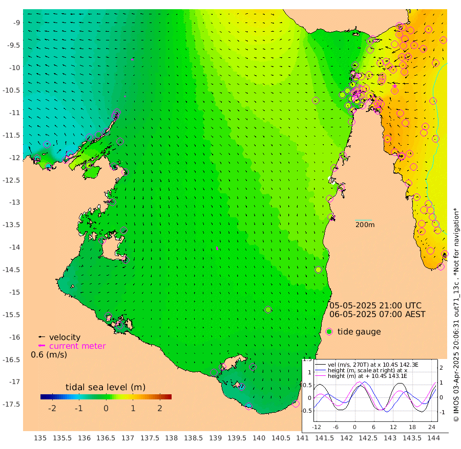 9cm/s -108T +3cm/s rms + 7cm/s -42T. ARA-GOC87 57m 34cm/s 167T +3cm/s rms + 2cm/s -2T. ARA-GOC87 60m 19cm/s -101T +2cm/s rms + 3cm/s 61T. ARA-GOC87 47m 119cm Daru 119cm Bobo Island 92cm Meer Island Barge 111cm Bramble Cay 122cm Unnamed Cay 124cm Pearce Cay 125cm Stephens Island 127cm Merrie England Shoals 125cm Mutacomal Reef 115cm Darnley Island Barge 106cm East Cay 115cm Yorke Island Barge 121cm Rennel Island 115cm Aureed Island 109cm Dungeness Reef 67cm Zagai Island 82cm Yam Island 32cm Dauan Island 32cm Saibai Island 40cm Phipi Reef 77cm Warrior Reef - West 33cm Mabuiag Island Barge 124cm Half Way Island 107cm Coconut Island 125cm Dugong Islet 96cm Poll Island 109cm Kirkcaldie Reef 74cm Suarji Island 91cm Sue Islet 58cm Hawkesbury Island 80cm Alert Patches 85cm Twin Island 33cm Badu Island 75cm St Pauls (Moa Island) 59cm Kubin (Moa Island) 67cm Ince Point 62cm Thursday Island 61cm Nardana Patches 56cm Turtle Head 45cm Round Island 46cm Goods Island 38cm Booby Island 40cm White Rocks Area 34cm Carpentaria 67cm Papou Point 36cm Bampfield Head 29cm Crab Island 47cm Red Wallis Island 67cm Packe Island 131cm Harrington Reef 61cm Herald Camp 18cm Sharp Point 58cm Red Island Point 62cm Possession Island 82cm Alpha Rock 104cm Frederick Point 116cm Wyborn Reef Light 112cm Tetley Island 84cm Triangle Reef 126cm Turtle Head Island 96cm Maclennan Cay 73cm Raine Island 118cm Mcsweeny Reef 110cm Collette Reef 87cm Shadwell Reef 119cm Hannibal Island 118cm Round Point 34cm Vrilya Point 111cm Cape Grenville 103cm Hicks Island 108cm Sir Charles Hardy Island 35cm Harvey Island 103cm Kay Reef 87cm Rocky Island 82cm Chapman Island 81cm Ham Reef 84cm Jubilee Reef 83cm Night Island 85cm Unnamed Reef No. 3 91cm Morris Island 76cm 1st 3 Mile Opening 88cm Creech Reef 98cm Fife Island 96cm Eden Reef 95cm Stanley Island 107cm Normanby River -79cm Yabooma Island -94cm Hutchison River -94cm Elcho Island -87cm North West Crocodile Island -38cm Cape Wessel -73cm Stevens Island -26cm Guluwuru Island -67cm Hopeful Bay -54cm Auster Point -45cm Two Island Bay -54cm Cadell Strait 44cm Mallison Island -30cm Melville Bay (Gove Harbour) -30cm Truant Island -22cm Cape Arnhem -29cm Cape Grey -31cm Hawk Island -52cm Milner Bay (Groote Eylandt) -40cm Cape Beatrice -33cm West Island -41cm Centre Island -22cm Mornington Island -21cm West Wellesley Islands -35cm Bountiful Island -96cm Albert River Mouth -105cm Sweers Island -71cm Karumba 23cm Nassau River Offshore 49cm Christmas Creek 41cm Archer River 43cm Boyd Point 39cm Weipa (Humbug Point) 30cm Pennefather River 37cm Cullen Point